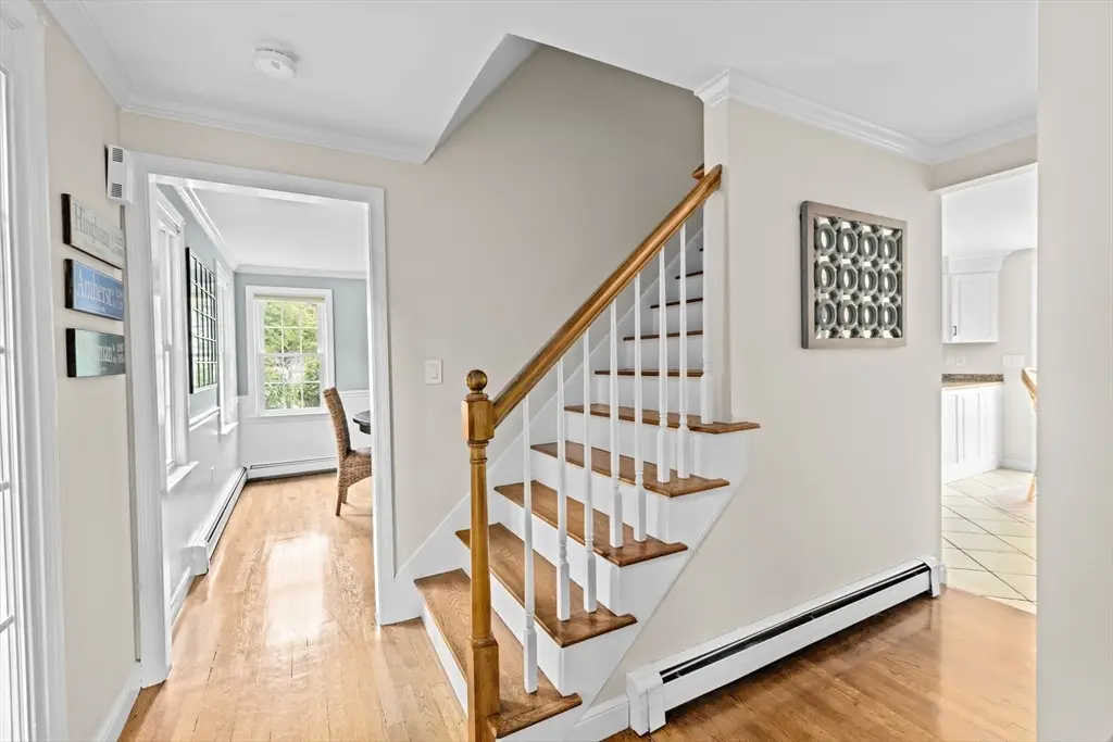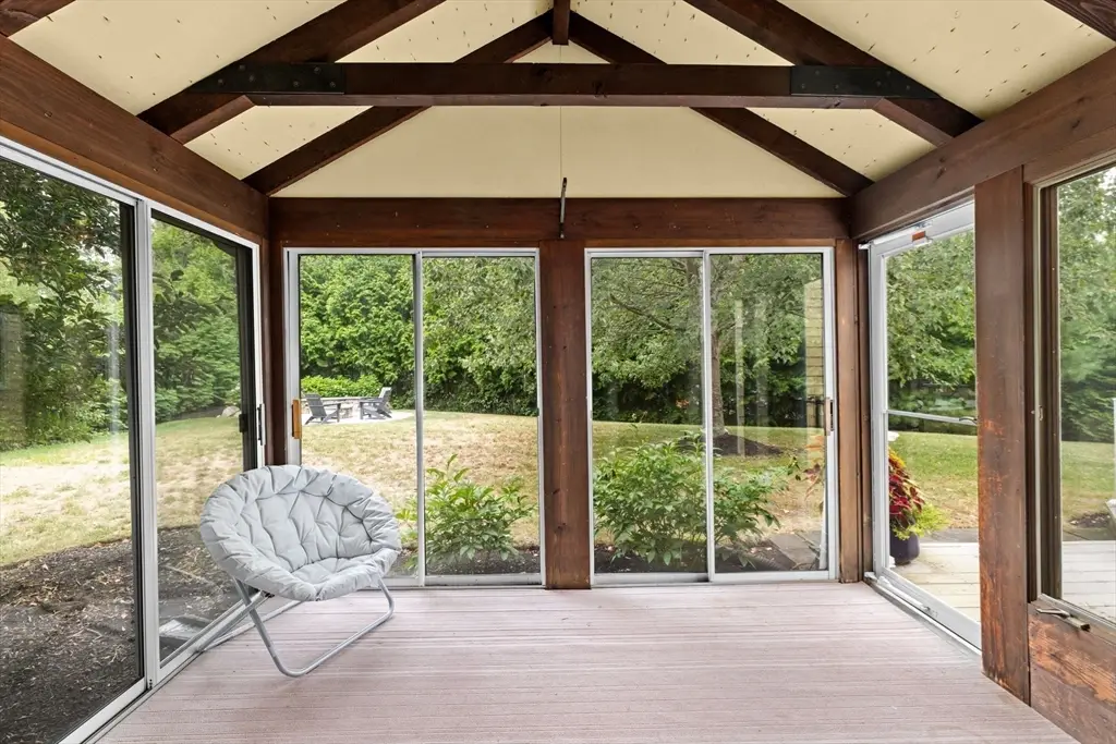 This is the one you've been waiting for! Picture-perfect home in the coveted Village Lane cul-de-sac neighborhood, right in the heart of Hingham Center. The first floor features a sunny kitchen with breakfast nook, a family room with vaulted ceilings and fireplace, a charming three-season sunroom, formal living and dining rooms, plus first-floor laundry. Upstairs offers a primary suite with full bath, three additional bedrooms, and another full bath. Set on a beautiful lot framed by stone walls, this home includes a spacious deck, stone patio with fire pit, and plenty of room for entertaining. Ideally located within walking distance to the Hingham Public Library, Turkey Hill, and East Elementary, and just a short drive to the commuter rail and Wompatuck State Park. Open House Thur (Tonight ) 4-6 and Fri 10-12