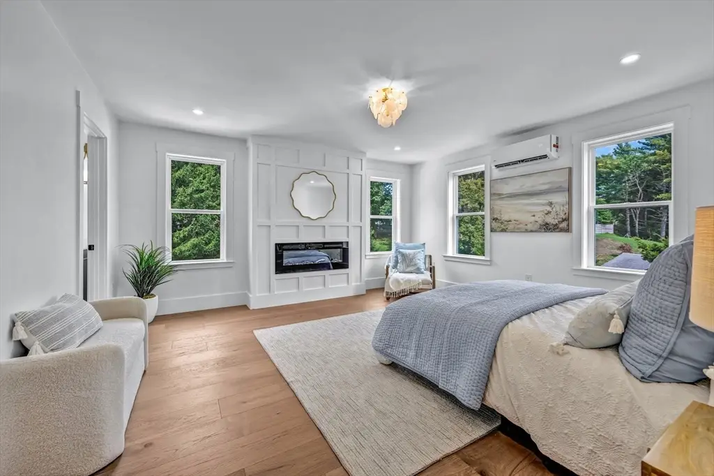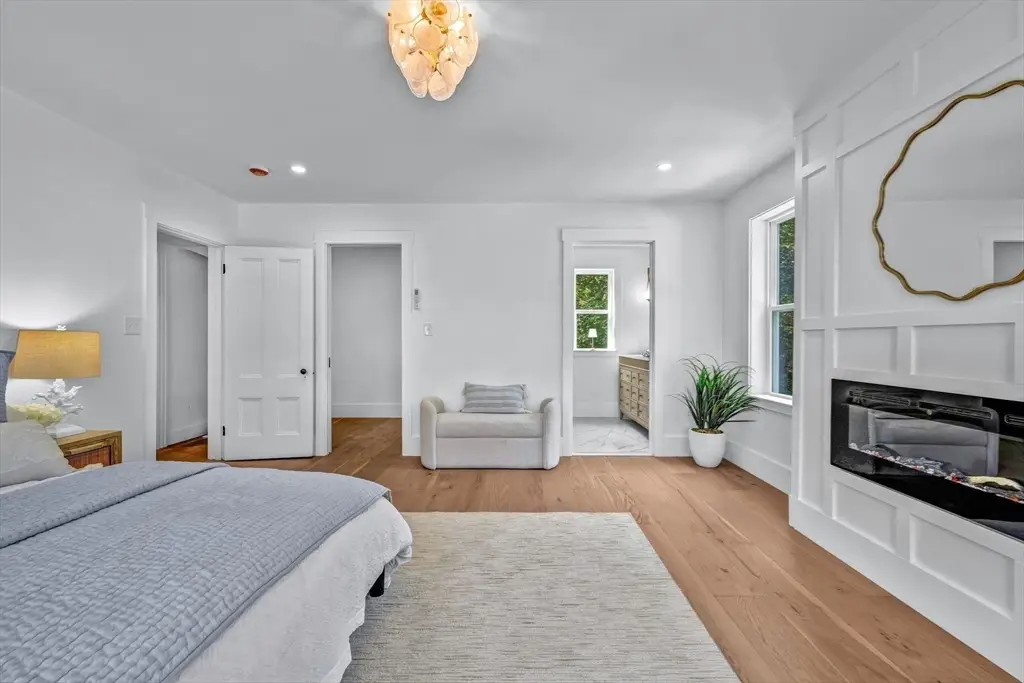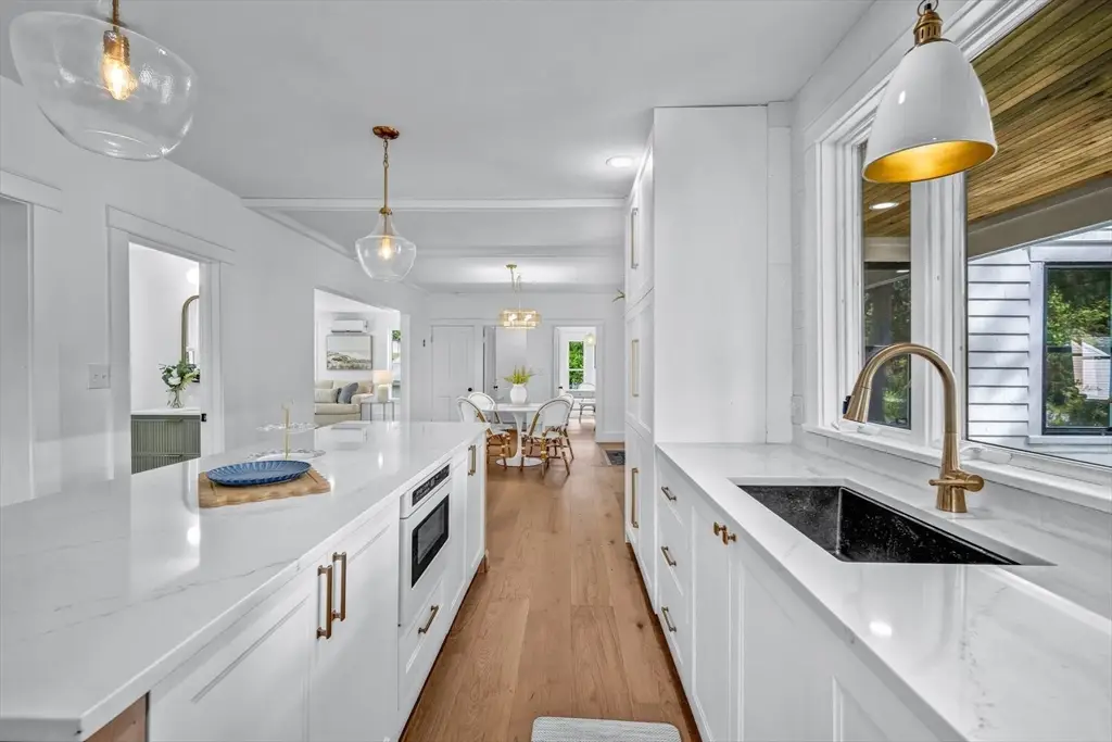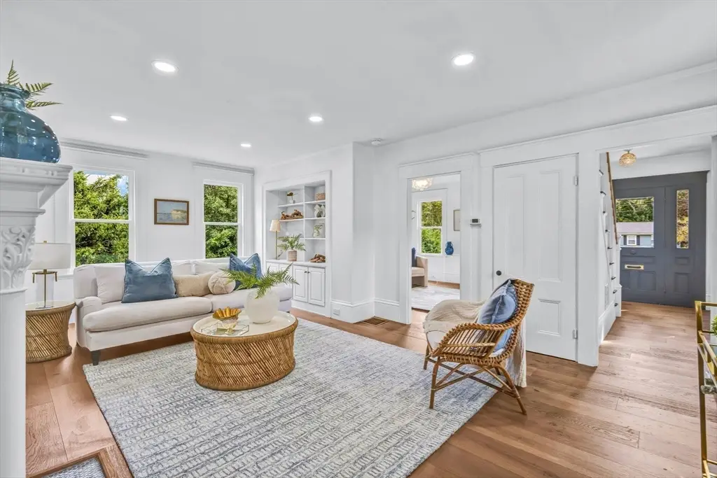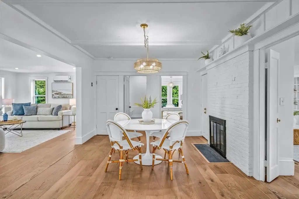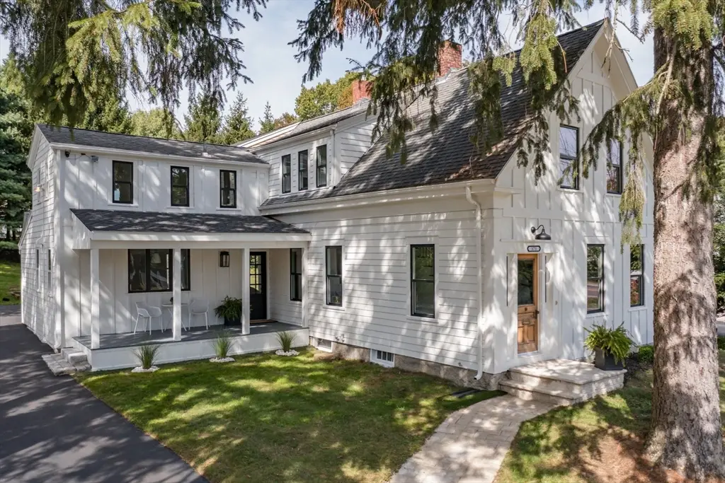 Stunning renovated Hingham farmhouse that perfectly blends historic charm with modern luxury. The open-concept addition showcases a gourmet kitchen with 8.6 ft quartz island, integrated appliances, and seamless flow to dining and living areas. Four fireplaces, a sun-filled study, and library offer multiple living spaces, while French doors open to a porcelain-paved patio for effortless indoor-outdoor entertaining. Five bedrooms include a luxurious primary suite with fireplace, radiant floor heat, oversized shower, and double vanity, plus convenient second-floor laundry. Two staircases enhance flow, and 8.5" wide-plank white oak flooring, black-exterior windows, and custom millwork elevate the design. Modern systems include central A/C and mini-split heating/cooling. Just 0.8 miles to Hingham train stations with sidewalk access to town centerùideal for commuting and coastal living. Close to downtown shops, dining, harbor, and parks.