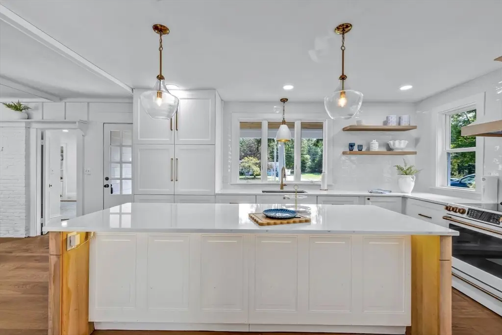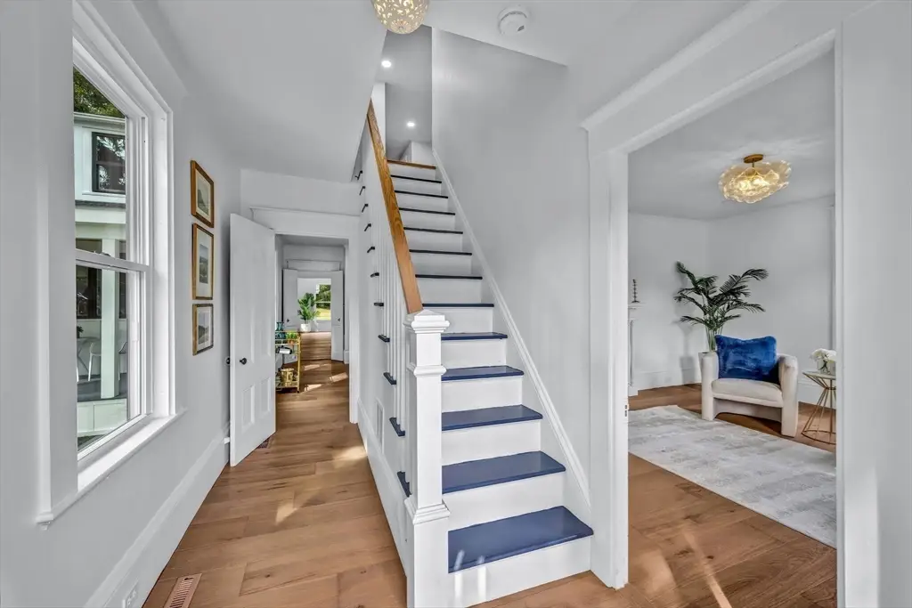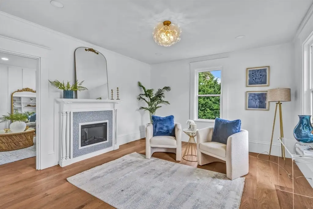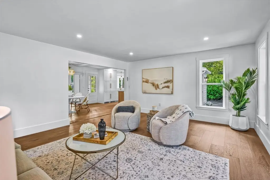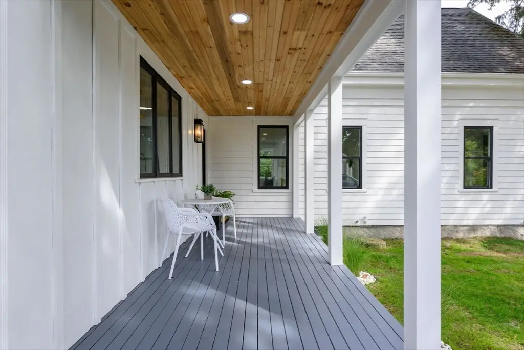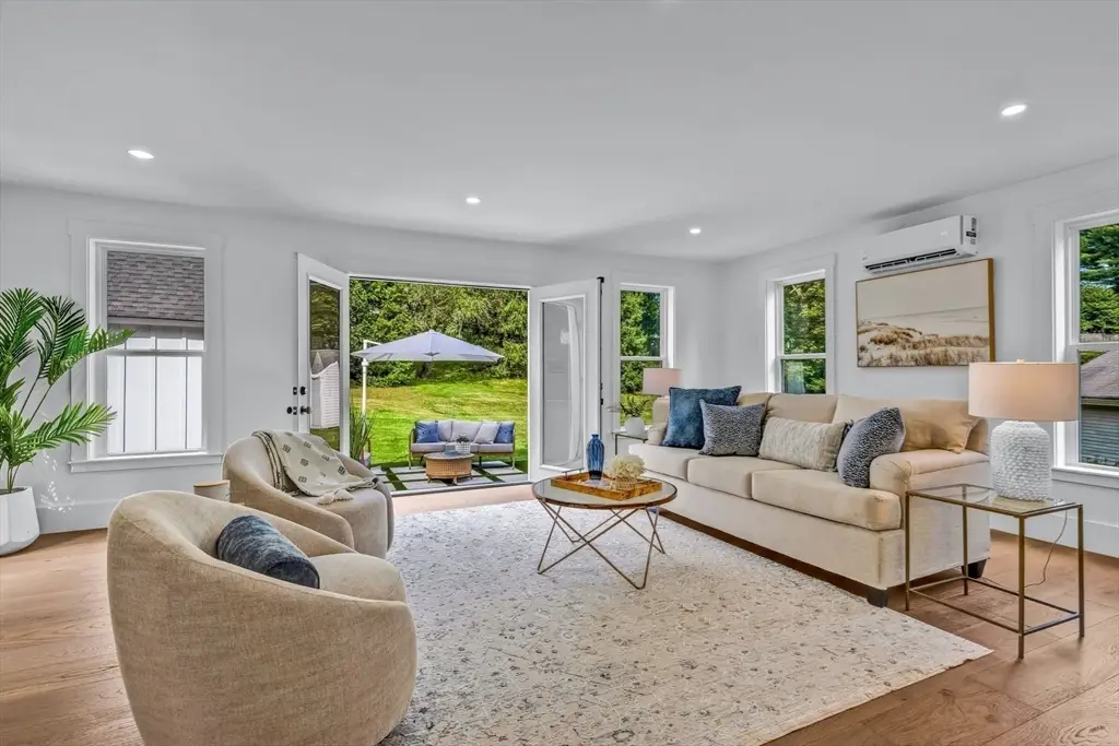 Stunning renovated Hingham farmhouse that perfectly blends historic charm with modern luxury. The open-concept addition showcases a gourmet kitchen with 8.6 ft quartz island, integrated appliances, and seamless flow to dining and living areas. Four fireplaces, a sun-filled study, and library offer multiple living spaces, while French doors open to a porcelain-paved patio for effortless indoor-outdoor entertaining. Five bedrooms include a luxurious primary suite with fireplace, radiant floor heat, oversized shower, and double vanity, plus convenient second-floor laundry. Two staircases enhance flow, and 8.5" wide-plank white oak flooring, black-exterior windows, and custom millwork elevate the design. Modern systems include central A/C and mini-split heating/cooling. Just 0.8 miles to Hingham train stations with sidewalk access to town centerùideal for commuting and coastal living. Close to downtown shops, dining, harbor, and parks.