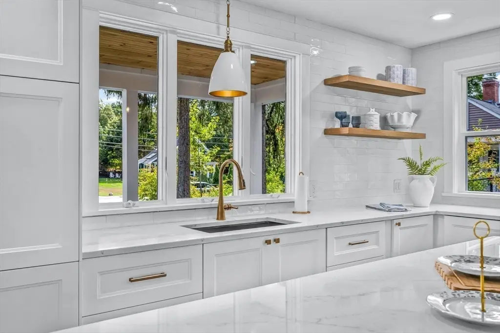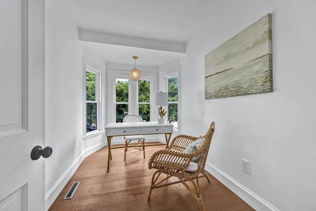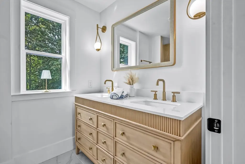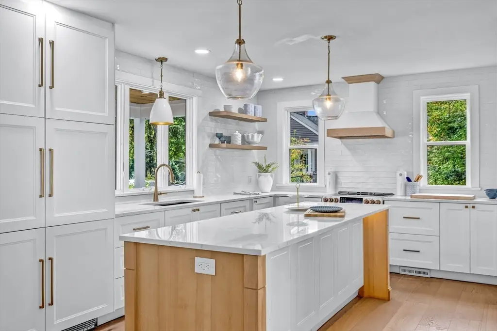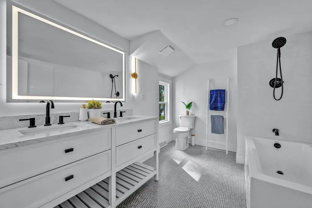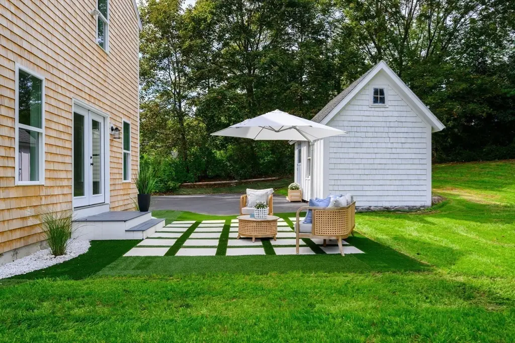 Stunning renovated Hingham farmhouse that perfectly blends historic charm with modern luxury. The open-concept addition showcases a gourmet kitchen with 8.6 ft quartz island, integrated appliances, and seamless flow to dining and living areas. Four fireplaces, a sun-filled study, and library offer multiple living spaces, while French doors open to a porcelain-paved patio for effortless indoor-outdoor entertaining. Five bedrooms include a luxurious primary suite with fireplace, radiant floor heat, oversized shower, and double vanity, plus convenient second-floor laundry. Two staircases enhance flow, and 8.5" wide-plank white oak flooring, black-exterior windows, and custom millwork elevate the design. Modern systems include central A/C and mini-split heating/cooling. Just 0.8 miles to Hingham train stations with sidewalk access to town centerùideal for commuting and coastal living. Close to downtown shops, dining, harbor, and parks.