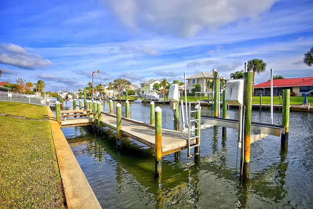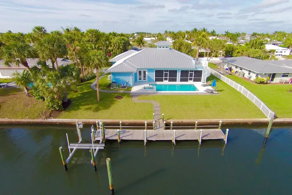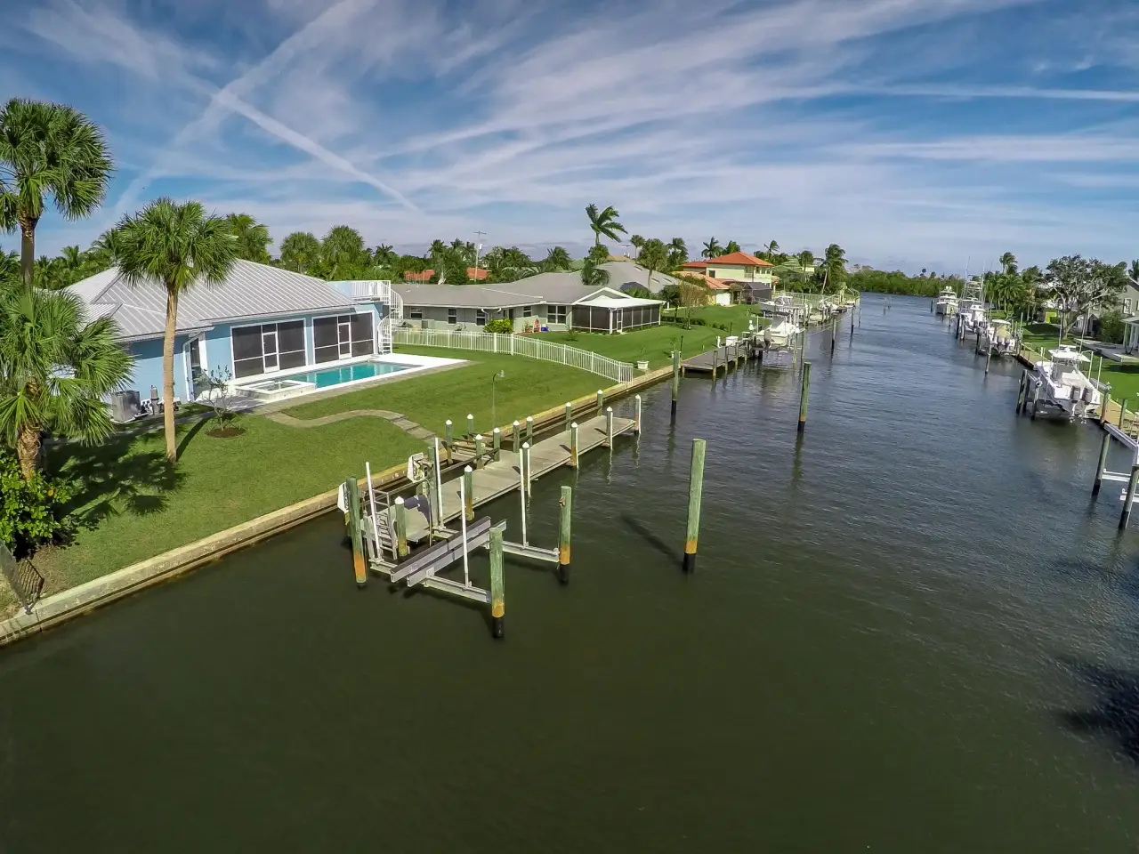 INCREDIBLE WATER VIEWS COME STANDARD! New (2016) waterfront home in search of big boat to share sunsets and the Salt Life! Finding a newly constructed home on the water in this area is like discovering a hidden treasure!! This gem showcases an exceptional open floor plan, upgrades galore, four bedrooms, 3.5 baths, oversized two-car garage and a pool with spa overlooking the water. This thoughtfully designed home has left nothing to the imagination! Its timeless Key West design and prominent Cupola providing additional interior light features a kitchen that is the home's hub for entertaining. The Stainless Steel GE Café Series appliances include a Gas Range (rare in this area). You will also have the convenience of kitchen-side dining at the expansive granite topped island or convening to the More...to the more formal dining area. Both offer incredible views of the water. From there you may adjourn to the living area with fireplace overlooking the pool, dock and waterfront. Actually, you have water views from most of the rooms in this incredible home! You may also decide to take advantage of the Summer Kitchen and gas grill for your outdoor BBQs by the pool! If first impressions matter, your guests will be amazed at the water views as they step into the voluminous entry way with 14-foot ceiling, 10-foot double-stepped coffered ceilings (with crown molding) throughout the rest of the house, three-zone air conditioner, impact windows and doors, Graber vertical and pull-down cellular shades, wood Cabana Shutters, LED Lighting throughout, tankless gas hot water heater and many more energy-saving features. You will be pleased with the low cost to maintain and insure this solidly constructed home. So many incredible upgrades and features to this home! So, here's just a few: 250 gallon propane tank (owned) Heated Salt Water Pool and Raised Spa Whole House Gas Generator 22 KV (2 Years Left on Warranty) Navien Tankless Gas Hot Water Heater Gas Fireplace Gas Range (GE Cafe Series Stainless Steel Appliances) Summer Kitchen with Refrigerator and Gas Grill Sundeck and Spiral Staircase off pool with view of Jupiter Island and ICW Recessed LED lights throughout Coffered Ceilings Central Vac 3 Zoned Air Conditioner Current Standards Impact Glass and Windows Security System with 8 Cameras Irrigation Well with Rust Filter Your home will have: 4 Bedrooms with Master on Split Floor Plan 3.5 Baths (Bidet In Master Bath) Oversized 2 Car Garage with Plenty of cabinets and overhead storage 2,675 square feet under air - 3,875 square feet total 100' of waterfront with Concrete Seawall on 1/3 Acre 50' Dock with 50 Amp Power and water 10,000 LB Boat Lift 14.7 x 28.6 Covered Patio with No Seeum's Screen Master Bath has Dual Head Walk-in Sports Shower and Soaker Tub Pull down ironing board, lots of storage in large laundry room Desirable North Exposure