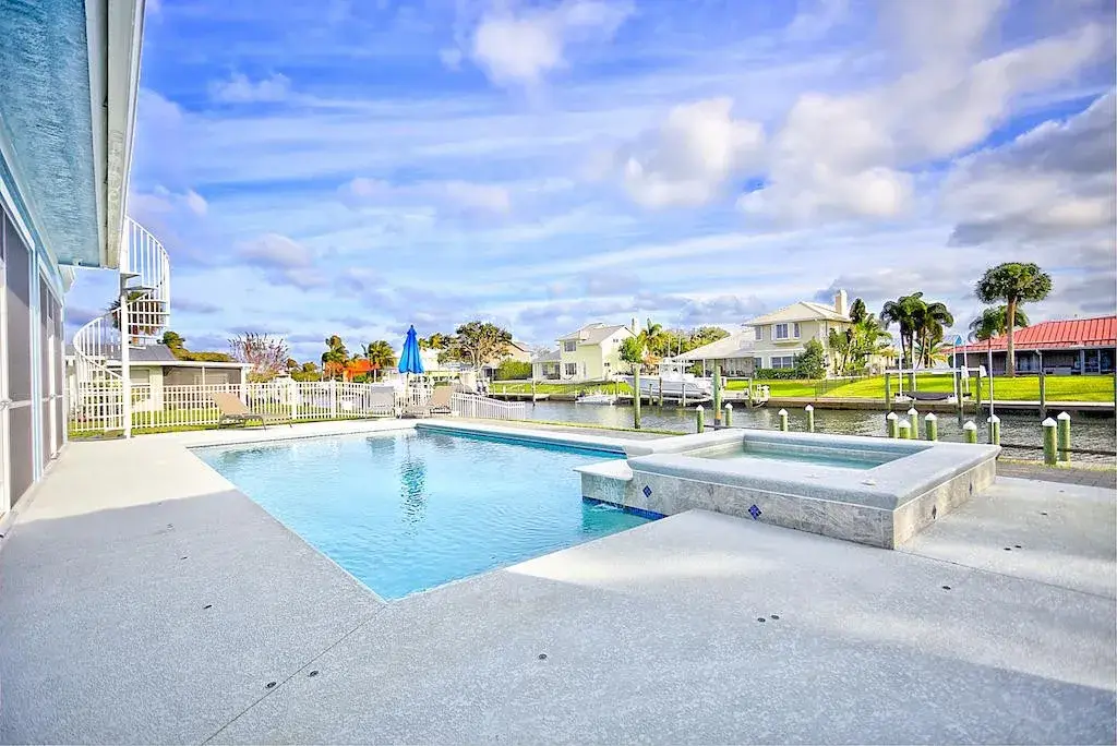 Waterfront location with pool and spa overlooking the water
