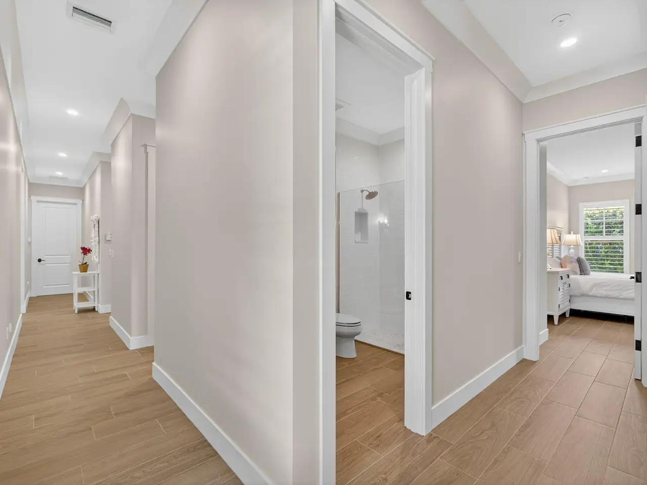 Stunning One-Story Modern Residence In Hobe Sound Golf Club! Built In 2020, This Impressive 5 BR, 5 BA Home w/3 Car Garage, Corner Lot on .43 acres Features An Open-Concept Split Floor Plan Designed For Both Comfort & Entertaining w/Generator, All Impact Windows & Doors, Porcelain Tile Floors & Plantation Shutters Throughout. The Light-Filled Living Spaces Flow Seamlessly to the Gourmet Kitchen & Spacious Great Room, Showcasing Contemporary Finishes, Great Rm has Tray Ceiling w/Tongue & Groove Shiplap. Chef's Kitchen is Appointed w/Oversized Island, Quartz Countertops, Walk-In Pantry, Thermador Appliances, & Gas Range. The Luxurious Primary Suite Opens to Lanai & Pool Area & Includes Spa-Inspired Bath w/Soaking Tub, Frameless Glass Walk-In Shower, Custom Walk-In Closet w/Built-Ins, 4..... Oversized Guest Bedrooms Provide Comfort & Privacy, While Large Laundry Room Features Sink, Counters & Extensive Storage Cabinets. The Generator Adds to The Home's Quality & Peace Of Mind. Step Outside to A Screened-In Lanai Overlooking the Heated Saltwater Pool & Expansive Corner Lot Perfect For Enjoying Florida Living At its Finest. Ample Storage Complete This Exceptional Home In The Serene And Secure Hobe Sound Golf Club Community.