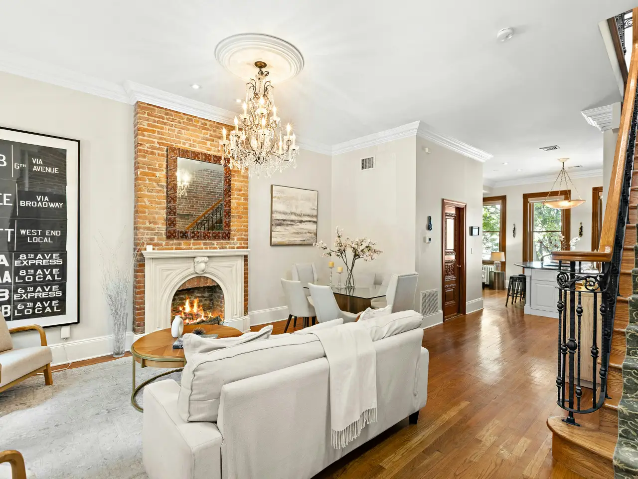 This three window wide, 17.5' x 100', uptown Hoboken single family home has four bedrooms and three full baths over three floors, and a large basement.  This turn-key home has been completely renovated and the open floor plan on the parlor floor offers a large living/dining area and features a working gas fireplace with an original mantel, exposed brick, and a full bath.  The renovated kitchen comes complete with plenty of storage, including a built-in buffet, pantry, and a working island with granite countertops complimenting the Bosch/Miele and Electrolux Icon appliances.  The top floor showcases the original exposed brick on a large landing that enjoys an abundance of natural light from the overhead skylight and encompasses three bedrooms, including a primary with a large walk -in closet, a well-appointed full bath, and two other bedrooms with built-in bookshelves and dresser that overlooks the garden.  The fully rebuilt staircase takes you down to the garden level which has another office/bedroom that is fully paneled, has a built-in glass bookcase, classic shuttered windows for privacy, and is currently being used as an office.  Beyond the bedroom is another well-appointed full bathroom featuring a large custom vanity with marble countertops and glass paneled shower with subway tile.  The large garden level family room comes equipped with a built-in wet bar, a working fireplace, and leads to an oversized beautiful professionally landscaped backyard with a large pergola and BBQ with dedicated gas line that is perfect for entertaining.  1314 Garden retains many original features including a beautifully restored facade and stoop, original double parlor floor doors, original mantels newel post, and many original decorative moldings.  The home provides heating and cooling through a state-of-the-art 3 zones of forced air cooling and hot water radiators.  The basement provides an abundance of storage and room for mechanicals, is ideal for storage, and features a custom 700 bottle fully-conditioned wine cellar with tasting table.  The 1300 block of Garden Street retains the highly desirable and consistent turn-of-the-century townhouse architecture and is conveniently located only five minutes from Hoboken's 14th Street NY Waterway Ferry and is located just moments from 14th and Washington Street's boutique shopping, restaurants, and the NJ Transit bus route which will take you to Port Authority bus terminal in approximately fifteen minutes.  Rental parking is available nearby.
