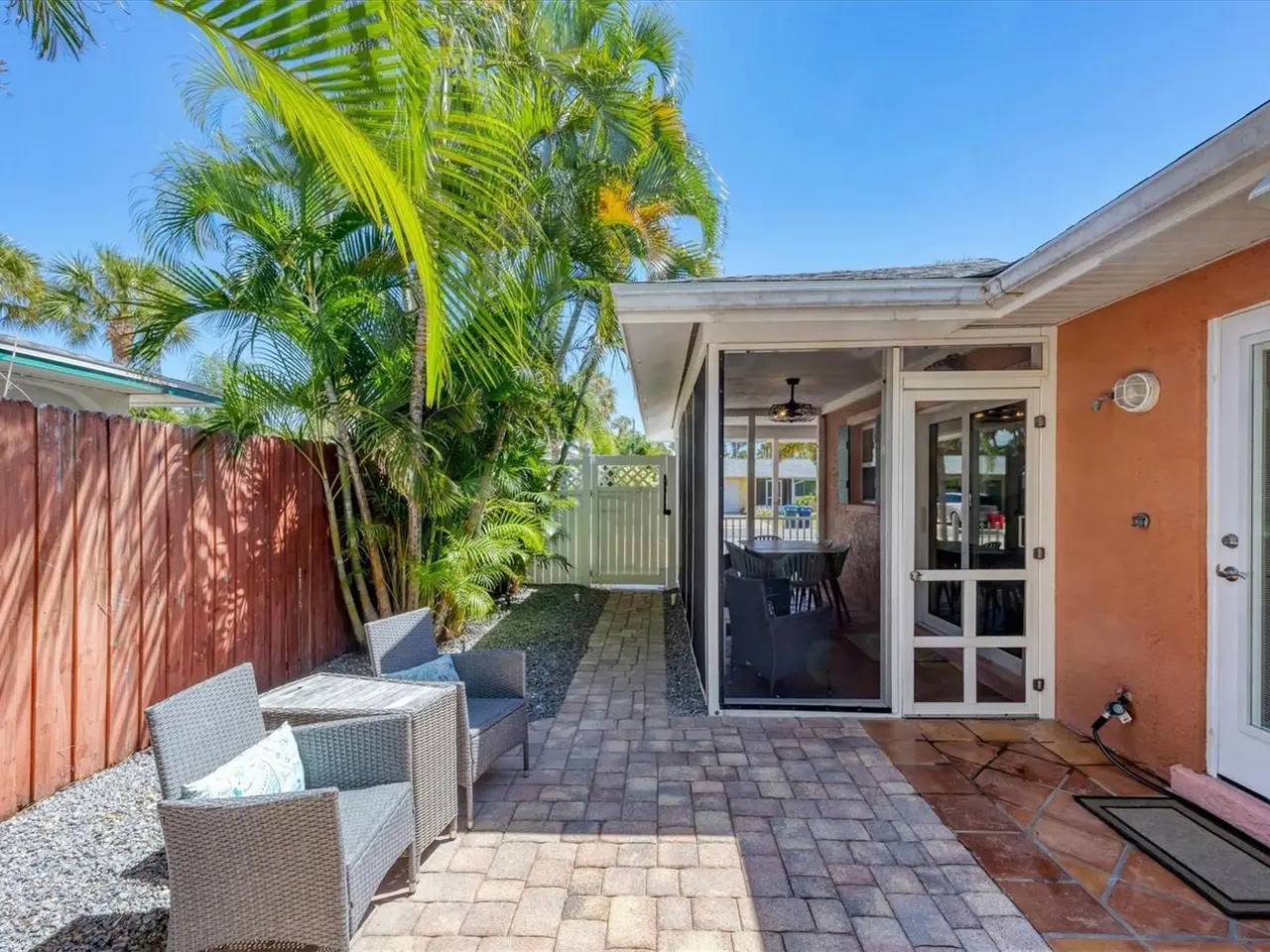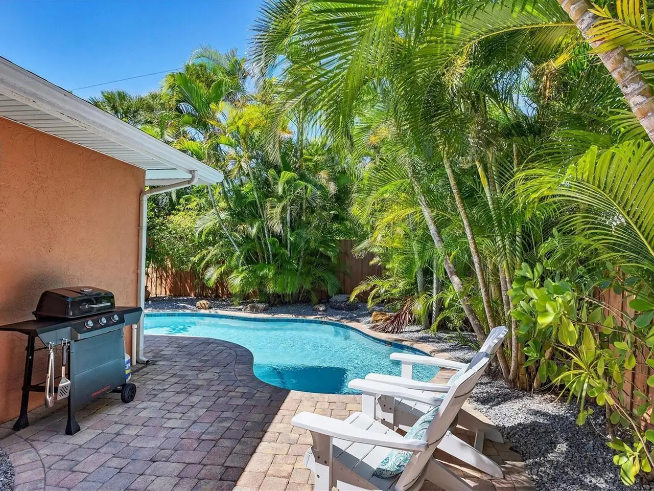 Welcome to Catching Waves, a charming coastal retreat nestled in the Heart of Holmes Beach on beautiful Anna Maria Island, FL. This fully furnished, COMPLETELY RENOVATED, 2-Bedroom, 2-Bathroom Villa provides the perfect blend of comfort and privacy. Surrounded by gently swaying palm trees on a quiet street, they spared no expense in the remaking of this home, top to bottom. Meticulously remodeled and decorated, the lucky new owner has nothing to do but enjoy their "like new" island getaway! Unwind on the spacious front porch or relax poolside by your sparkling private heated pool surrounded by mature landscaping. Step inside to the open concept living area and kitchen, with all new cabinets and appliances, which opens to a large, screened porch, ideal for dining or curling up with a coffee and an enjoyable book. Two spacious bedrooms with ample closet space, 2 full baths, and laundry with a new full-size washer and dryer complete the space. Walkable to the beach, and conveniently located near a trolley stop, this coastal cutie is the perfect beachside escape in an ideal location. Zoned weekly rentals, it also presents an excellent investment opportunity. Do not miss your chance to own your slice of island paradise!