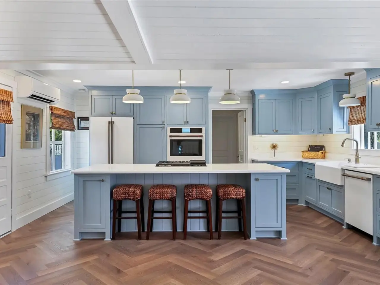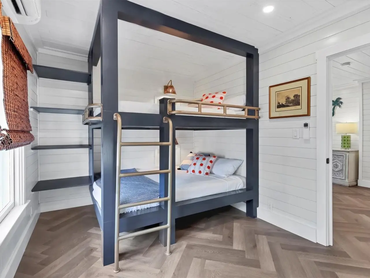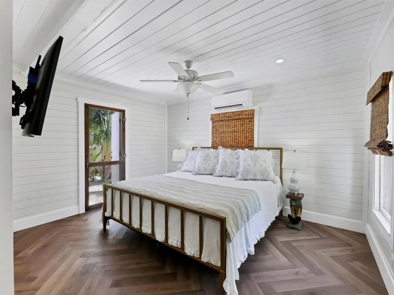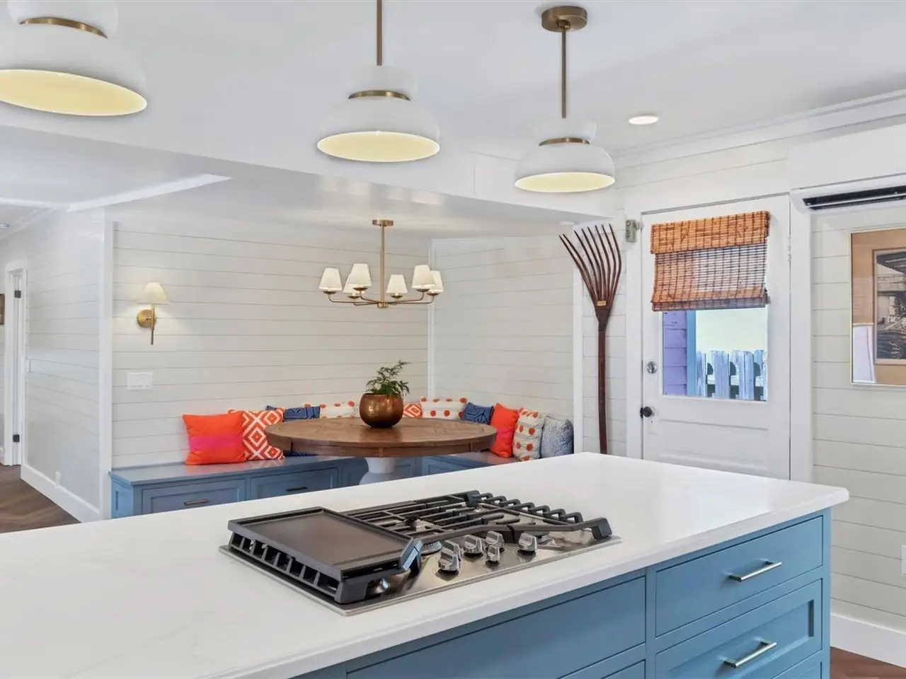Step onto the spacious screened front porch, now featuring Timber Tech by Azek Porch Collection decking, framed by original Pecky Cypress siding, and enjoy the timeless charm of this lovingly restored 1940s 2 bed / 2 bath craftsman beach cottage just steps from the Gulf. This home blends Old Florida character with today’s comfort. Inside, new shiplap walls pair with Daltile’s Asher Bend luxury vinyl flooring in a herringbone pattern over a brand-new subfloor. This waterproof, scratch resistant surface combines the warmth of wood with the resilient vinyl, perfect for beachside living. The open kitchen boasts custom floor-to-ceiling cabinetry handcrafted in Pennsylvania, a built-in breakfast nook with matching benches, a Café Series appliance package in matte white, brushed bronze hardware, and Carrara. Emporio acrylic solid surface countertops for beauty and practicality. Both bathrooms feature spa-inspired tilework, one with a custom glass shower enclosure. The primary suite opens directly to the pool, while the guest bedroom provides its own private layout. A newly designed laundry suite adds everyday convenience with an Electrolux washer and dryer plus a high built-in countertop for organization. Outdoors, enjoy a fenced backyard oasis with an Agnelli-installed, custom-designed saltwater pool completed in 2022, surrounded by palm-lined landscaping for a private retreat. Behind the scenes are new plumbing and light fixtures throughout, spray foam insulation under the floors, new batt insulation in the walls, and carefully sourced finishes, all completed in 2025. With proven rental income managed by the owner and even stronger potential under professional management, the Pink Palm is an iconic island cottage reimagined for today.