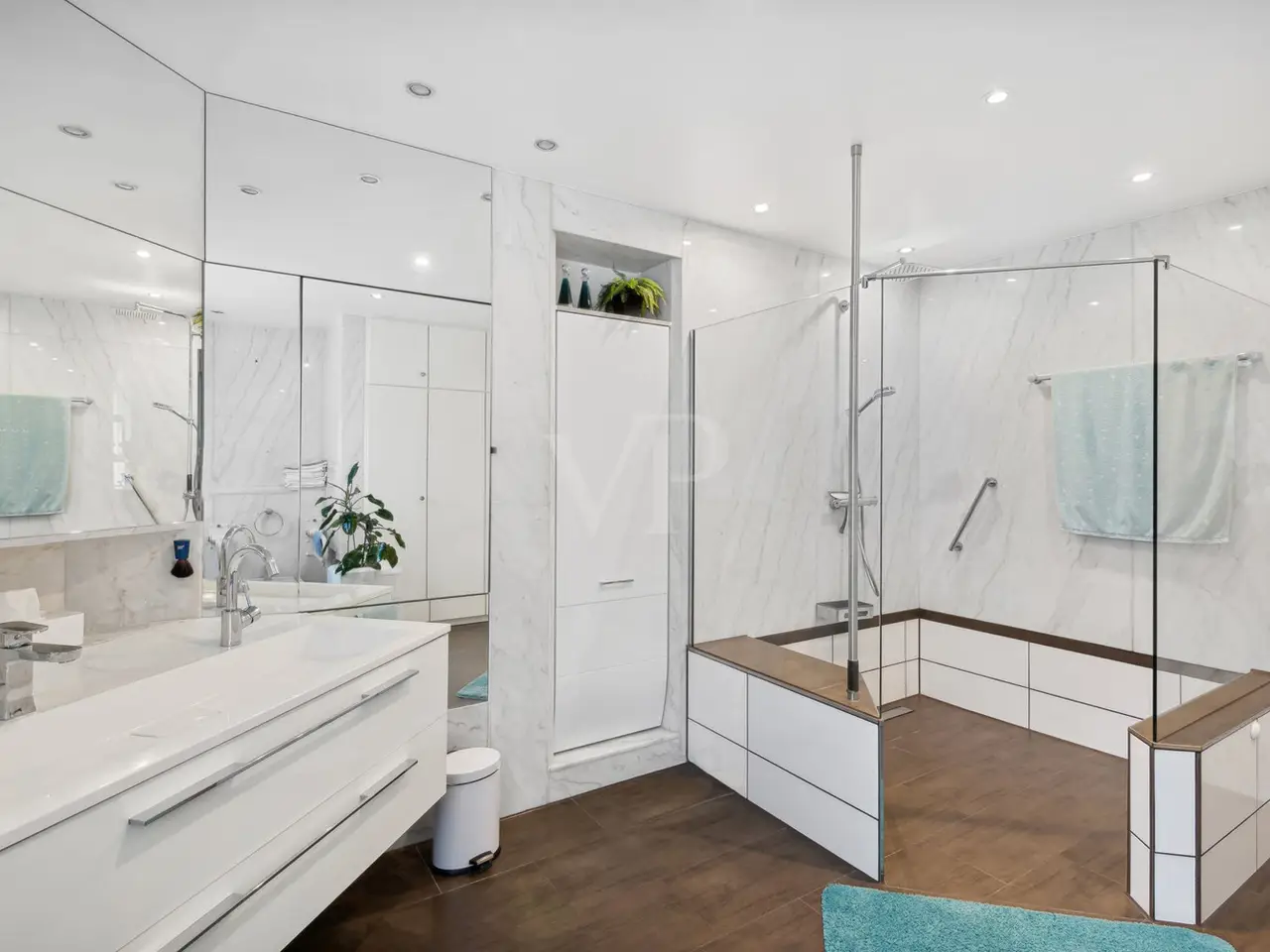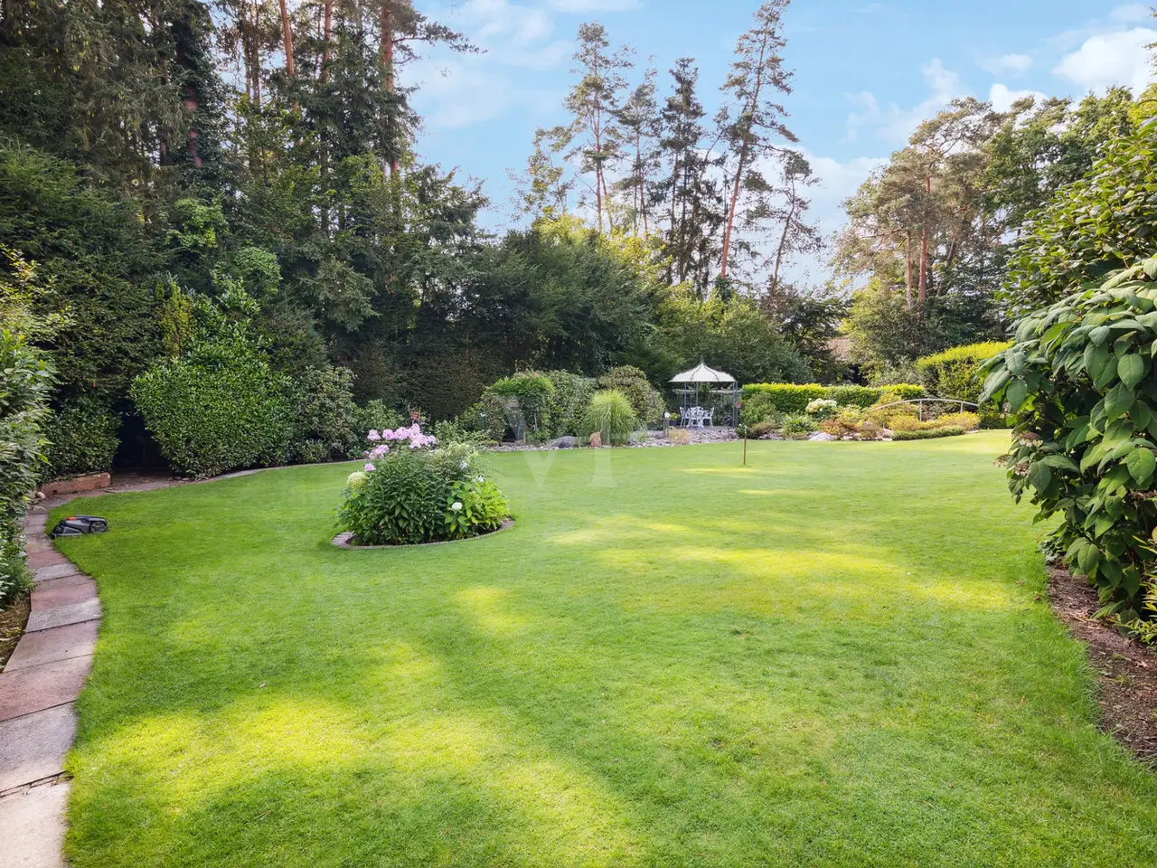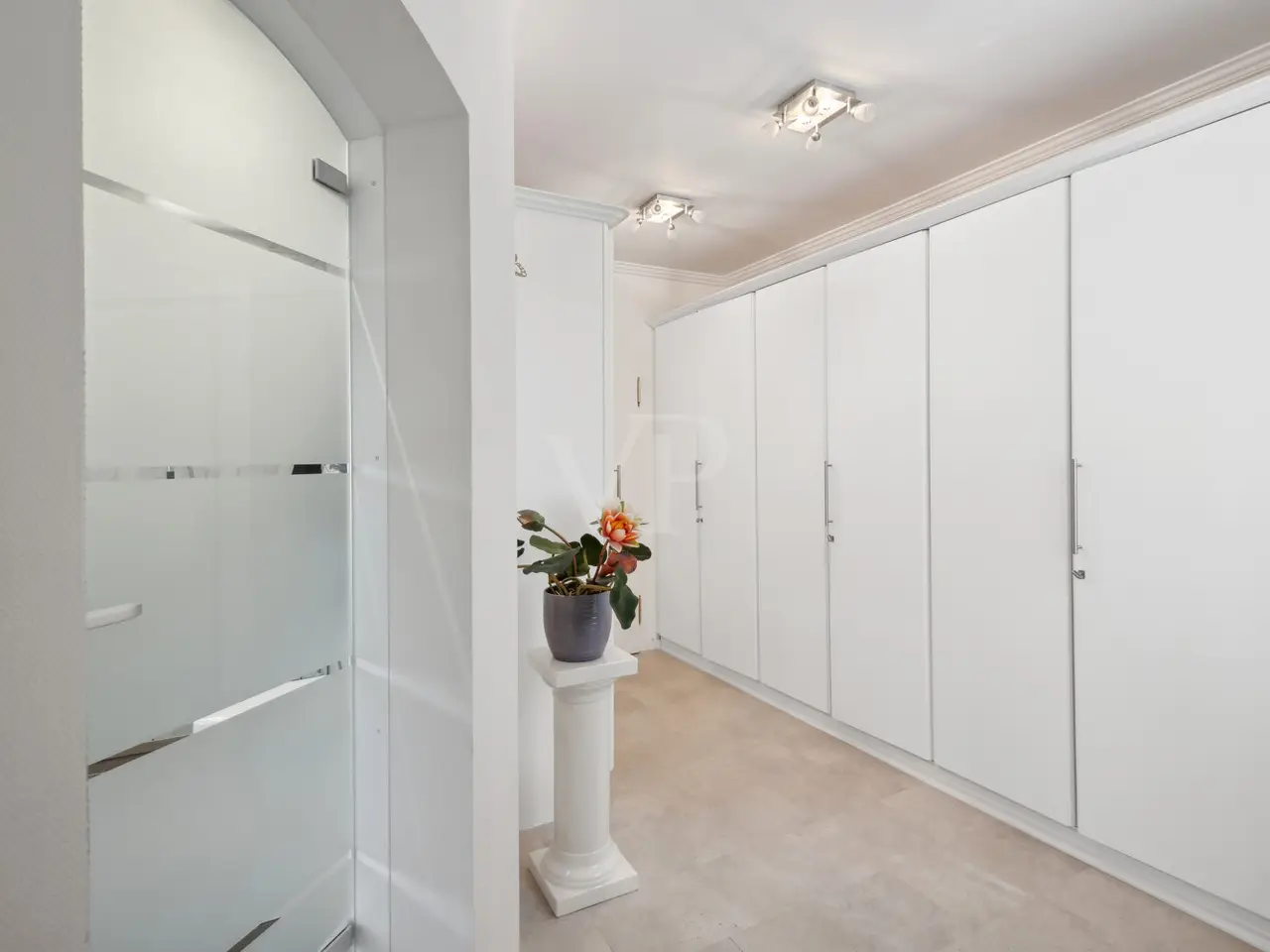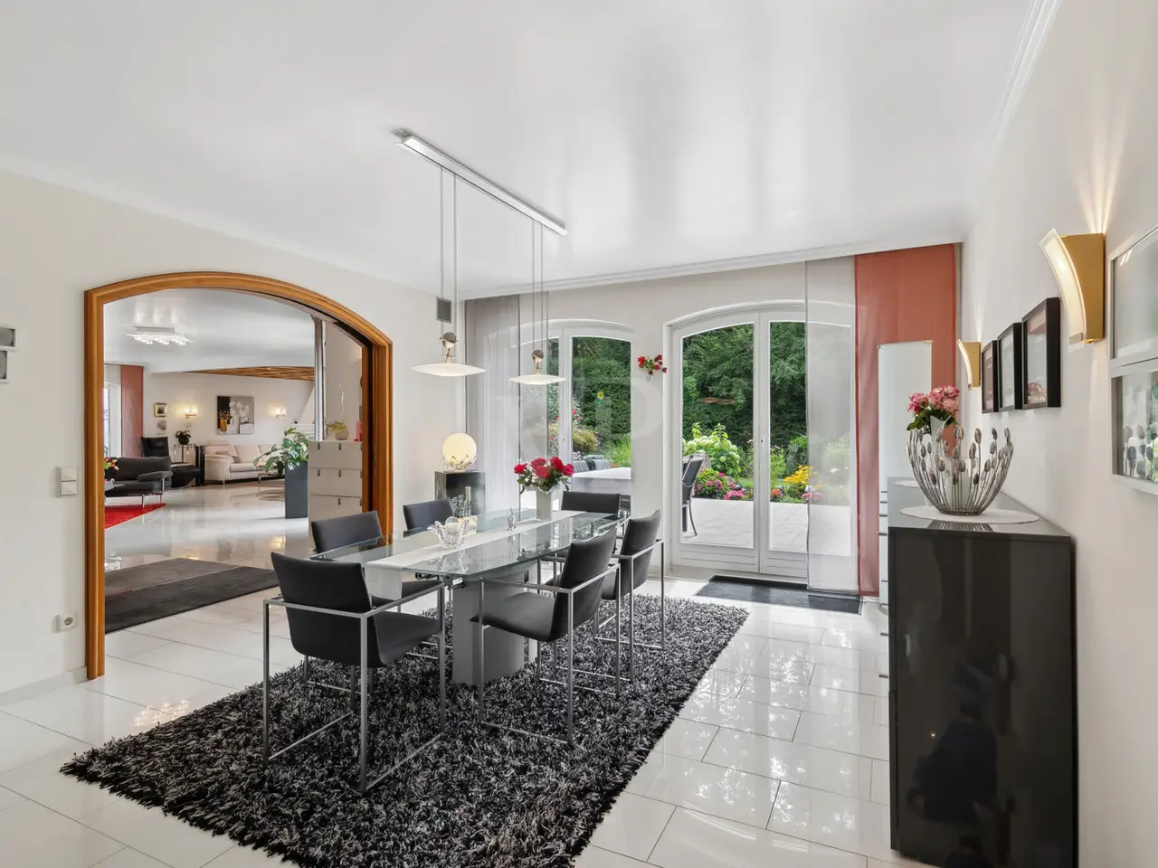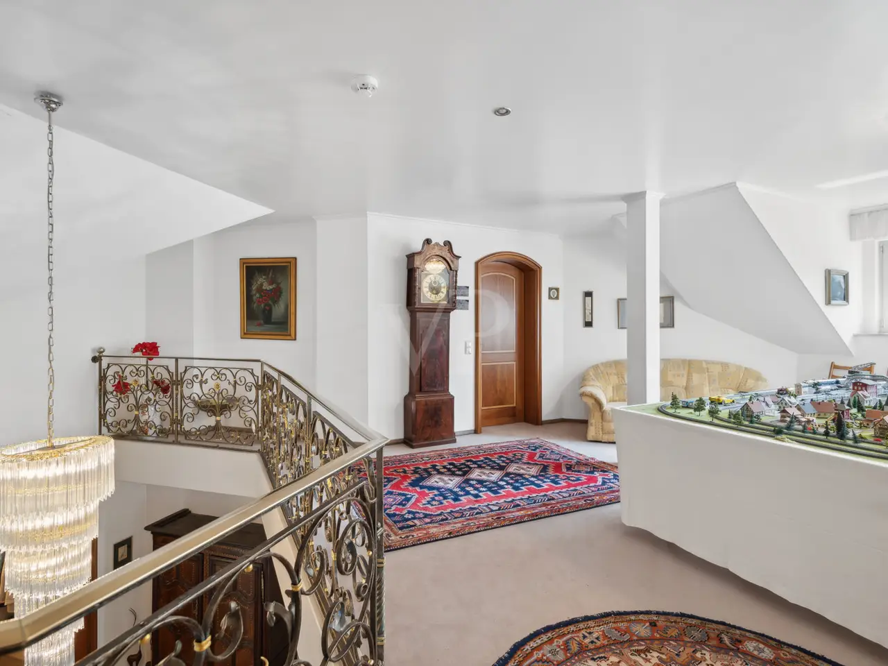 Welcome to the classic grace of Homburg. This first-class villa, built in 1986, sits majestically on a generous plot of approx. 1,663 m² and impresses with its unique architecture. The sophisticated design unfolds over two stylish levels with a living space of approx. 376 m² and also includes a basement with a shelter. The overall picture is completed by a granny apartment of approx. 70 m², which can be accessed via a separate side entrance. Upon entering this villa, you are greeted by an impressive entrance hall with an elegant marble floor and breathtaking ceiling height. The view of the open gallery enhances the feeling of spaciousness. A custom-made archway leads you into the heart of the property: the impressive living and dining area of approx. 100 m². The open fireplace in the fireplace room provides cozy warmth and contributes to the cozy atmosphere, while large windows offer a harmonious view of the well-tended gardens. An adjoining conservatory blurs the boundaries between inside and outside and provides the perfect place for a relaxed breakfast. The U-shaped kitchen, which is directly adjacent to the dining area, is equipped with high-quality electrical appliances and features a sophisticated marble worktop, providing the perfect setting for culinary delights. The sleeping area is located separately from the living area as a private retreat. A dressing room leads into this area, which is complemented by a spacious master bathroom with walk-in shower and double washbasin. The bedroom completes this elegant area and offers a comfortable retreat. The impressive marble staircase with handcrafted steel banisters leads to the next level of the villa's open gallery. Two branches lead off from here: In the left and right wings, you will find a bathroom, a bedroom and a living and studio area respectively. Each wing also offers access to a loggia or terrace with wonderful views. These separate areas are ideal as guest or children's wings. The basement also has its own wine cellar where you can enjoy a glass of your own wine. A sauna and wellness area invites you to relax, while a safe room provides additional security. A total of three garage parking spaces are available for your vehicles and offer secure protection. The garage can be reached easily and dry-footed via the staircase. Finally, you can enjoy the view of the idyllic gardens. The immaculately manicured lawn is framed by magnificent panicle and velvet hydrangeas as well as elegant grasses and perennials, which lend the surroundings a harmonious atmosphere. The spacious terrace invites you to linger not only on warm summer days, but also in the cooler seasons, as it is equipped with a cozy outdoor fireplace. This exceptional privacy creates a perfect retreat that invites relaxing moments and real rest. Immerse yourself in the atmosphere of this exclusive villa and discover your new home in a prime location in Homburg. Arrange a viewing appointment today.