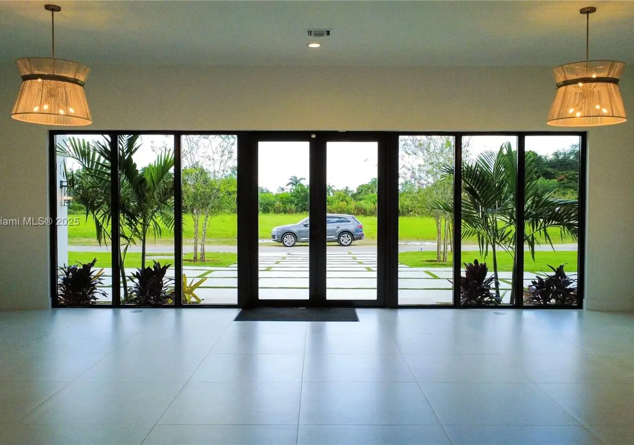 Modern CBS luxury new Construction home with flat TPO roof, hurricane-impact door/ windows, and in-law quarters. Spacious Lot with 17,025 sq ft modern sealed polished driveway with turf, double car garage, landscaped yard, sprinkler, and front /rear terrace/ porch. Inside, high 11' ceiling, porcelain flooring throughout the property, panel wood interior doors, recessed lighting, two tankless water heaters, two a/c units, and designed lamps. Chef's kitchen with modern wood cabinets to the ceiling, quartz counters with a waterfall island, stainless steel ceramic cooktop slide-in range, drawer microwave, hood, dishwasher, and energy-efficient smart refrigerator. Bathrooms with wood cabinets and quartz countertops. Main suite with a large walk-in closet. A/C laundry with washer/dryer.