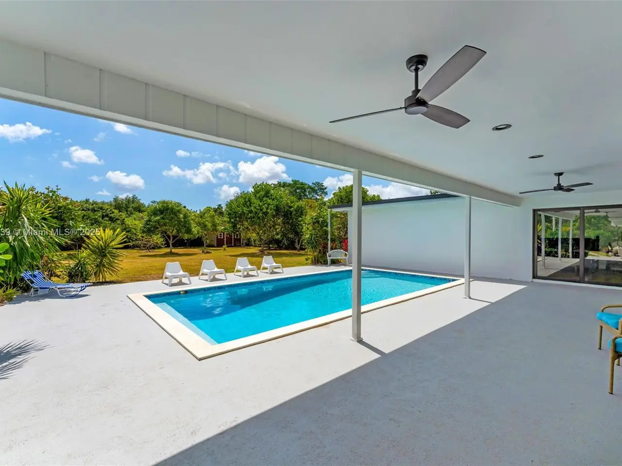 Stunning artisan 3/3 pool home on 1.14 acres, sitting within the Redland agricultural community, living here is a lifestyle. Entering through the porte-cochere, you are transported into a "mid-century modern vibe". From the restored terrazzo floors to a totally remodeled interior, no detail was overlooked. Features include a 2015 roof, 2022 impact windows & doors, 2022 new electrical system, 2022 a/c & ducts, 3 new water heaters 2022, full kitchen remodel 2022, primary bedroom/bath remodel 2024, 40 mature tree's (see list), a refinished pool w/ new tile/coping/new pump system 2018, cabana w/ built in pit for pig roast, a finished garage suitable for a work space, & electric gated entry. She's a beauty and a must see!
