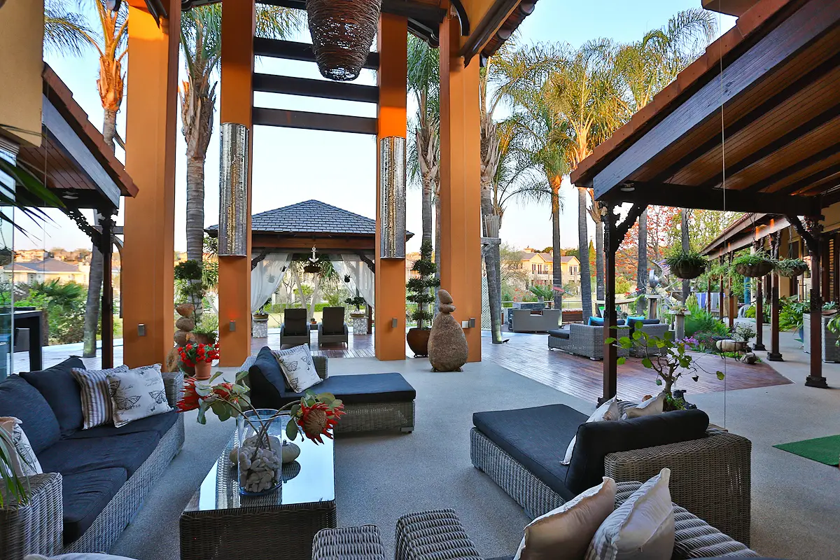 Step into a world of tranquil sophistication with this exceptional and authentic Balinese-inspired residence, where every detail evokes serenity and artistry. Set on a sprawling stand that rolls gently down towards the river, this expansive home offers a rare combination of privacy, indulgent finishes and resort-style living. A dramatic double-volume entrance, framed by soaring dark wood beams, sets the tone for this remarkable property. Hand-carved Balinese pillars, an ornate front door, and curated artifacts create an immersive experience of Eastern-inspired luxury from the moment you arrive. • The four Exquisite bedrooms and fifth as part of a cottage are all 5 star accommodation. The main en suite is a private sanctuary, thoughtfully set apart from the rest of the home. Featuring a built-in oversized bed beneath a detailed open-beam ceiling, fireplace, and a luxurious bathroom with Jacuzzi bath and shower, this retreat flows effortlessly to a secluded patio through expansive stacker doors. Two additional en suite bedrooms boast floor-to-ceiling glass walls with uninterrupted views of the pool and entertainment area. A fourth guest bedroom offers quiet seclusion, while the fifth bedroom suite is a fully independent studio-style retreat—ideal for guests or as a private home office, with its own exterior access. • The formal lounge, framed by floor-to-ceiling glass, gazes out onto an indigenous water feature, infusing natural calm into the heart of the home. A private cinema room and a spacious games room with adjoining cellar provide multiple areas for refined relaxation and entertaining on a grand scale. The resort-style entertainment area is anchored by a sprawling swimming pool and a serene covered oriental gazebo, perfect for al fresco dining or sunset lounging. Lush landscaped gardens extend down to the river, offering a setting of rare natural beauty and peace. Additional Features • 6 Garages • Multiple fireplaces throughout • Open frontage river access • Large solar power inverter system • Numerous water tanks • Estate-level privacy and security This home is more than just a residence—it's an experience. Perfect for the discerning buyer seeking a one-of-a-kind lifestyle, this masterpiece offers the ultimate in elegance, privacy, and timeless charm.