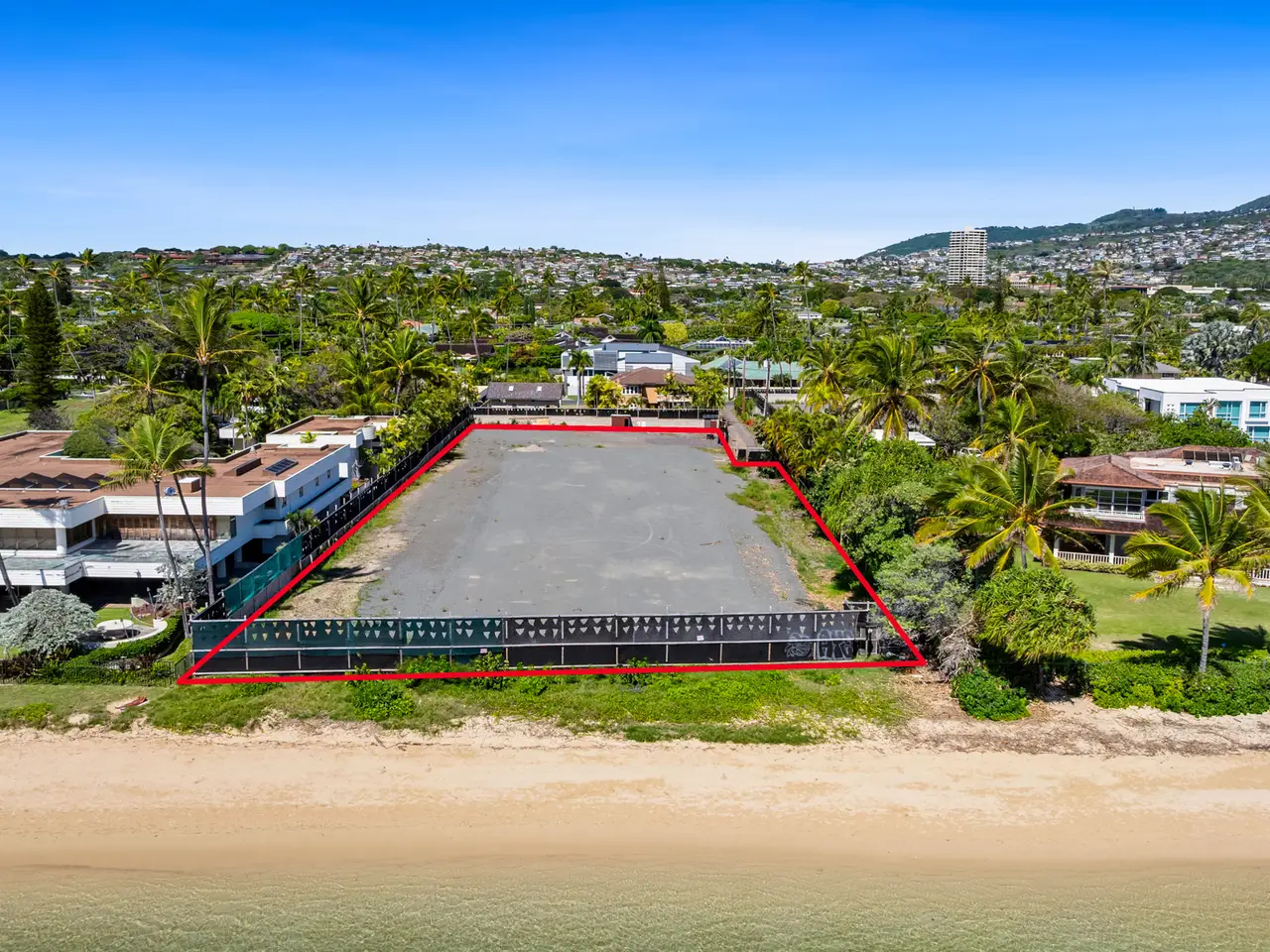 Discover a rare and extraordinary offering—over 45,000 square feet of prime buildable land along prestigious Kahala Avenue. This expansive oceanfront property, comprised of two parcels (TMKs: 1-3-5-006-014 & 1-3-5-006-009), boasts 126 linear feet of direct beachfront access, inviting you to experience breathtaking, sunsets, and over a mile of direct serene sandy shoreline. Recently improved with grading and new perimeter walls, this R-5-zoned property is an exceptional canvas for a grand estate, private compound, or luxury family residence. Short distance to the Kahala Hotel or Waialae Country Club, embrace the ultimate island lifestyle in one of Oahu’s most prestigious neighborhoods. Nestled down a private lane, this exclusive setting offers privacy, gorgeous ocean views, and an opportunity to craft an oceanfront legacy in one of Hawaii’s most coveted locations. Don’t miss this chance to build your dream home in Kahala.