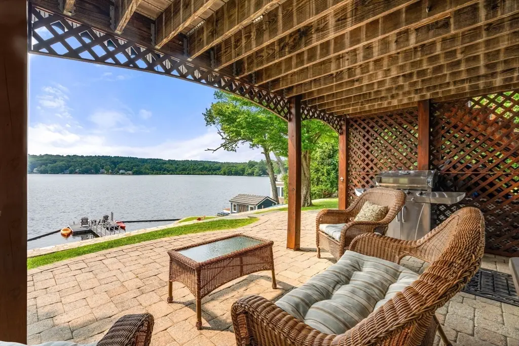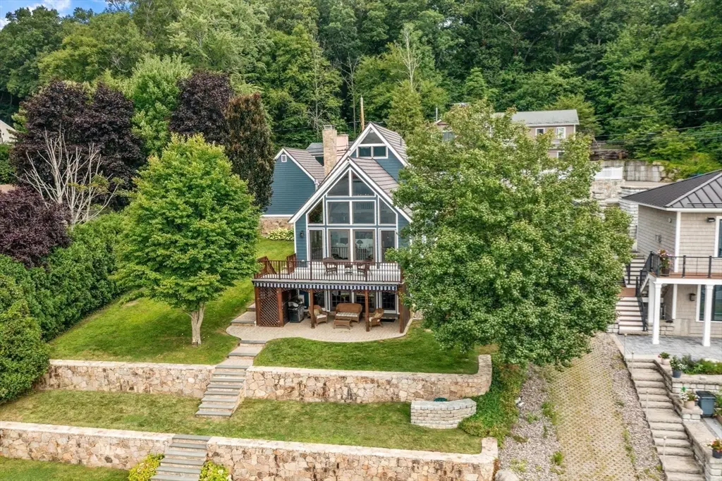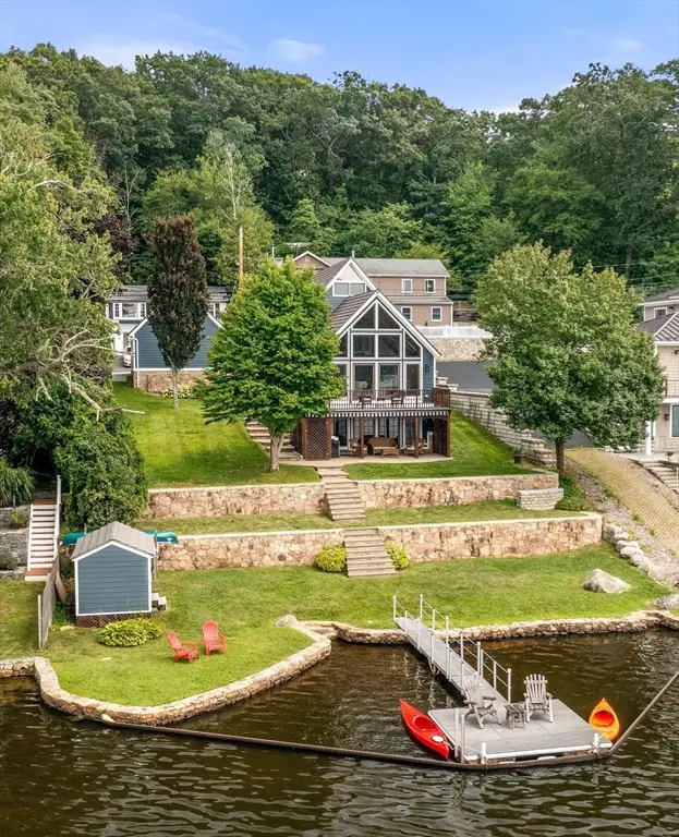 Boater's Paradise!~ Custom built lakefront home with 30Æ Trex plank aluminum frame dock. The Great Room features 2-story cathedral Douglas Fir Post & Beam w/walls of windows & stunning lake views & Trex deck. Facing SW & on widest section of Lake Maspenock, this home has undergone a complete makeover & expansion using the latest materials & technology. Newer metal roof, Advanced Composite siding & 2-car garage w/loft & cobblestone driveway. Brazilian cherry floors & Anderson windows thru-out. Flex. Lower Level walkout Game Room & French doors opening to patio w/awning. Flexible layout w/many skylights & features throughout. (2)Mitsubishi mini splits, baseboard heat, (2) VT Casting propane stoves & wood burning FP. Paver walkways, stone walls & bluestone steps grace the terraced lakeside. Walk to town beach, top-rated schools & minutes to Rte 495 & 90. Relax, boat, swim or waterski w/ gorgeous sunset views on 2-mile long Lake Maspenock. Vacation at home!