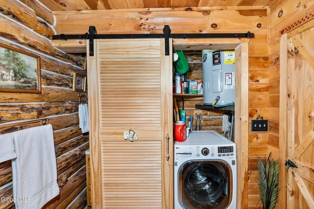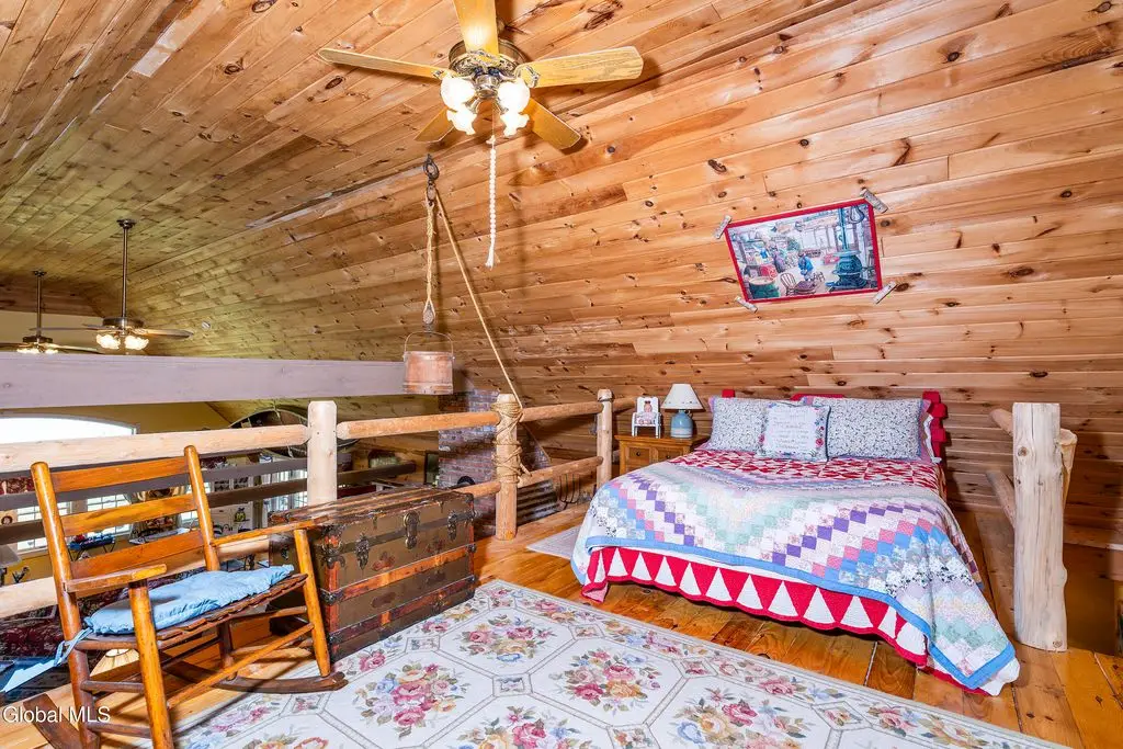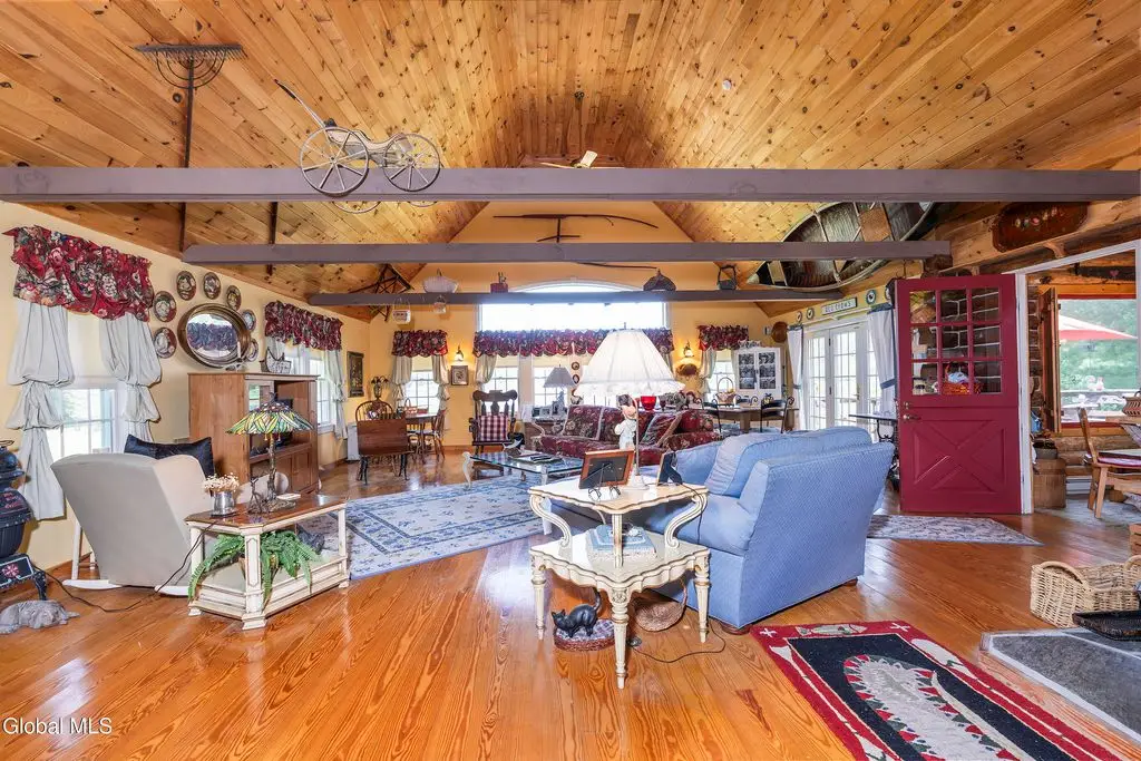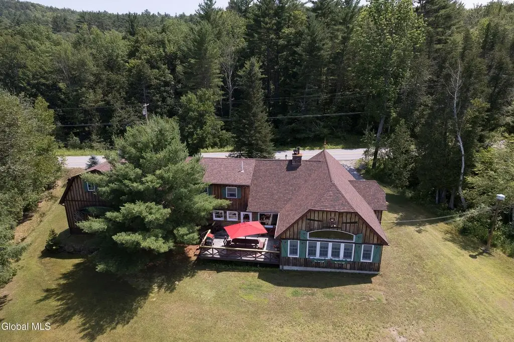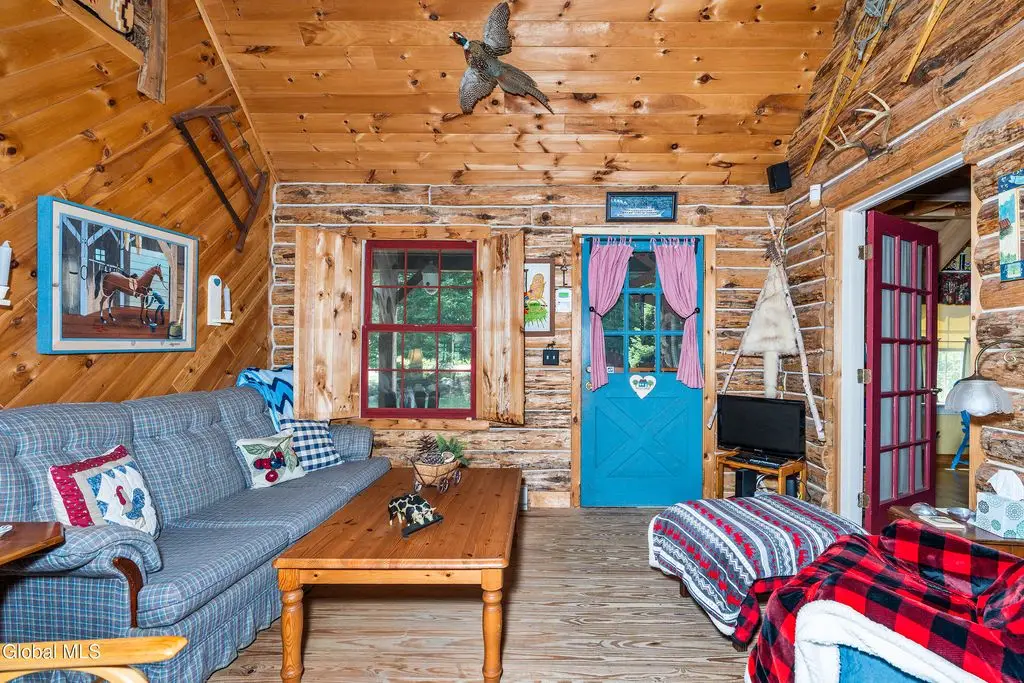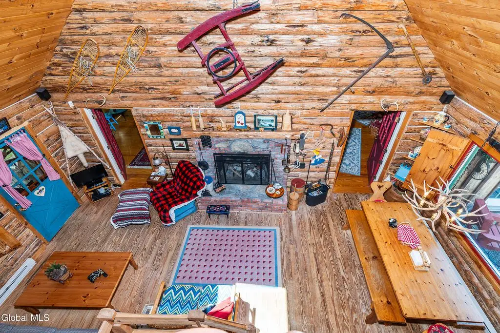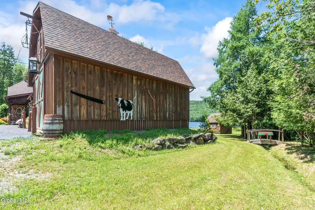 Incredible year-round waterfront home on beautiful and peaceful Valentine Pond, with water views from nearly every room. This 3,267 sq ft. log home, featuring a Bavarian flair, boasts cathedral ceilings, a spacious great room, sleeping lofts, and a cozy family room with a fireplace. The outdoor area is perfect for entertaining, with a deck, a lovely grassy area ideal for lawn games, and just steps from the water and your dock. The huge barn-style garage, with storage above, provides room for storing your boat. Whether you're seeking summertime fun, such as swimming, boating, & fishing, or winter activities like ice skating & ice fishing, this exceptional property offers it all, while being just minutes away from Gore, Lake George, and the Adirondack High Peaks. Make this sanctuary yours!
