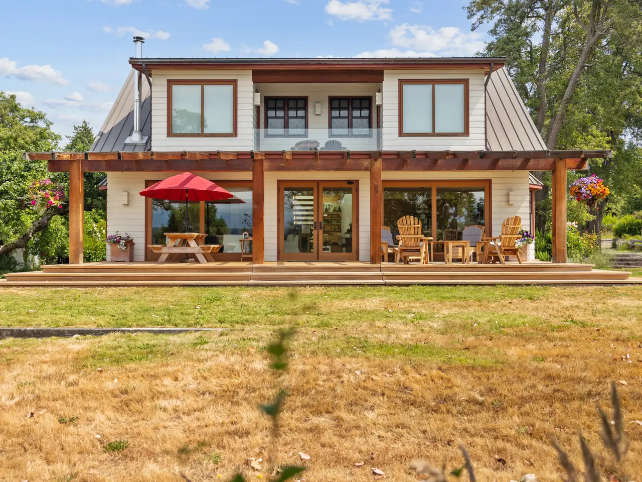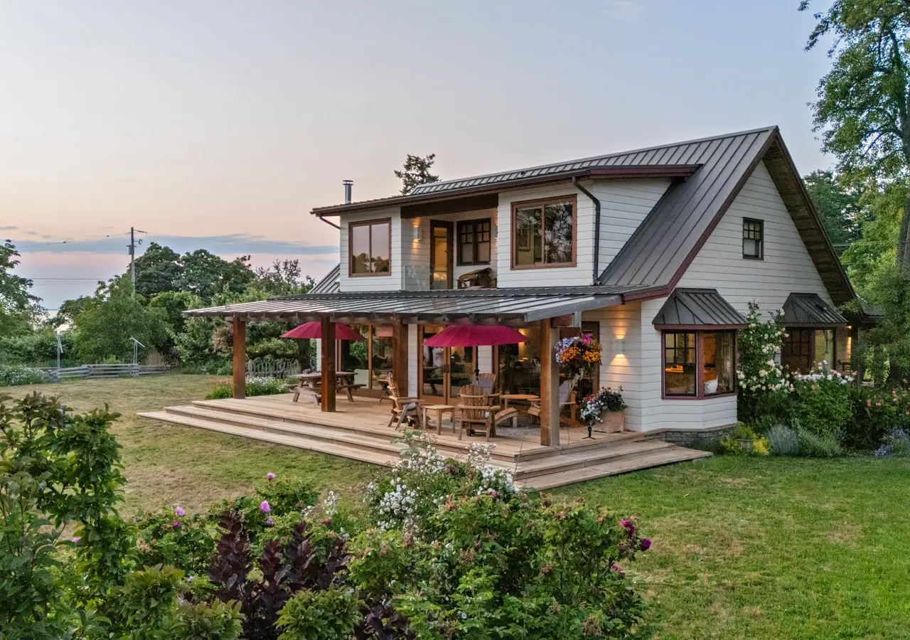 The one and only Orchard House Estate on Hornby Island. With panoramic ocean views, this sprawling 1.73 acre park-like legacy features a luxurious custom home, a cozy cabin/guesthouse and expansive grounds (complete with prolific veggie garden, water features, gazebo, meticulously maintained perennials, and an enviable water storage system/wells). Harvest fruits from an established heirloom orchard (hence the name) and enjoy a glass of wine while wandering down your own private beach access to Phipps Point: the primary sunset viewpoint on Hornby. Peer through old growth Arbutus trees to watch as orcas breech in the Lambert Channel, enjoy resident eagle song, or simply sit and smell the multiple varieties of roses-all while lounging on your porch. The home and grounds of this historic Savoie site have been rigorously and lovingly cultivated with enormous vision over the last three decades; a true masterpiece. Orchard House could be your family's island oasis, and so much more.