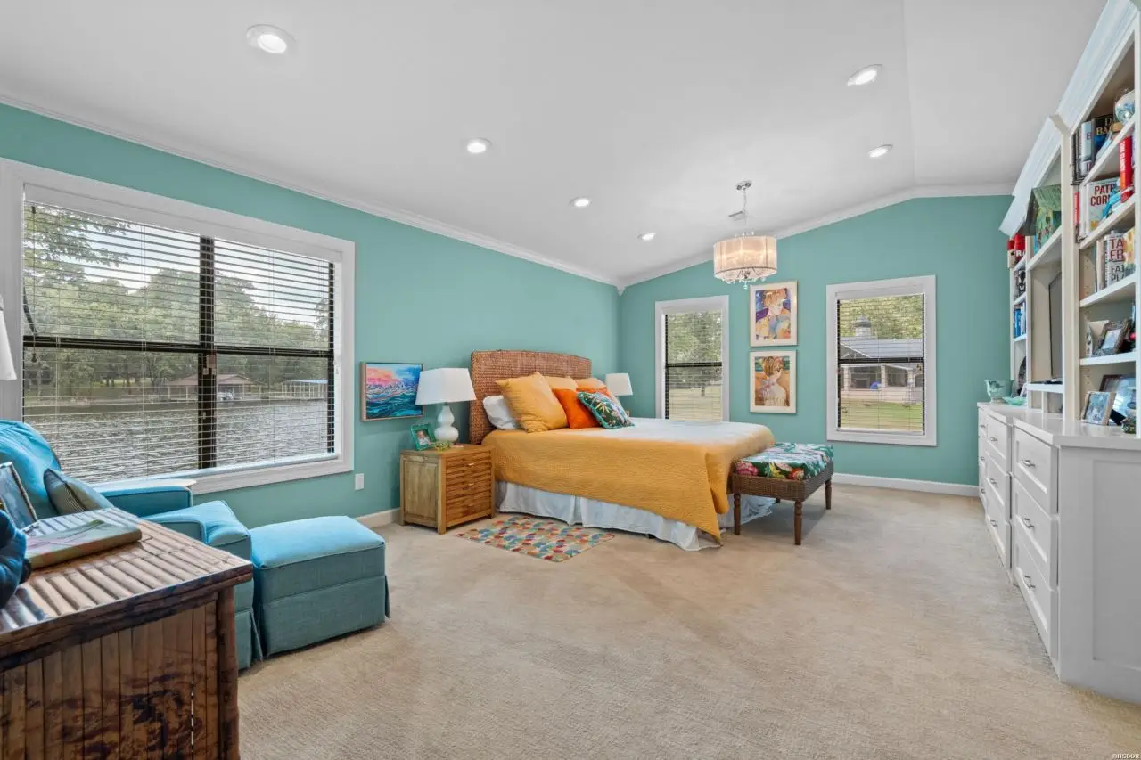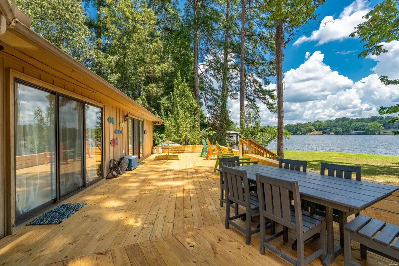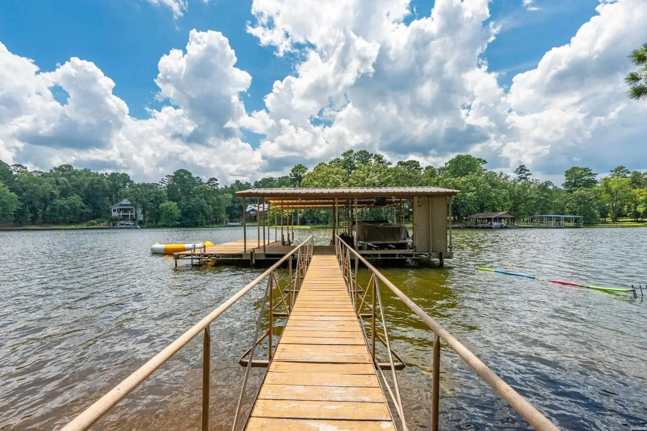 Welcome to your dream lake retreat! This beautifully designed 4-bedroom, 3.5-bathroom lake home offers an open-concept living, kitchen, and dining area, perfect for entertaining or relaxing. As you enter you will immediately be drawn to the lake views! The vaulted ceilings and large living area create a cozy family vibe just waiting for a movie night! This home features a bright and cheerful kitchen designed for both everyday living and entertaining. With vibrant fun finishes, ample counter space, and a gas cooktop, it's the heart of the home - perfect for hosting family and friends. Right off the kitchen you will enjoy the convenience of a wet bar, ideal for serving up refreshments after a day on the water. The spacious walk-in pantry offers plenty of storage, keeping your kitchen organized. In addition to the four spacious bedrooms, the home features two versatile bonus rooms currently used as additional bedrooms?ideal for a home office, exercise room, or extra guests. With dual master suites and two separate living areas on opposite sides of the home, privacy and comfort are thoughtfully considered throughout. The largest master bedroom features an ensuite with WIC, soaking tub, separate walk-in shower and double vanities. Additional conveniences include two laundry areas, making daily routines and guest stays seamless. The home generator will keep everything running smoothly, as well. Enjoy quality time in the game room, or unwind on the large screened-in porch after dinner and listen to the crickets as the sun sets. You can also step outside to a generous deck that spans the backside of the home, offering uninterrupted views of the lake. This property has an impressive lake frontage that spans over 350 feet. The covered double dock with lift and swim dock ensures you're ready for endless lake adventures. Cozy up in the fall for bonfires on the custom built stone patio with firepit. Whether you're seeking a full-time residence or a weekend escape, this home delivers comfort, versatility, and breathtaking views at every turn.