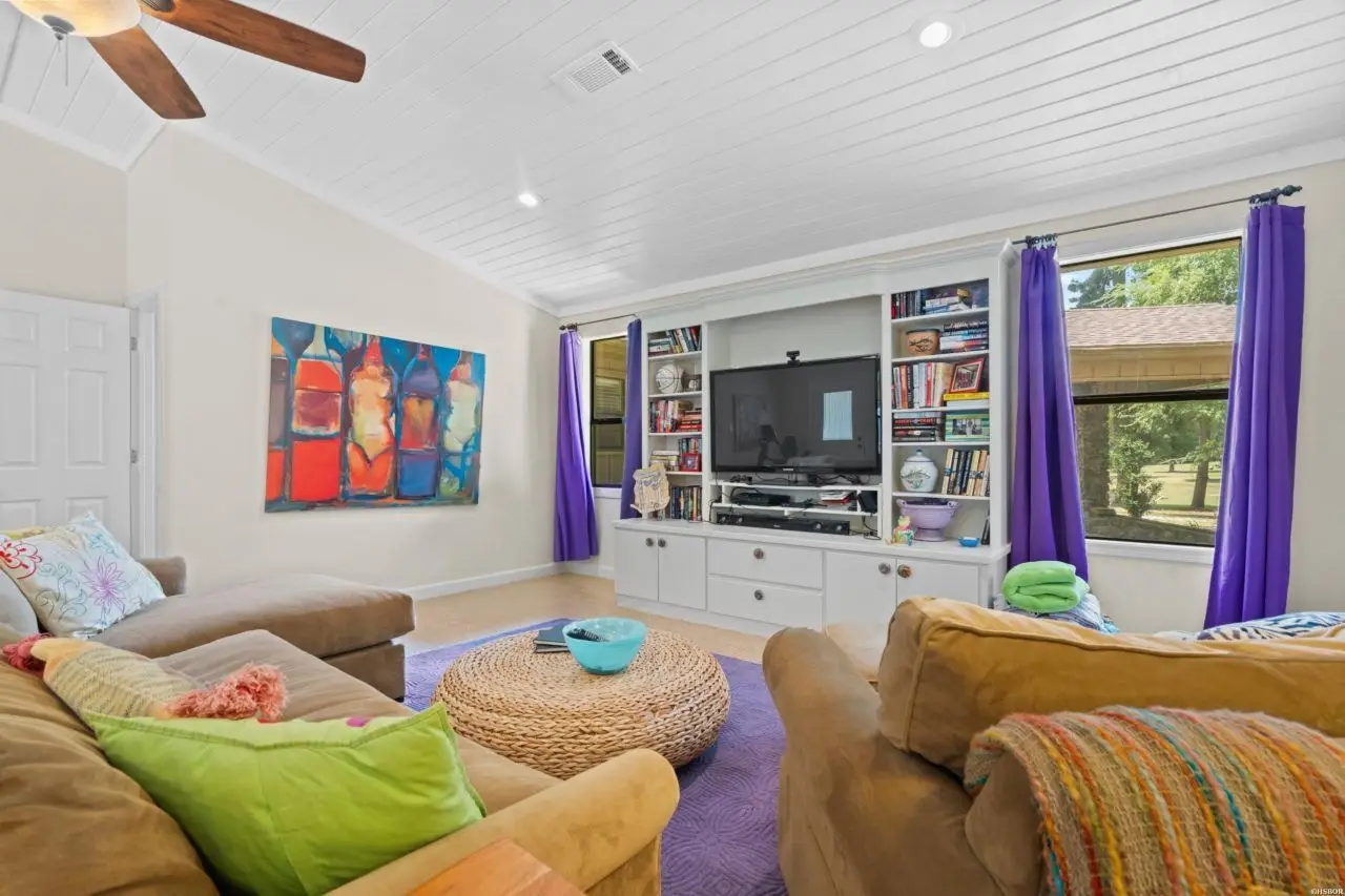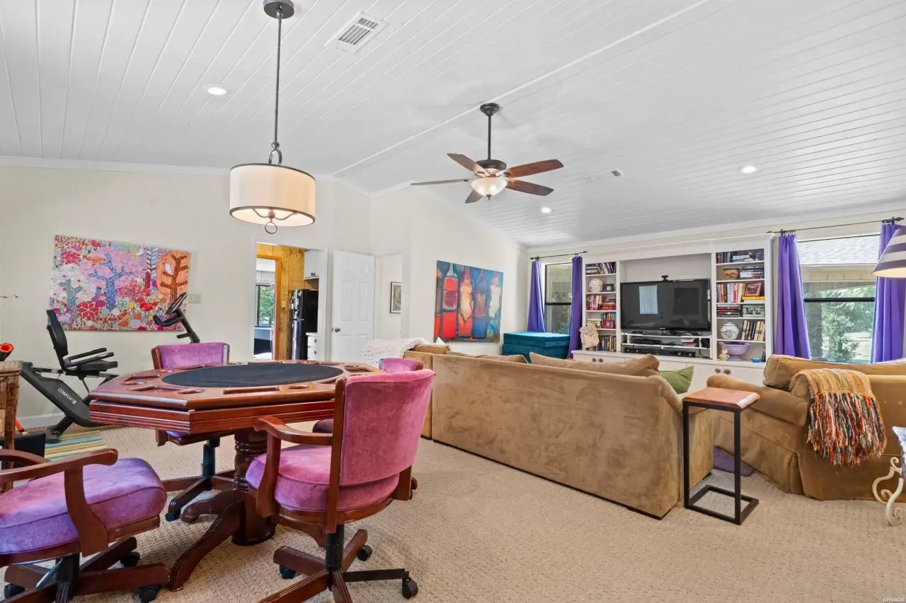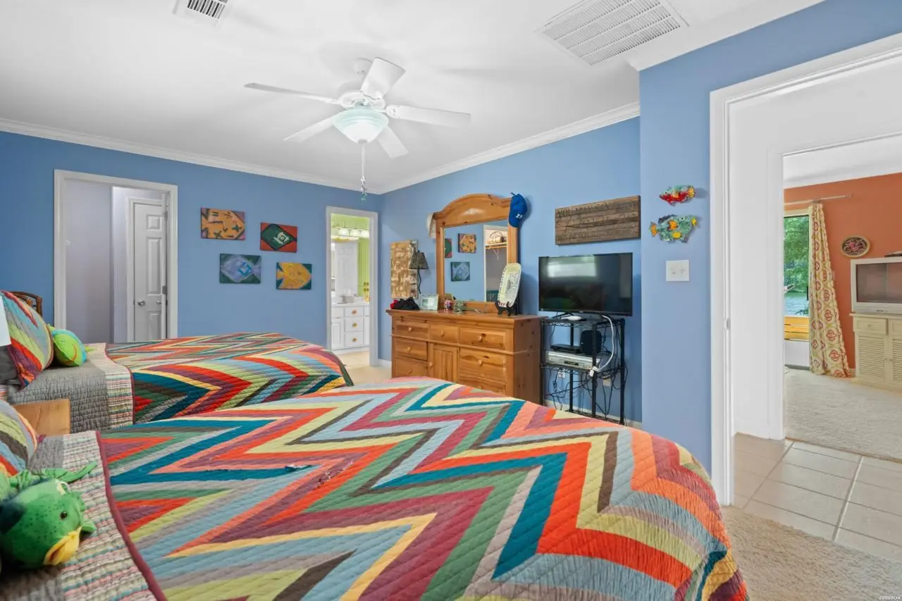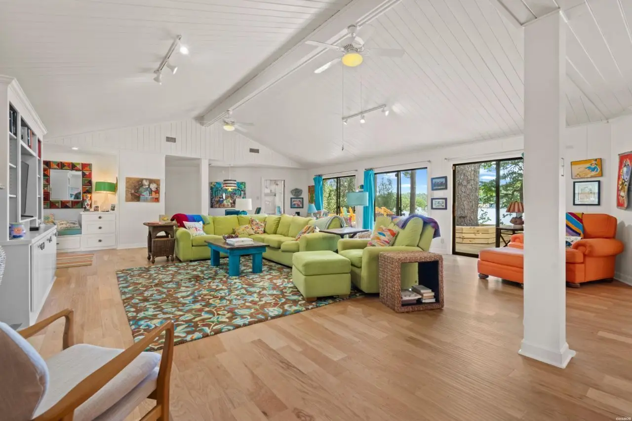 Welcome to your dream lake retreat! This beautifully designed 4-bedroom, 3.5-bathroom lake home offers an open-concept living, kitchen, and dining area, perfect for entertaining or relaxing. As you enter you will immediately be drawn to the lake views! The vaulted ceilings and large living area create a cozy family vibe just waiting for a movie night! This home features a bright and cheerful kitchen designed for both everyday living and entertaining. With vibrant fun finishes, ample counter space, and a gas cooktop, it's the heart of the home - perfect for hosting family and friends. Right off the kitchen you will enjoy the convenience of a wet bar, ideal for serving up refreshments after a day on the water. The spacious walk-in pantry offers plenty of storage, keeping your kitchen organized. In addition to the four spacious bedrooms, the home features two versatile bonus rooms currently used as additional bedrooms?ideal for a home office, exercise room, or extra guests. With dual master suites and two separate living areas on opposite sides of the home, privacy and comfort are thoughtfully considered throughout. The largest master bedroom features an ensuite with WIC, soaking tub, separate walk-in shower and double vanities. Additional conveniences include two laundry areas, making daily routines and guest stays seamless. The home generator will keep everything running smoothly, as well. Enjoy quality time in the game room, or unwind on the large screened-in porch after dinner and listen to the crickets as the sun sets. You can also step outside to a generous deck that spans the backside of the home, offering uninterrupted views of the lake. This property has an impressive lake frontage that spans over 350 feet. The covered double dock with lift and swim dock ensures you're ready for endless lake adventures. Cozy up in the fall for bonfires on the custom built stone patio with firepit. Whether you're seeking a full-time residence or a weekend escape, this home delivers comfort, versatility, and breathtaking views at every turn.