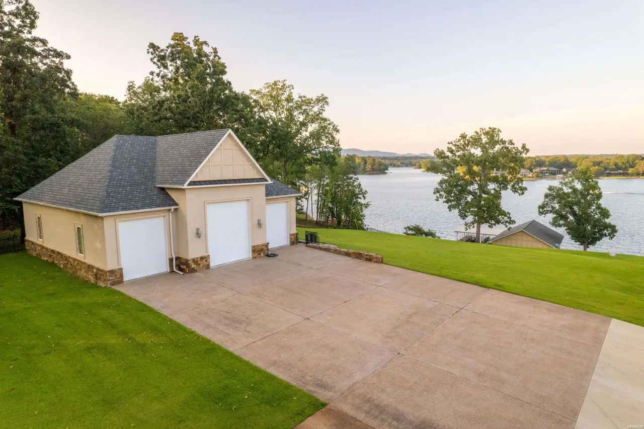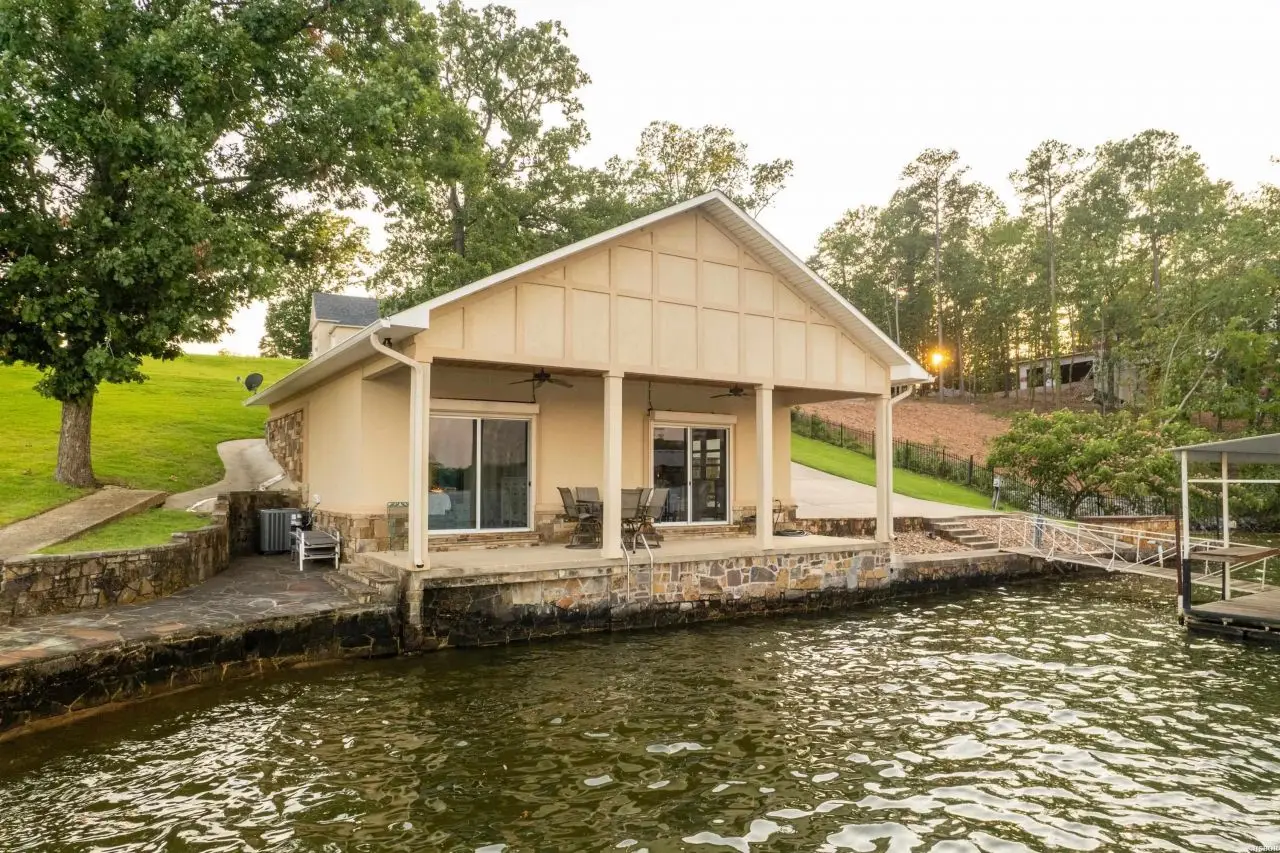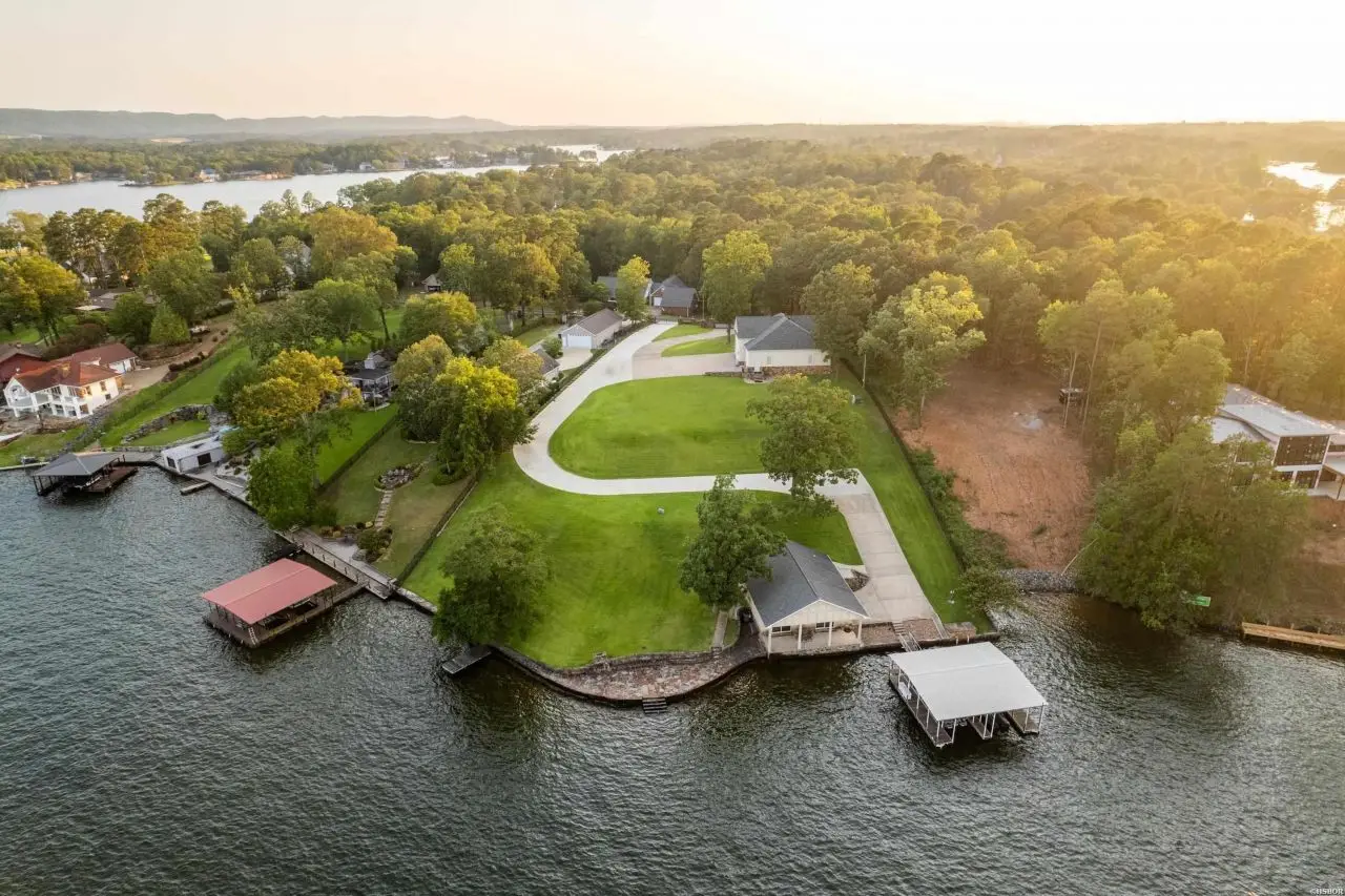Introducing a one-of-a-kind waterfront estate on a pristine lake lot, boasting over 250 feet of stunning shoreline. This unique property is perfect for those seeking a luxurious lakeside retreat. The estate features a spacious 2,400 square foot garage, designed to accommodate your RV and boat storage needs, complete with a full kitchen and one and a half baths. Nestled at the water's edge, you'll find a charming 1,296 square foot lake cottage, offering a cozy and inviting space to unwind and enjoy the serene surroundings. The property also includes a two-slip boat dock with lifts, ensuring year-round access to the lake's crystal-clear waters. The entire estate is fenced and gated for your privacy and security, with driveways already installed for your convenience. This exceptional waterfront property offers an unparalleled combination of luxury, comfort, and natural beauty, making it the perfect getaway for you and your loved ones.