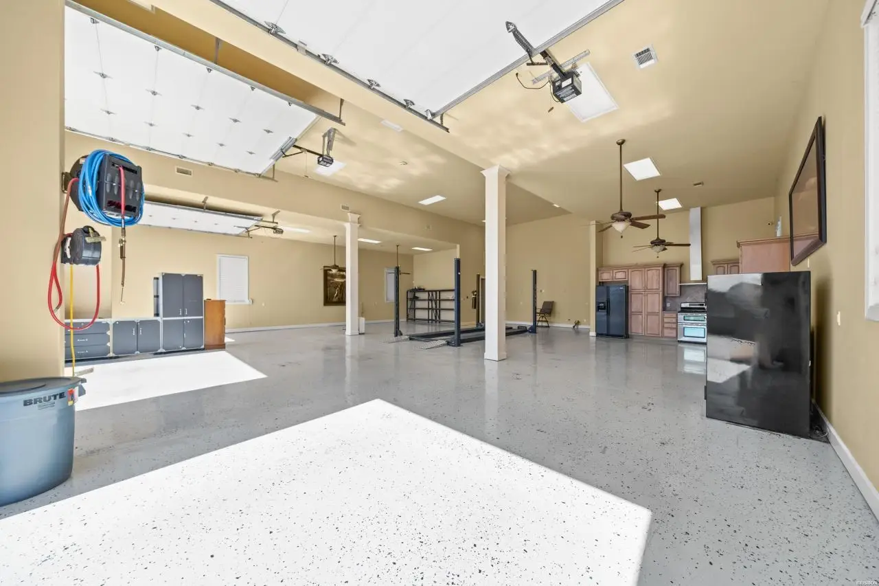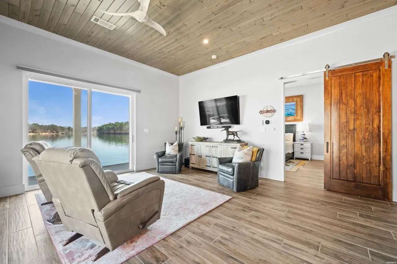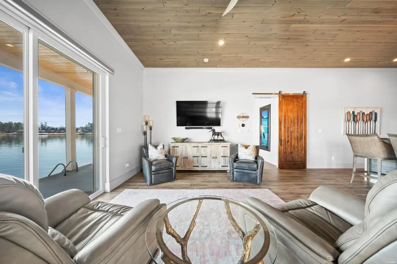 Introducing a one-of-a-kind waterfront estate on a pristine lake lot, boasting over 250 feet of stunning shoreline. This unique property is perfect for those seeking a luxurious lakeside retreat. The estate features a spacious 2,400 square foot garage, designed to accommodate your RV and boat storage needs, complete with a full kitchen and one and a half baths. Nestled at the water's edge, you'll find a charming 1,296 square foot lake cottage, offering a cozy and inviting space to unwind and enjoy the serene surroundings. The property also includes a two-slip boat dock with lifts, ensuring year-round access to the lake's crystal-clear waters. The entire estate is fenced and gated for your privacy and security, with driveways already installed for your convenience. This exceptional waterfront property offers an unparalleled combination of luxury, comfort, and natural beauty, making it the perfect getaway for you and your loved ones.