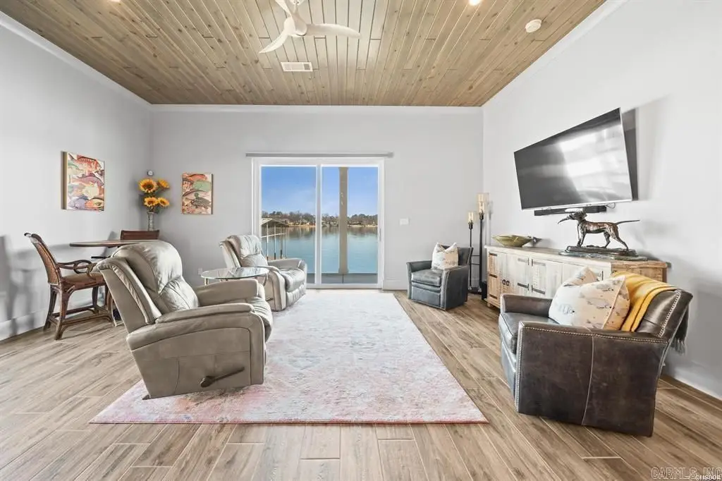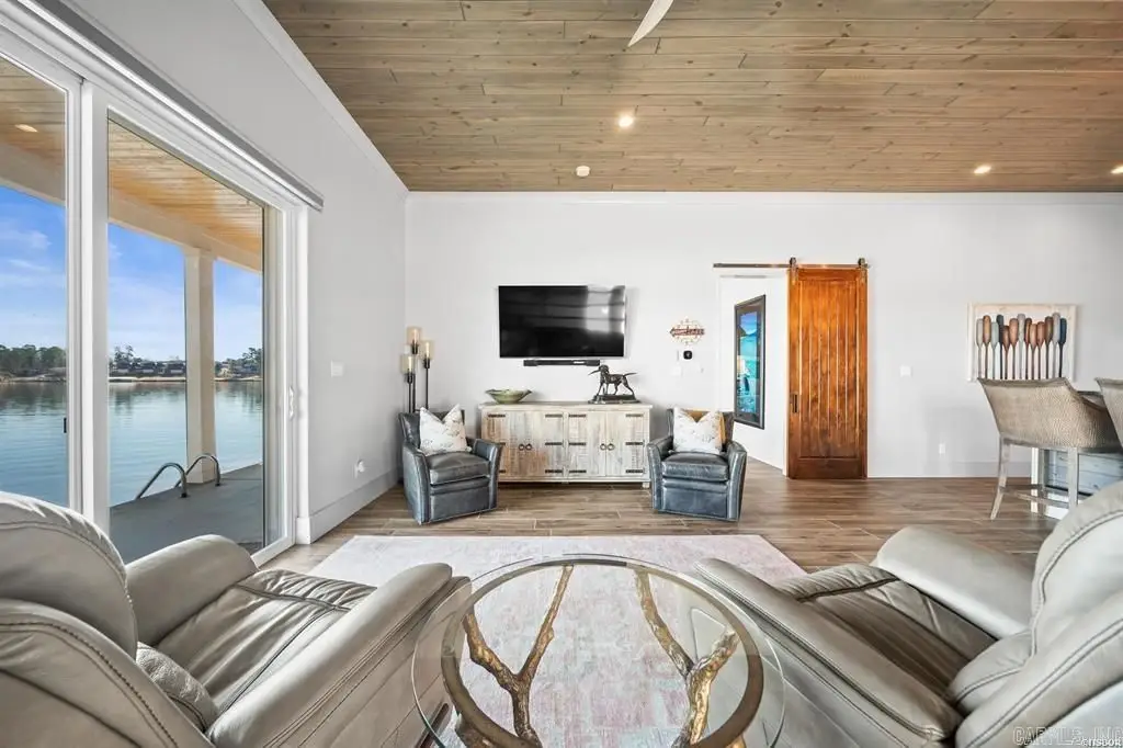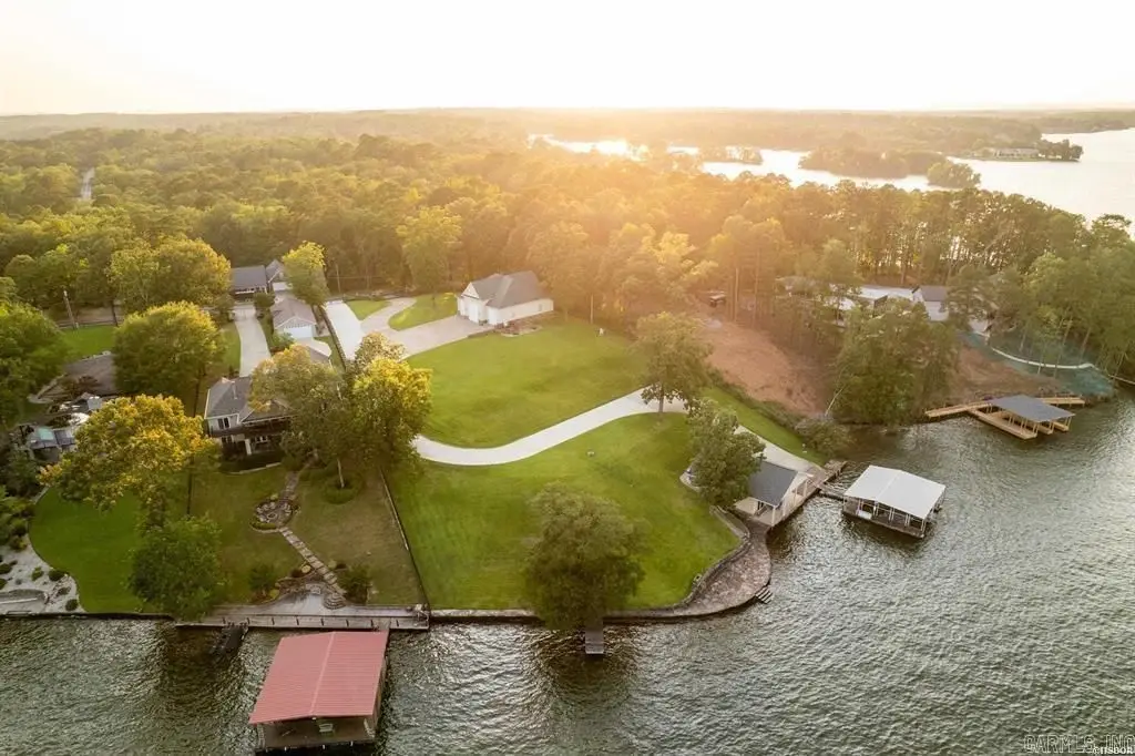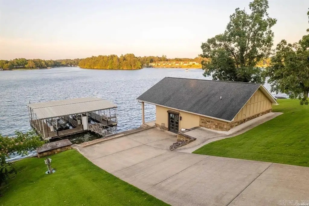 Introducing a one-of-a-kind waterfront estate on a pristine lake lot, boasting over 250 feet of stunning shoreline. This unique property is perfect for those seeking a luxurious lakeside retreat. The estate features a spacious 2,400 square foot garage, designed to accommodate your RV and boat storage needs, complete with a full kitchen and one and a half baths. Nestled at the water's edge, you'll find a charming 1,296 square foot lake cottage, offering a cozy and inviting space to unwind and enjoy the serene surroundings. The property also includes a two-slip boat dock with lifts, ensuring year-round access to the lake's crystal-clear waters. The entire estate is fenced and gated for your privacy and security, with driveways already installed for your convenience. This exceptional waterfront property offers an unparalleled combination of luxury, comfort, and natural beauty, making it the perfect getaway for you and your loved ones.