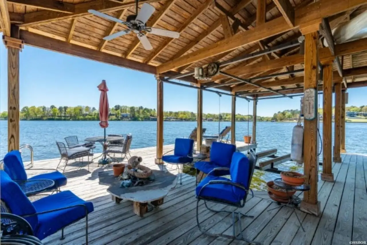 THIS ELEGANT HOME PROVIDES THE ULTIMATE IN LAKESIDE LIVING! The home is located on an exceptional manicured level lot with 260 feet of frontage on beautiful Lake Hamilton. Upon entering the front door, you are greeted with an open living concept and exceptional views of Lake Hamilton’s main channel. There is excellent craftsmanship throughout including the elegant staircase, custom cabinets, granite countertops, crown molding, and attention to detail in every area. There are five bedrooms, five full plus three half baths. Hardwood floors in the living room, carpet in all the bedrooms. Sitting room/library and separate dining room. Upscale kitchen is completely customized and provides every amenity a chef could need. Guests can relax in the hearth room or out in the screened patio area and enjoy the breeze and views while meals are prepared inside or on the grill. The Master Suite is luxurious! It features TWO separate master/mistress bathrooms, each with its own large walk-in closet, unique shower design, and one with a free-standing jetted tub. The bedroom area itself is large with king bed and sitting area, a mini kitchenette/wet bar, and private patio access. Also located on the main floor is a private guest bedroom with jetted bath; an exercise/bonus room, and an office area/utility room. For convenience, there are laundry rooms on each level. This home has its own elevator! On the second floor you will find two king size guest bedrooms that share a Jack-n-Jill bathroom and a third bedroom with a private bathroom and walk-in closet. A fantastic game/media room with poker table, pool table, large screen TV, half bath and kitchenette/bar area , two private outdoor balconies and an additional Juliet balcony overlooking the living area downstairs. Out front is parking for 2-3 guest cars, driveway to left with private electric gate, side-entry three-car garage with tool/workroom, and double boat dock with automatic lifts. PLEASE SCHEDULE A PRIVATE SHOWING TO VIEW THIS AMAZING HOME! Words cannot describe the luxury and attention to detail put into this home. Whether you are hosting a dinner party, relaxing or having a game/movie night with friends after a day on the lake this home provides every comfort. This unique home is being offered fully furnished! -10 minutes to Oaklawn Park and Casino -15 minutes to Downtown Hot Springs Convenient to restaurants, shopping, health and fitness facilities, medical care End of the road in the very private ARD Point Neighborhood with like properties and quiet neighbors.