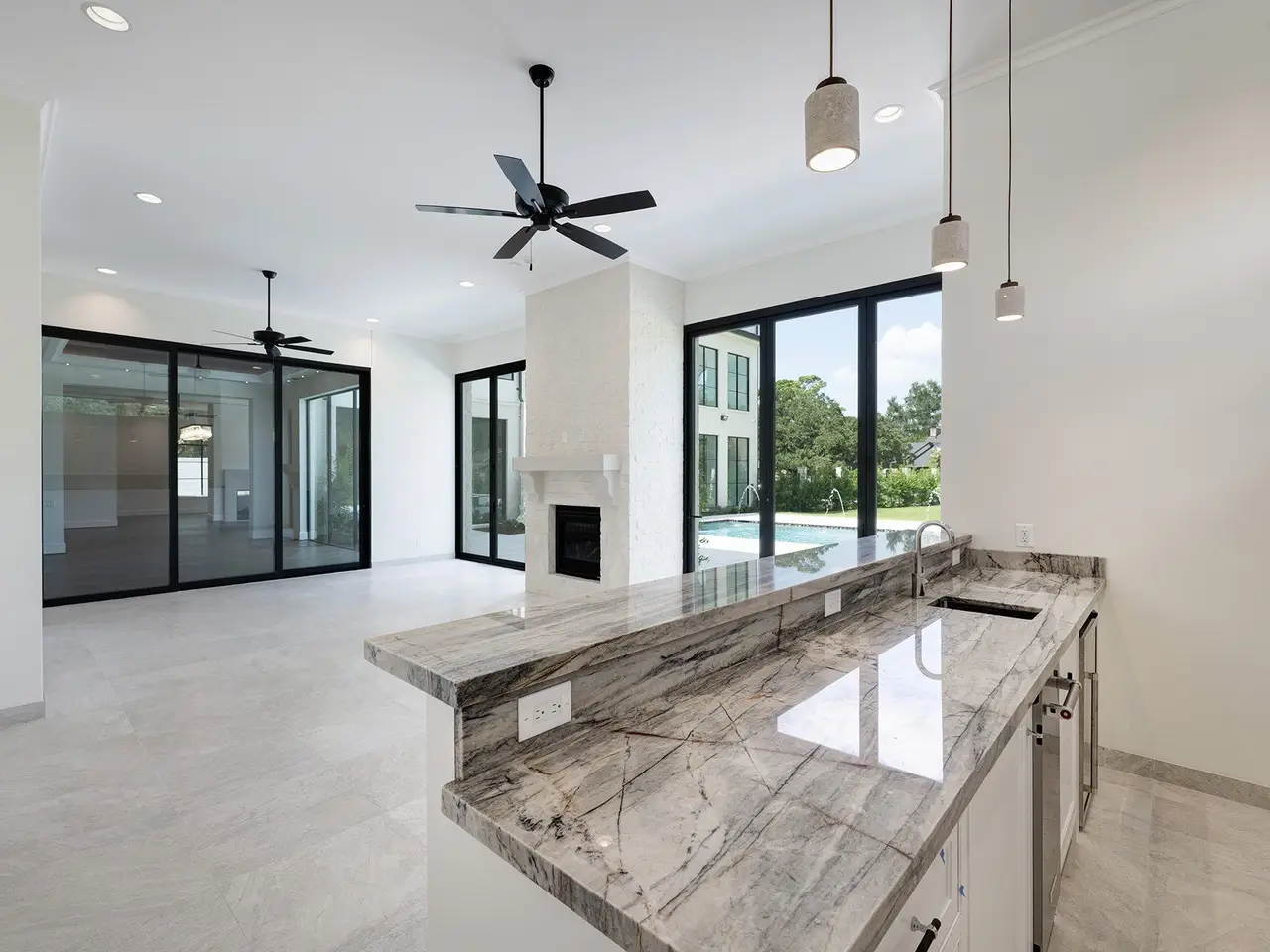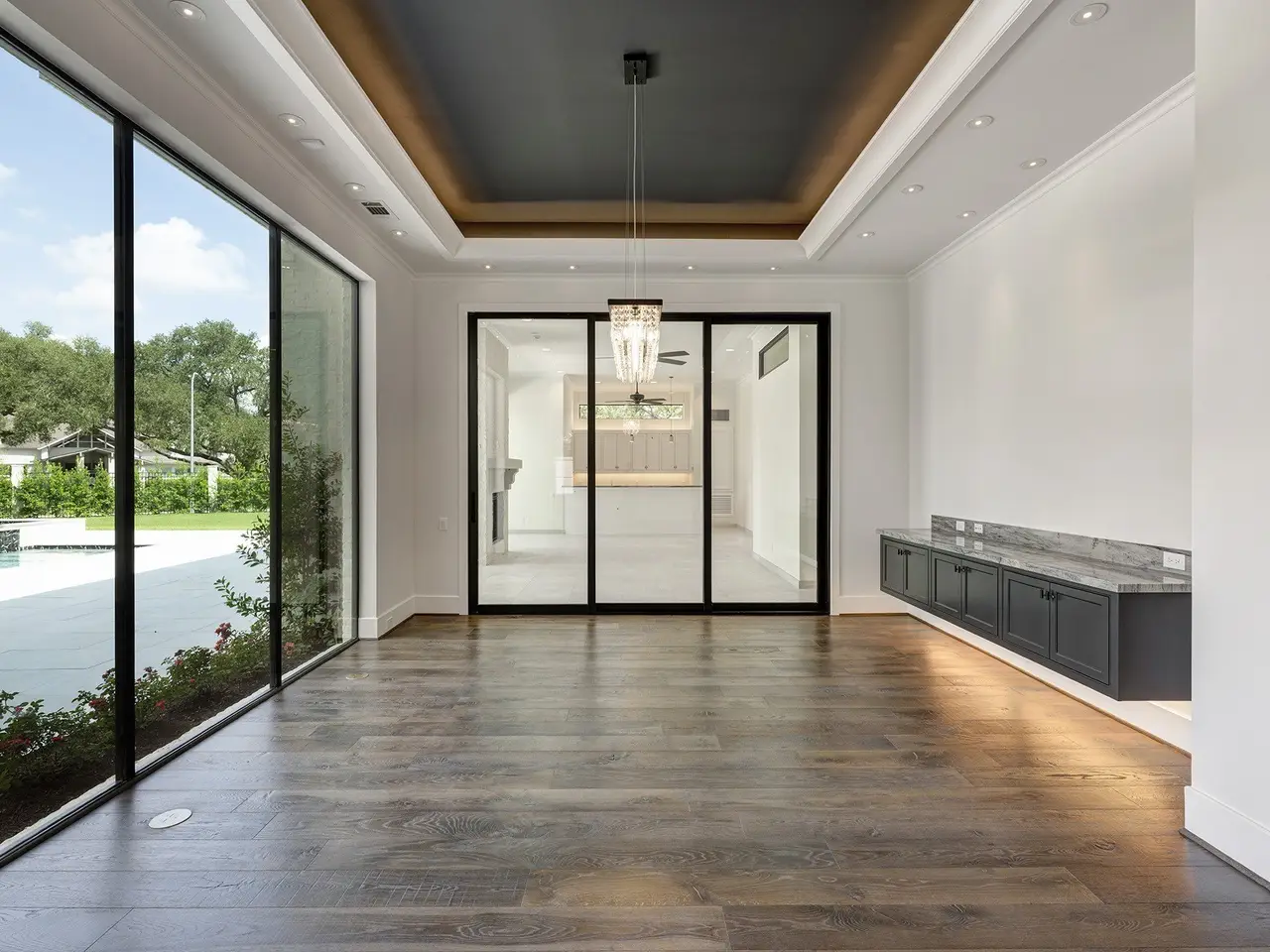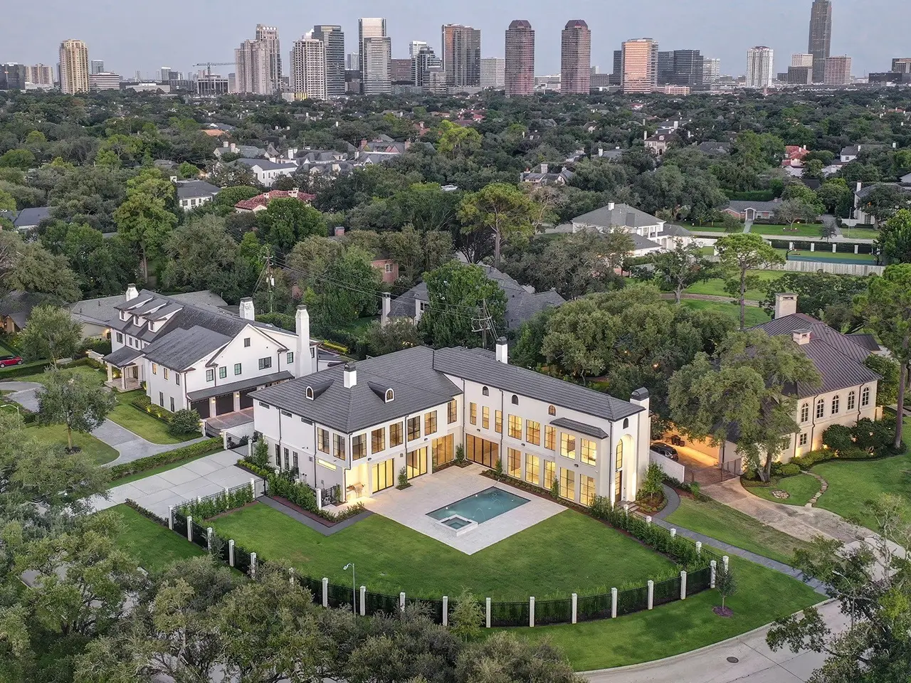 New construction by Stacey Fine Homes is underway on a 27,000+ SF (per builder) corner lot in Tanglewood! This elegant, custom 11,300+ SF (per Builder) home will include 6 bedrooms, 7 full and 3 half baths, indoor/outdoor living and an open floor plan that is an entertainer’s dream! A spacious living room opens into a sitting area equipped with a bar and a wine room on either end. The formal dining room is attached to the butler’s pantry which leads you into the chef’s kitchen. The kitchen will include KitchenAid and Thermador appliances, a large kitchen island with breakfast bar and a breakfast nook for family dining. The expansive indoor/outdoor living area is equipped with a wet bar, barbecue area, a fireplace, and an approximate 17' x 32' pool. Other amenities include an oversized 4-car garage, a whole house generator, an elevator, 2 staircases, and 4 gas log fireplaces. Completion expected July 2025. All per Seller.