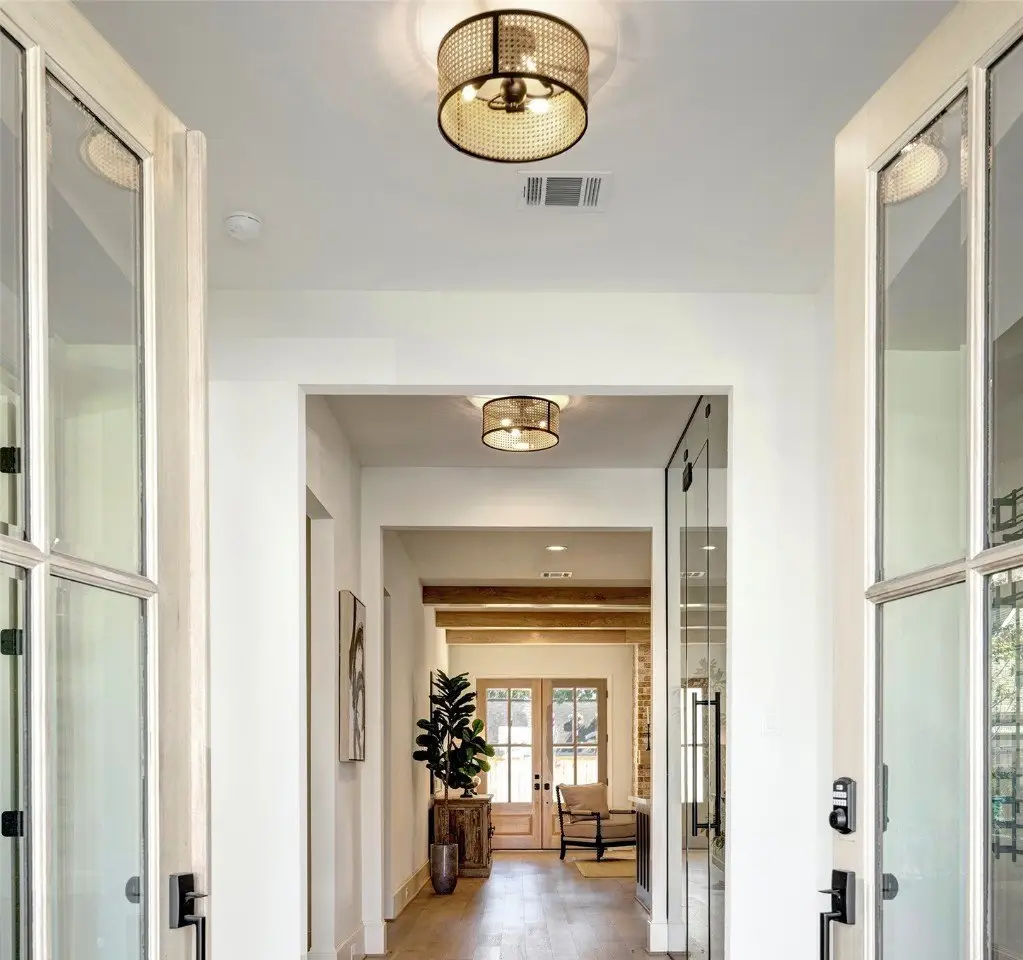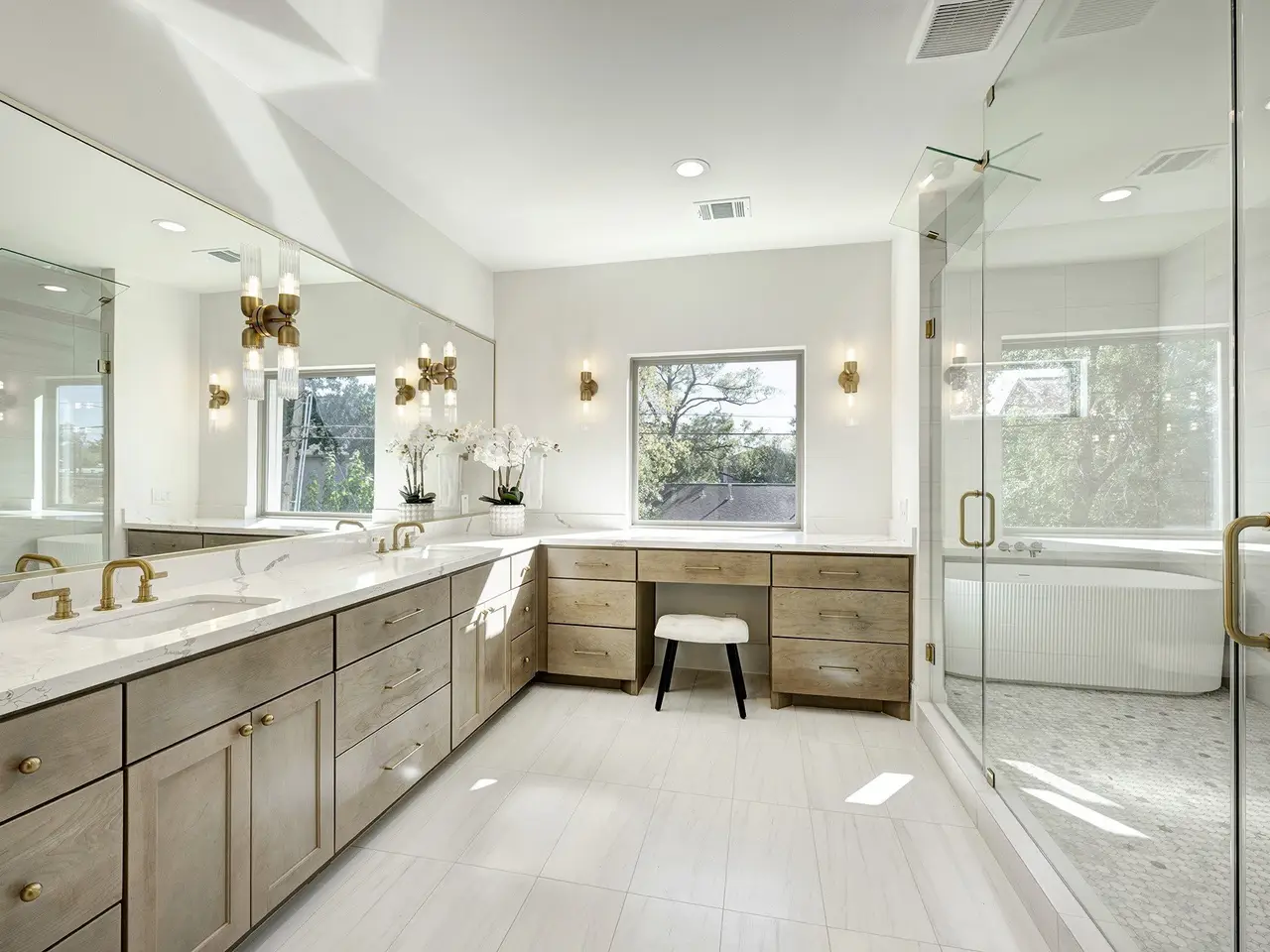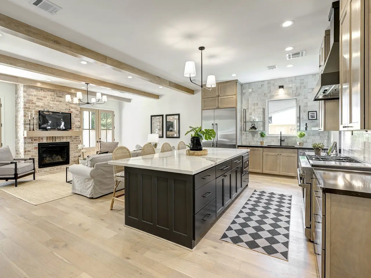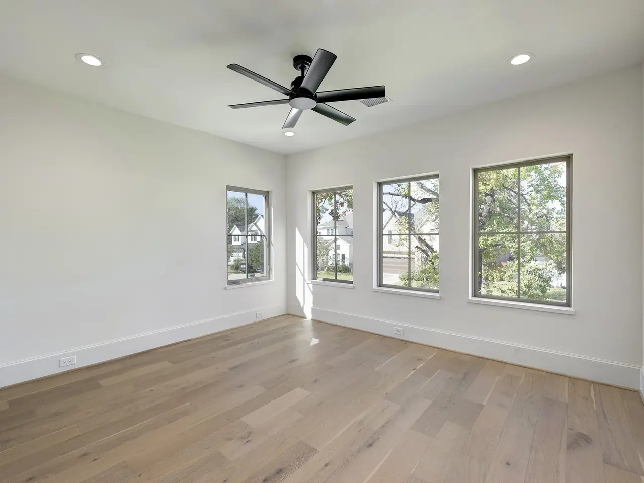 Recent construction in Oak Forest by prestigious Rob Ryan Custom Homes (2024 HCAD). Gorgeous 4-5 bedroom, 4 bathroom home with generous, open floor plan and large, corner lot. Beautiful white oak wood floors, natural light filled rooms and elegant designer finishes throughout. Flexible floor plan with 1st floor office or 5th bedroom guest suite. Chef’s kitchen complete with 48” Fisher & Paykel gas range, quartz countertops & custom cabinetry. Second floor offers a second living space or family room and 4 bedrooms including the luxurious primary suite with dream closet. Giant, fully fenced backyard with room for a pool and gated private driveway. All info per Seller.