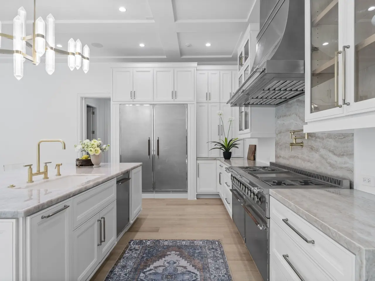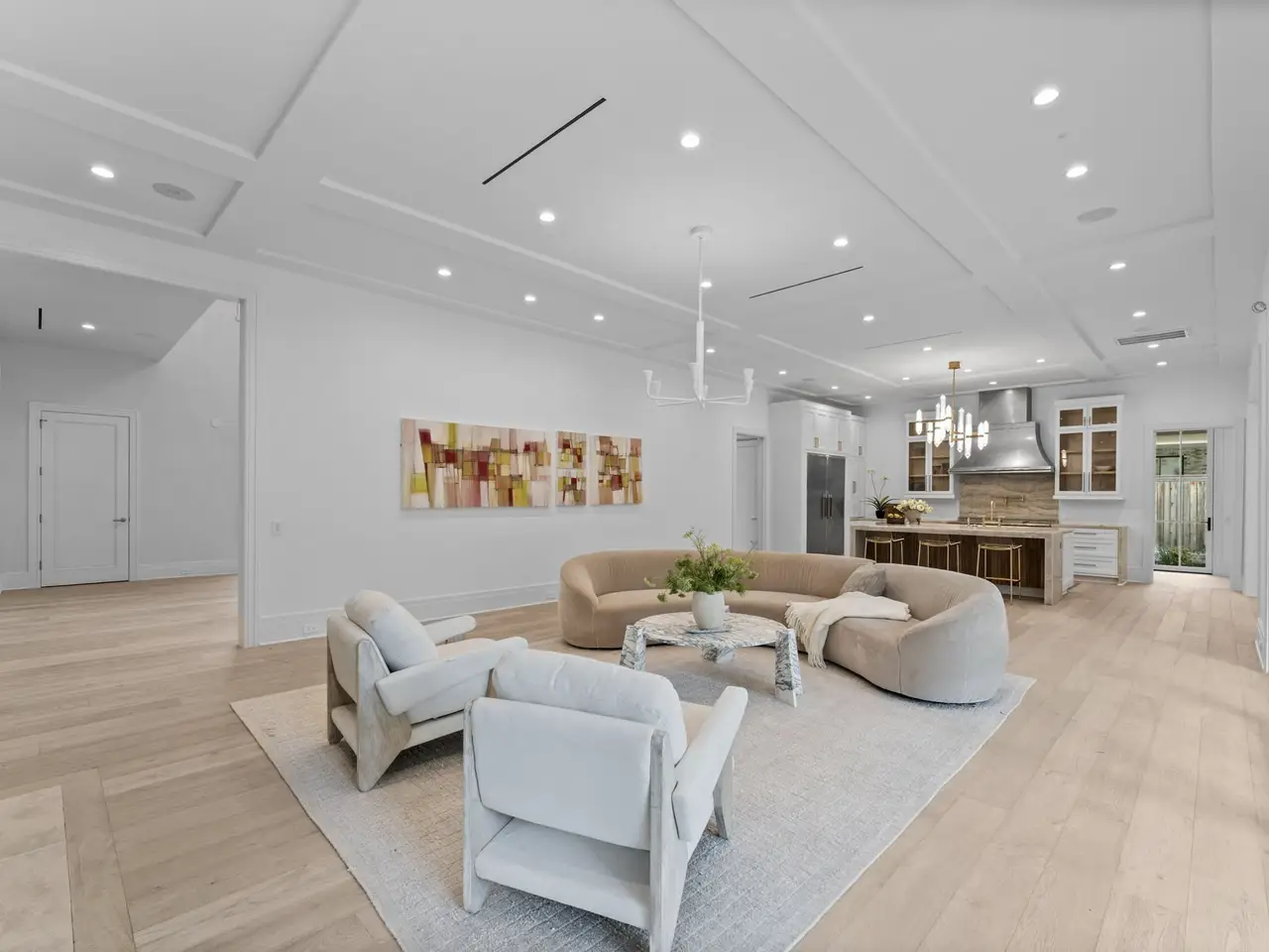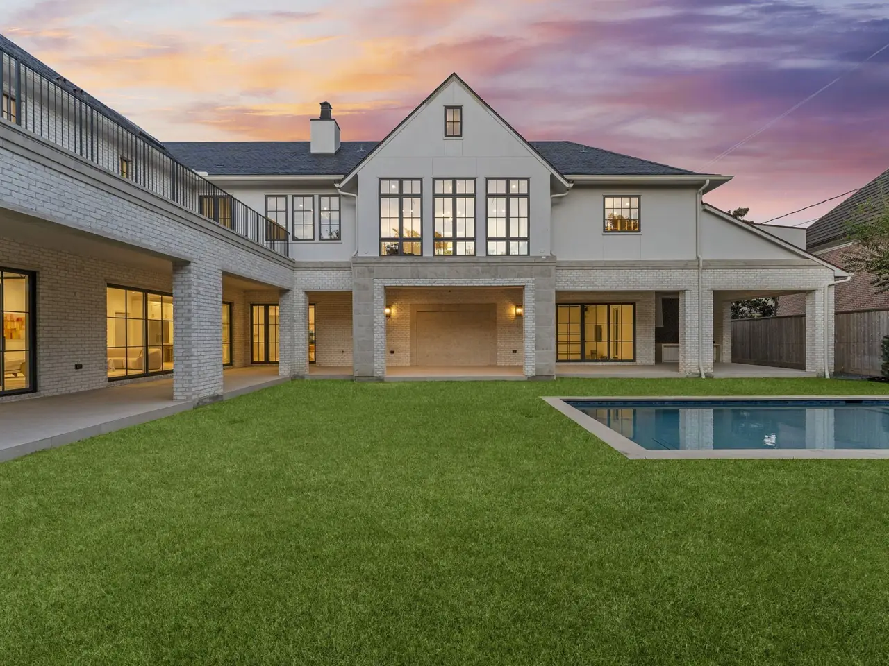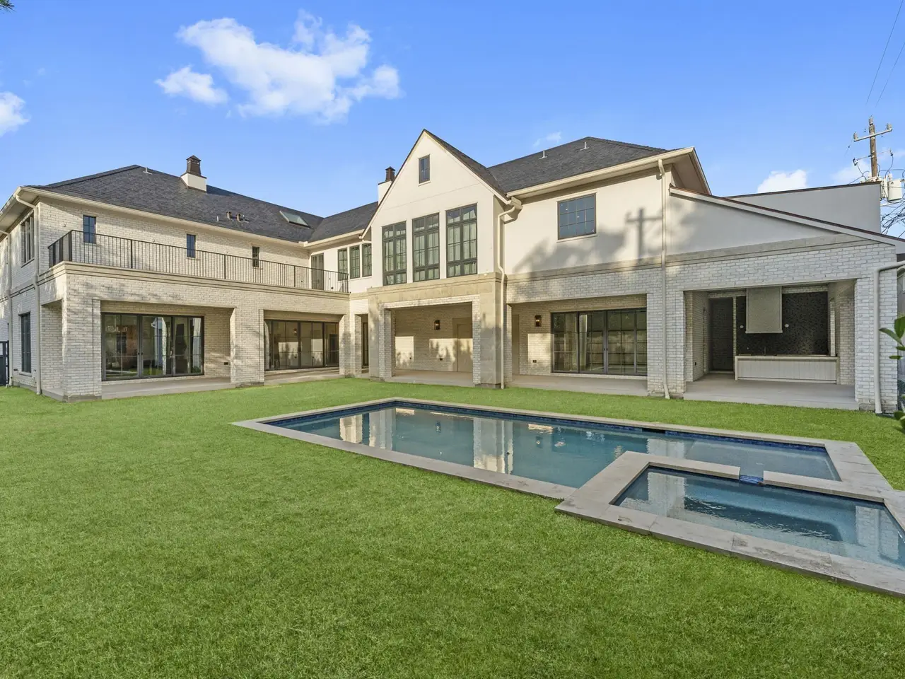 Now Nearing Completion! Thoughtfully designed by Mark Atkins of Masa Studios and JD Bartell and built by Layne Kelly Homes. Beautiful entry with front stair to second floor. Study with access to bar and wine room. Island kitchen with adjacent breakfast room opens to Great Room with fireplace and views and access to covered patio, yard and pool. Catering kitchen/butler’s pantry with access to formal dining. Stunning second level primary bedroom suite with built out closets, spacious bath, bedroom with views, sitting room and access to master terrace overlooking pool and grounds. Four additional bedrooms with private baths and a game room on level two. Stairs and elevator to third floor with natural light has living area, a bedroom and bath, media room, fitness and home office space. Circular front drive with gated driveway to four car garage. Back yard with summer kitchen, pool bath, pool and spa. Awesome River Oaks location, quality and design.