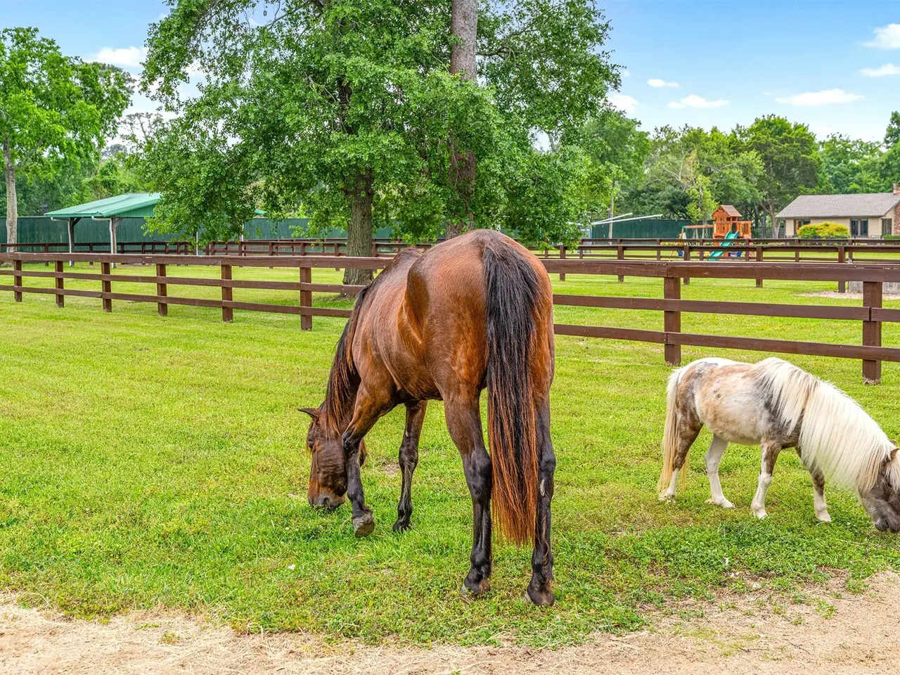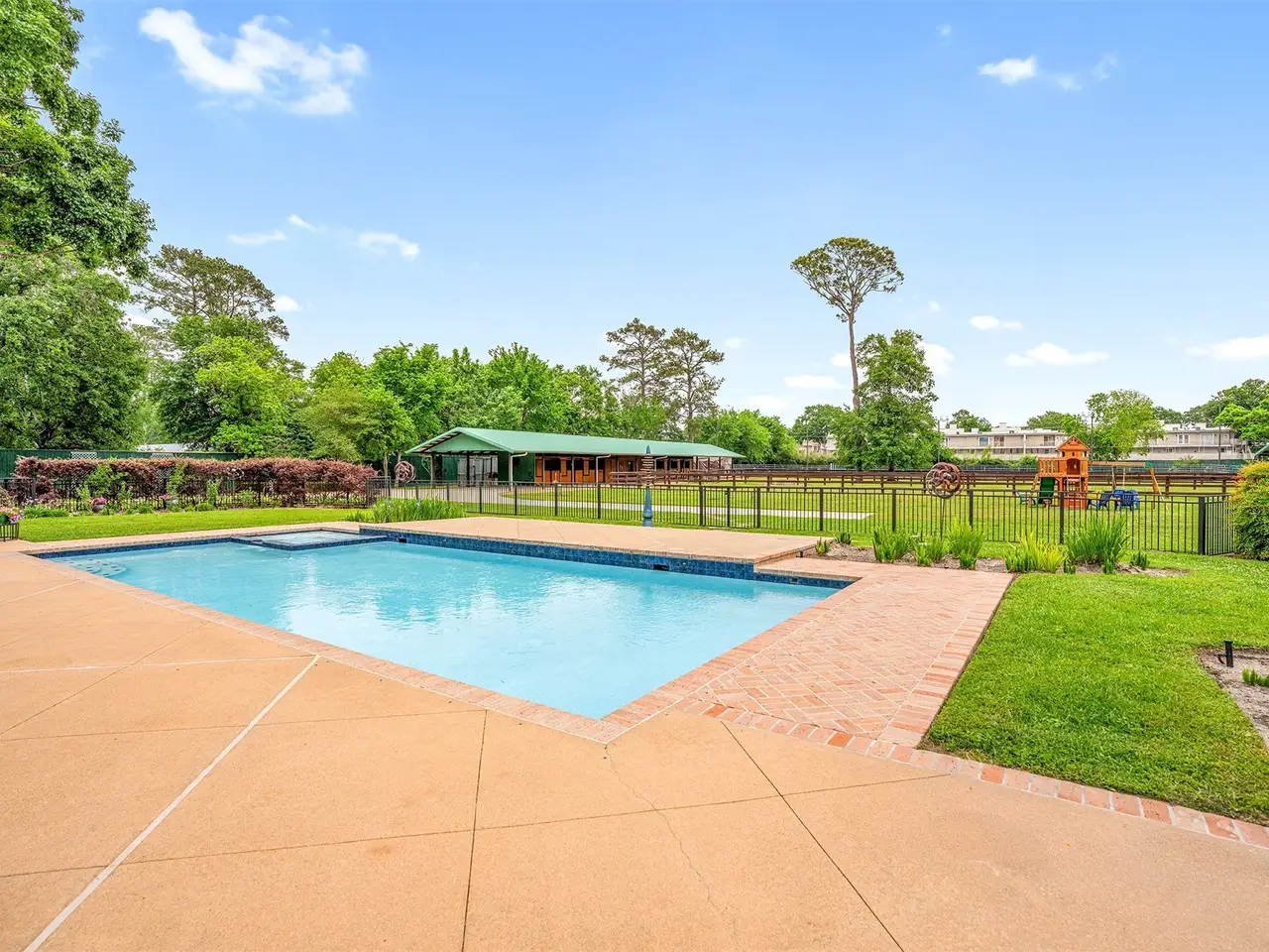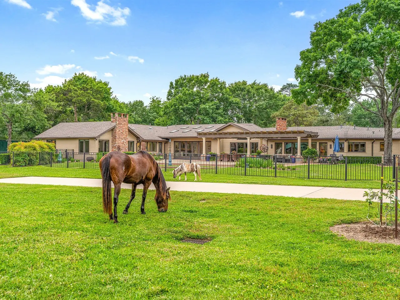 Rare equestrian estate inside Beltway 8—offering nearly 4 acres of luxury living and fully equipped horse facilities just minutes from the city. This 4-bed, 4.5-bath contemporary ranch (plus guest house & 3-car garage) was fully renovated in 2014 with recent upgrades including a new roof, HVAC, Control4 smart home system, and full indoor/outdoor sound. A long private drive leads to open-concept interiors with vaulted ceilings and sunlit living spaces. Outdoors, enjoy a sparkling pool,concept interiors with vaulted ceilings and sunlit living spaces. Outdoors, enjoy a sparkling pool,alfresco dining, and curated gardens. For equestrians: a 6-stall professional barn, tack & feedrooms, fenced pastures, and a private riding arena. A rare blend of land, luxury, and horse-ready amenities in a prime urban location. All info per seller