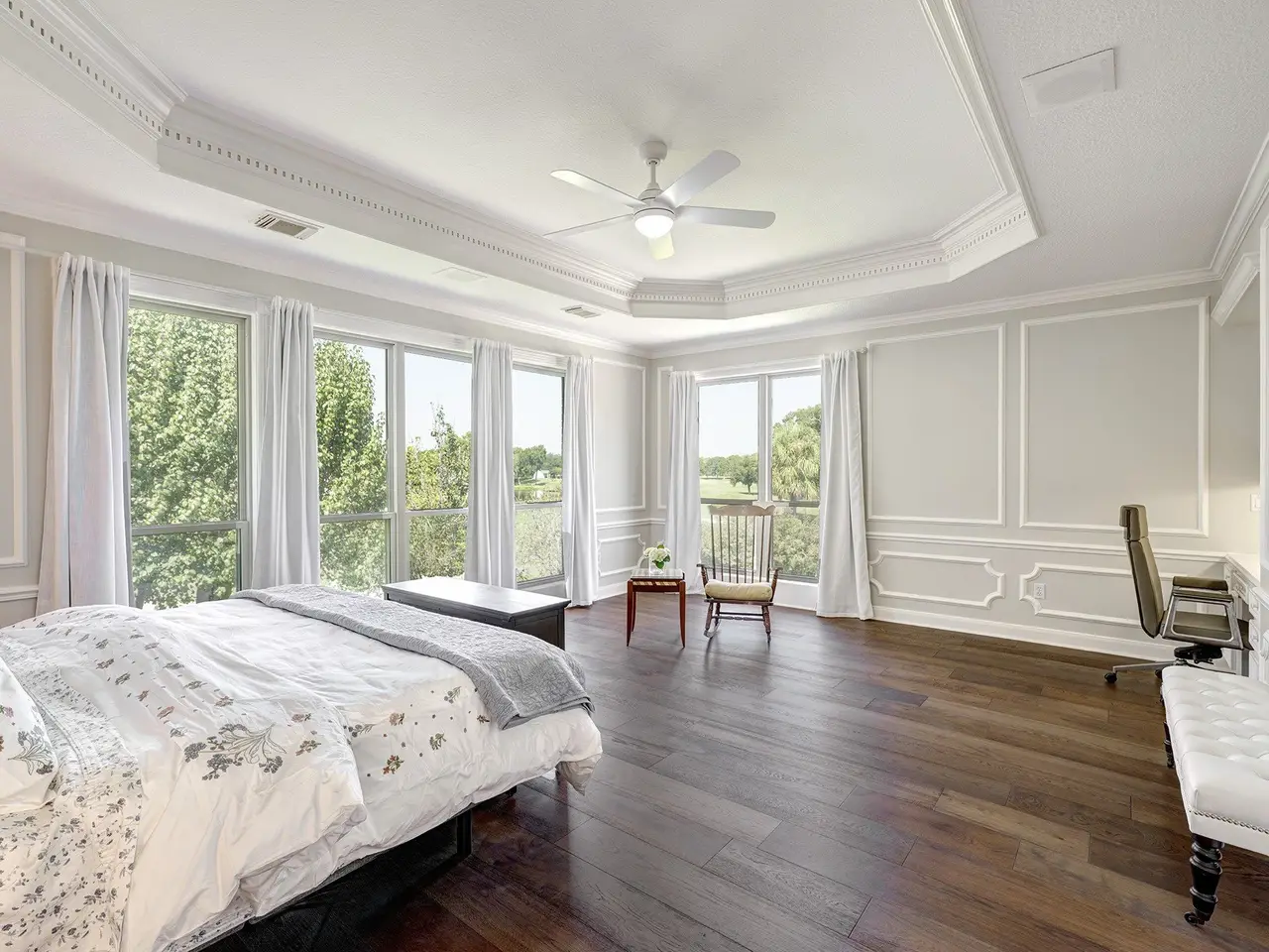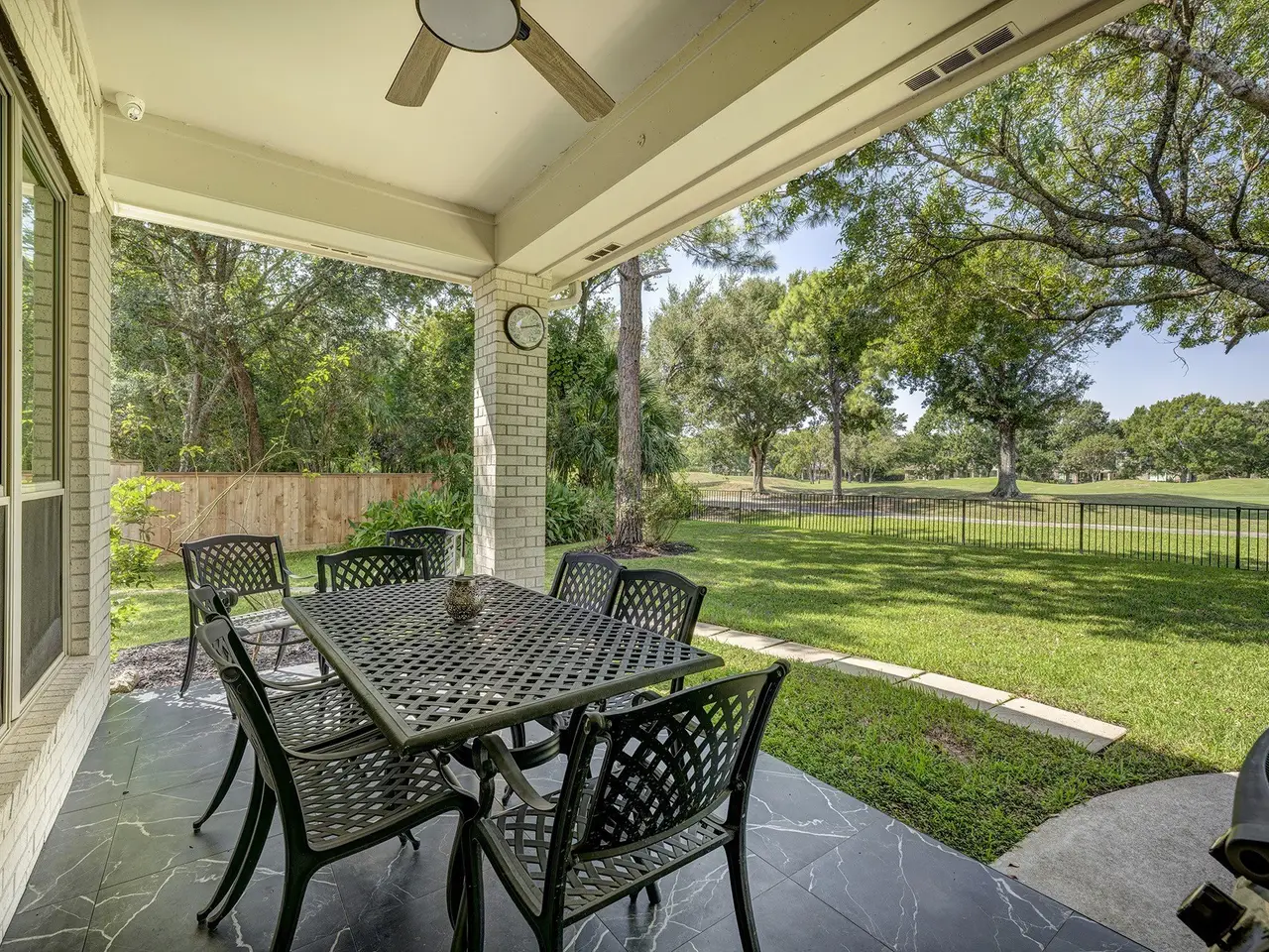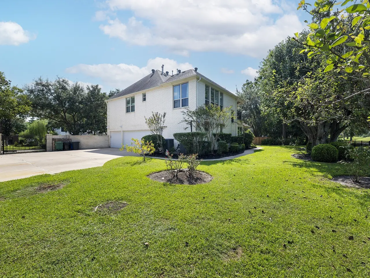 Enjoy gorgeous views of Bay Oaks Golf Course’s 5th hole from this beautifully renovated estate, completed in 2024–2025 with new floors, windows, and updated kitchen and baths. A two-story foyer with winding staircase opens to an office with cathedral ceilings and built-ins, while elegant dentil moldings and fine woodwork add timeless detail. Features include a formal living with fireplace, formal dining with china/crystal storage, oversized den with wet bar overlooking the golf course, and an island kitchen with an ideal layout for entertaining. Upstairs offers a luxurious primary suite with jetted tub and walk-in shower, a gameroom with wet bar and balcony, a second primary suite, and three oversized guest rooms with en-suite or Jack & Jill baths. Outside, a gated motor court leads to a three-car air-conditioned garage with workshop and a pool-sized yard, all within close proximity to the country club, pool, and tennis courts. All info per Seller.