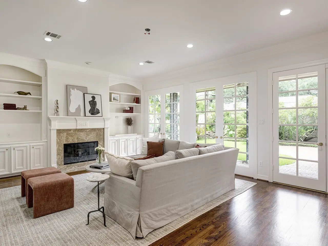 Floor-to-ceiling windows in family room