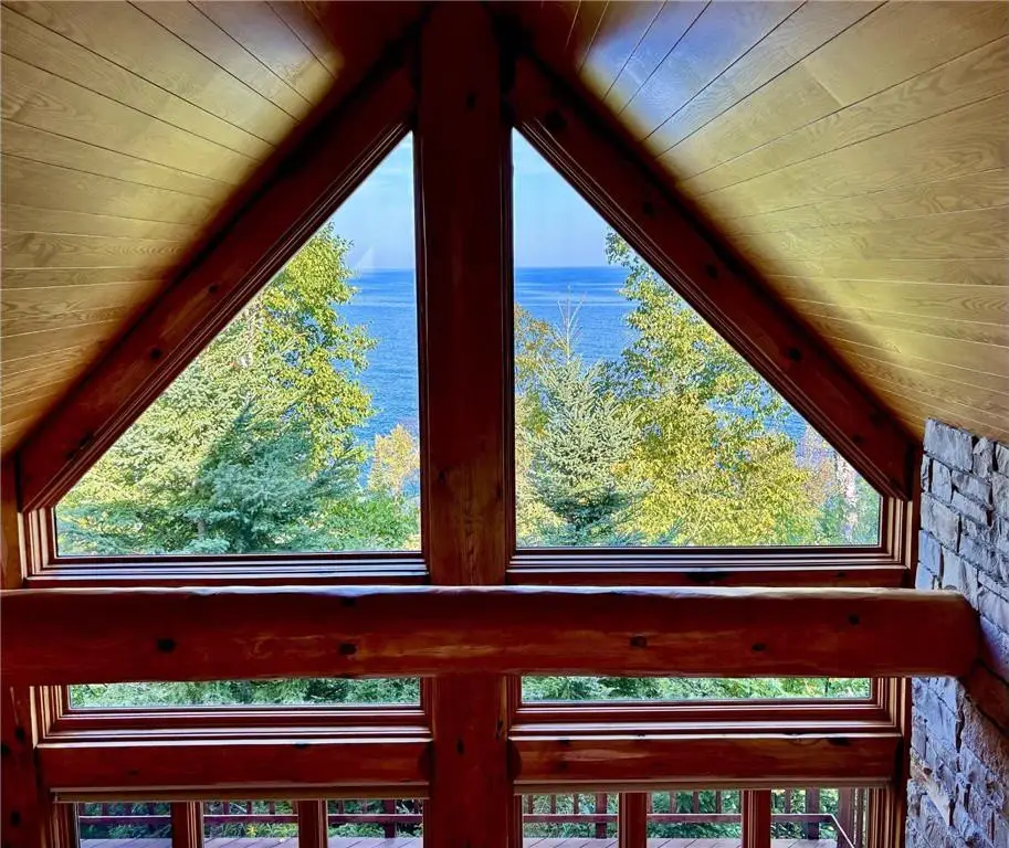 Nestled on the stunning North Shore of Lake Superior this luxury cabin embraces the spirit of elegance and comfort in perfect harmony with nature. Open concept rooms invite sweeping views of the lake’s sapphire waters, where the ever-changing light creates a living masterpiece just beyond the windows. Inside, soaring vaulted ceilings and the warmth of in-floor heating beneath hickory wood floors create an inviting haven in every season. The heart of the home is a gourmet kitchen, where polished granite counters meet pecan wood cabinetry, each detail thoughtfully chosen and exquisitely crafted all surrounded by the endless beauty of Lake Superior. Large primary bedroom ensuite with walk-in closet is on the main floor has continued spectacular lake views. Quiet nature abounds, far away from the highway a great place to go on those after dinner walks. More than a home, this three-bedroom, three-bath sanctuary is a place to savor quiet mornings, gather with loved ones, and live immersed in the magic of the North Shore.
