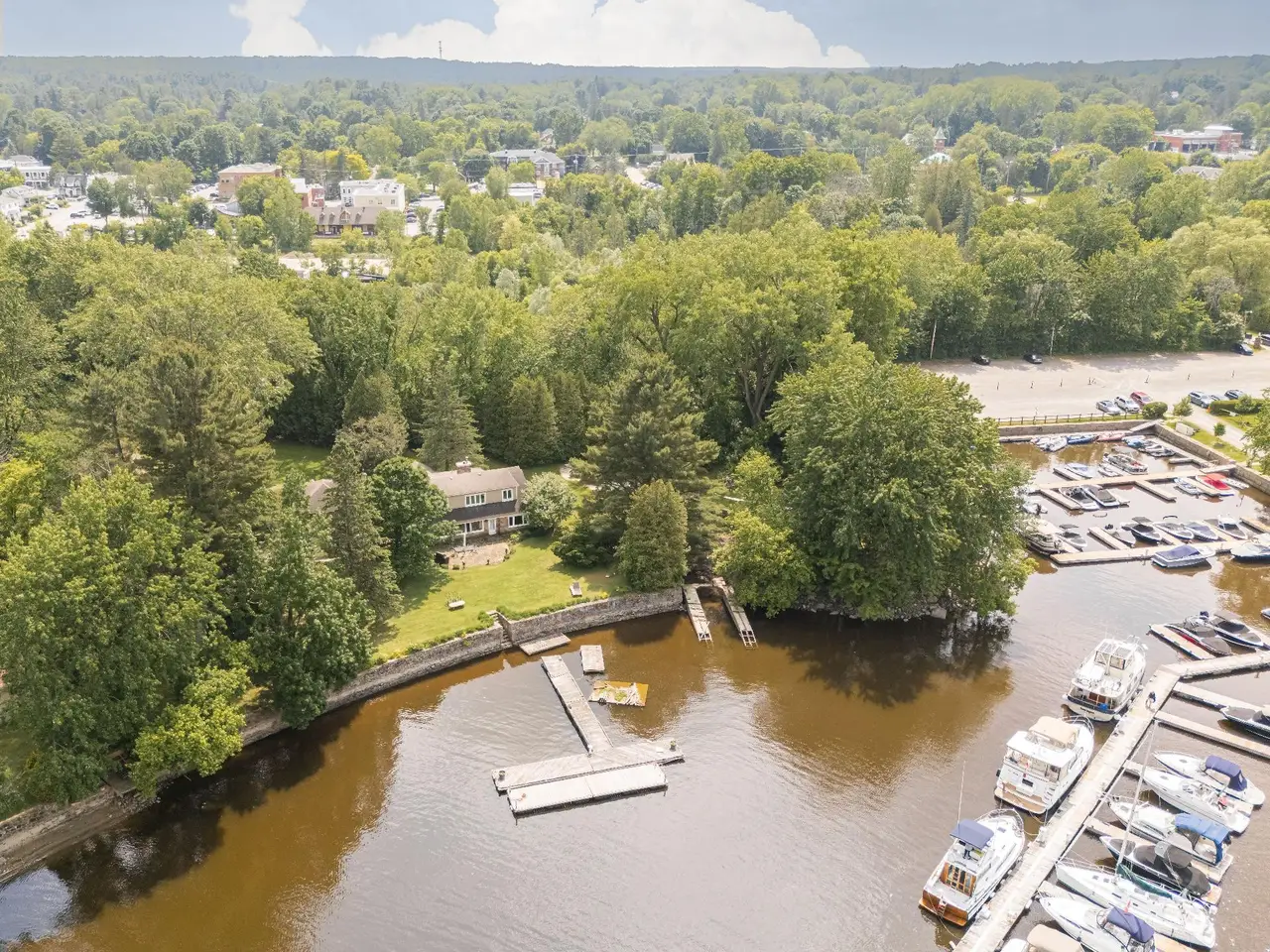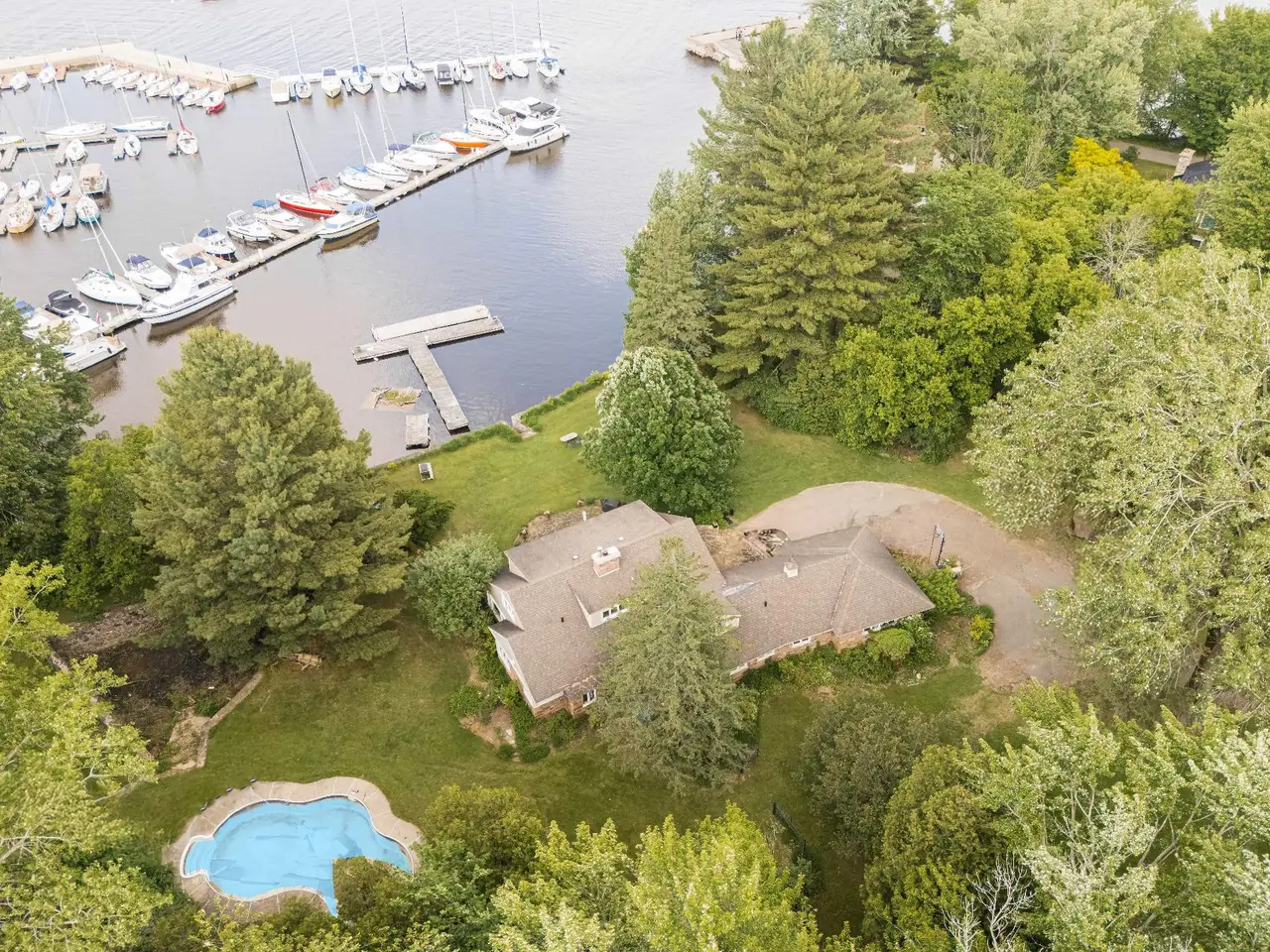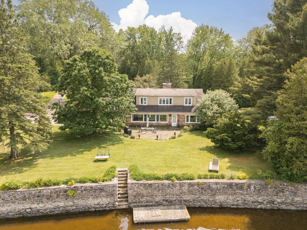 This 4 acre waterfront estate,offers an elegant 5-bedroom stone residence, and 257 feet of lakefront,with panoramic views overlooking the Hudson Yacht Club and Lake of Two Mountains.Nestled at the end of a quiet cul-de-sac,with a gated entrance and accessed via a long,winding,tree-lined drive,the property is within a short walking distance to the village.The residence has undergone $280,000 in renovations and features exquisite stone craftsmanship,hardwood flooring,panoramic windows,a grand wood-burning fireplace,designer kitchen,ground floor primary suite,professional landscaping & inground pool.The asking price is near municipal valuation.