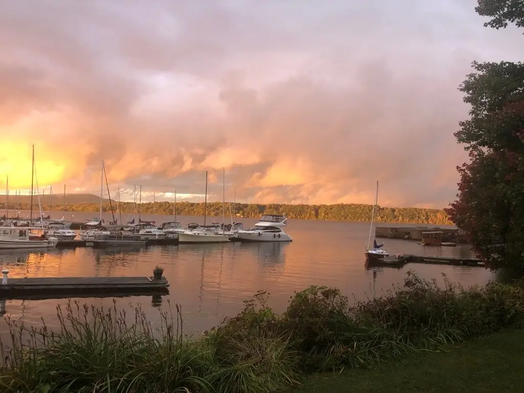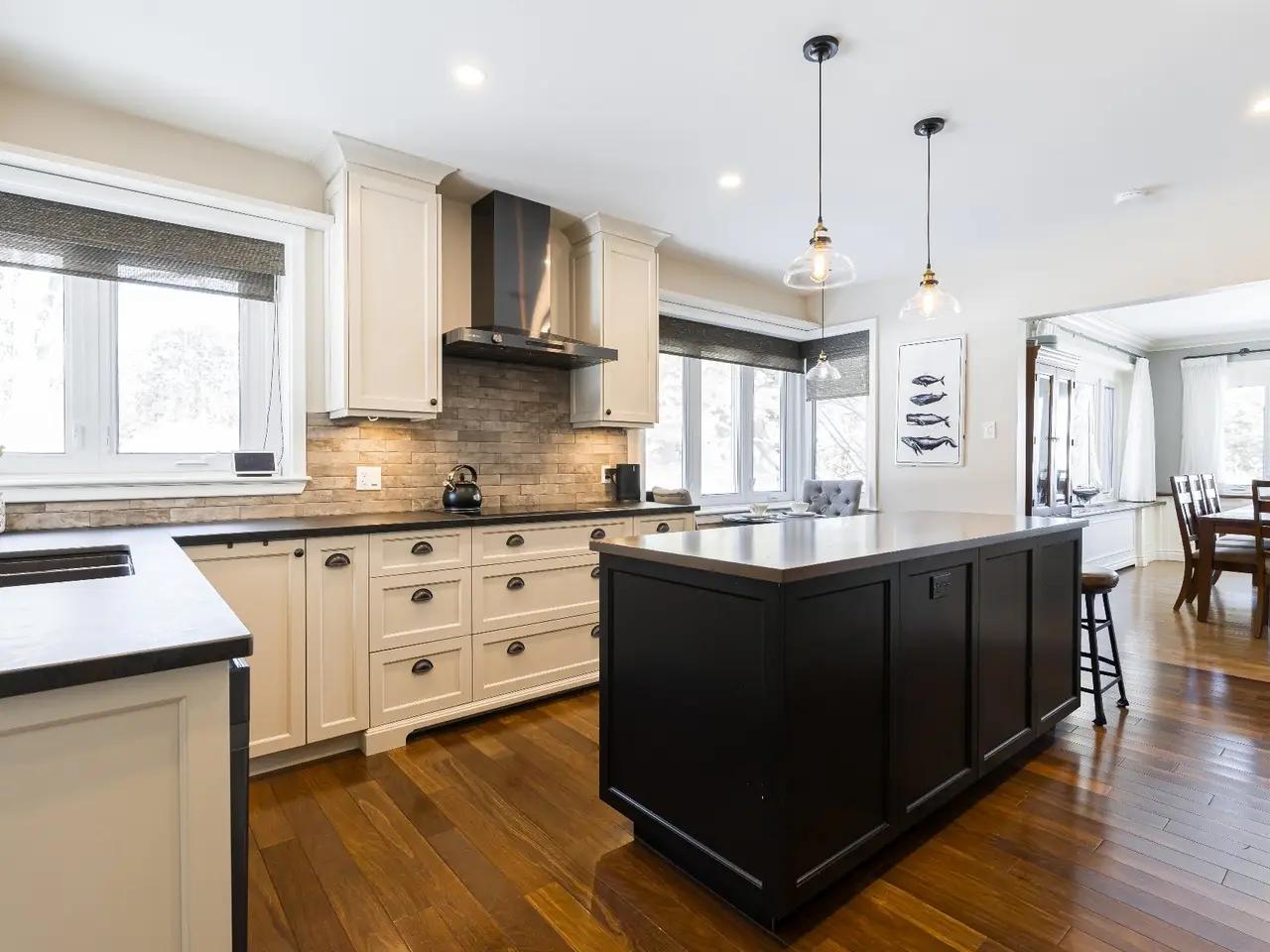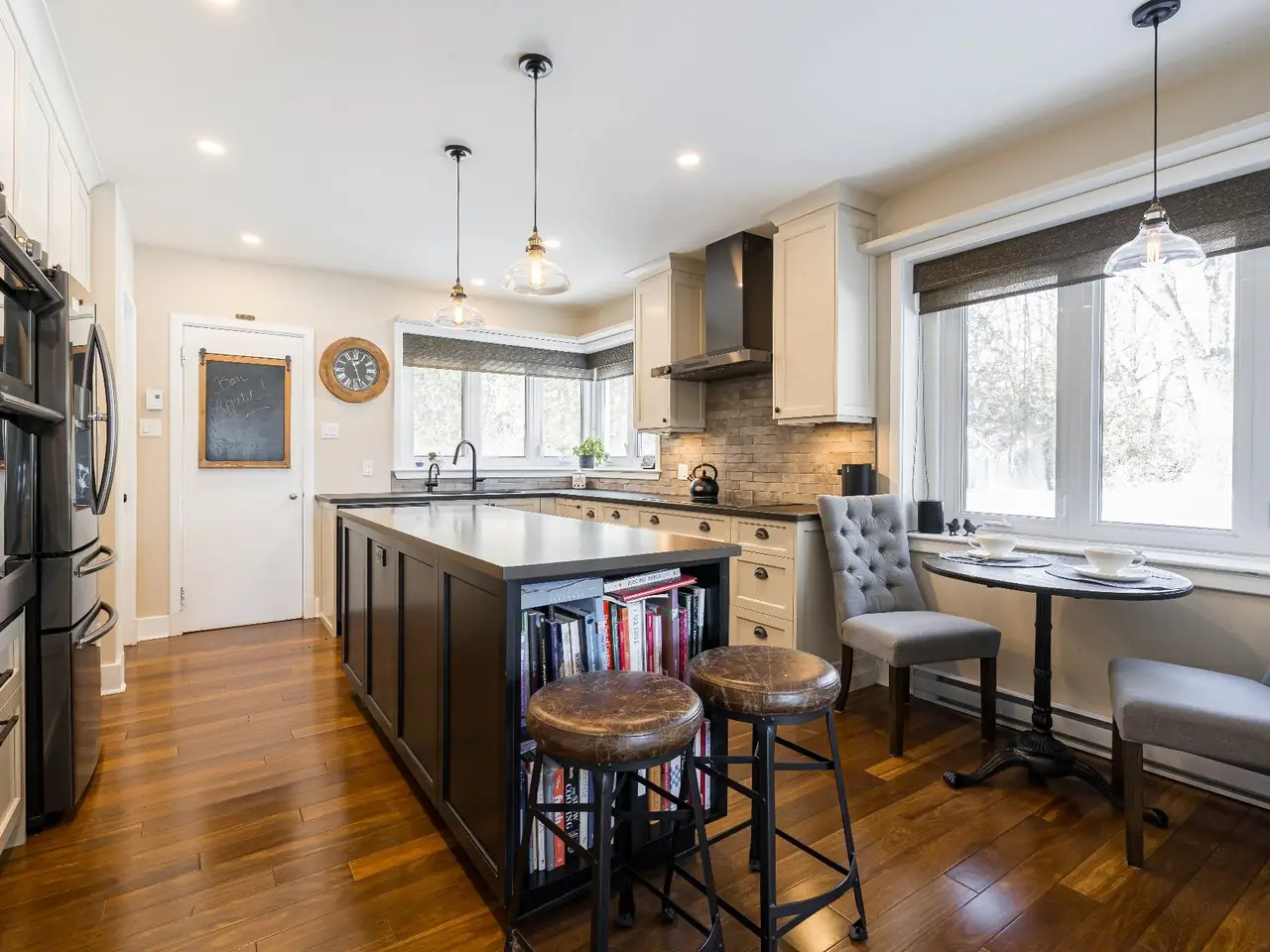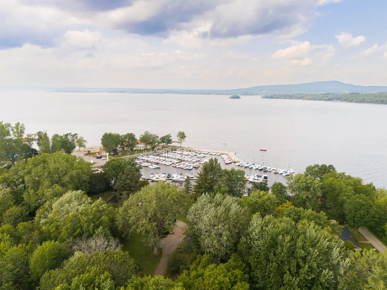 This 4 acre waterfront estate,offers an elegant 5-bedroom stone residence, and 257 feet of lakefront,with panoramic views overlooking the Hudson Yacht Club and Lake of Two Mountains.Nestled at the end of a quiet cul-de-sac,with a gated entrance and accessed via a long,winding,tree-lined drive,the property is within a short walking distance to the village.The residence has undergone $280,000 in renovations and features exquisite stone craftsmanship,hardwood flooring,panoramic windows,a grand wood-burning fireplace,designer kitchen,ground floor primary suite,professional landscaping & inground pool.The asking price is near municipal valuation.