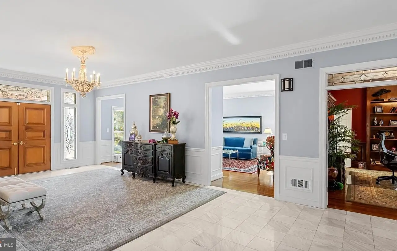 Stately all-brick colonial in the prestigious Lambourne Downs / Western Run Valley community, offering approximately 8,500± sq. ft. of finished living space on 4.6± scenic acres. Boasting exquisite curb appeal with professional landscaping, brick paver walkways and patios, covered front porch, side-load 2-car garage, ample off-street parking, updated architectural shingle roof, and sweeping views of the valley. Step inside the grand marble foyer showcasing crown, dentil, and chair rail moldings, wainscoting, wall sconces, fireplace, and a stunning curved staircase. The living room off the foyer offers hardwood floors, dentil crown molding, chair rail, wainscoting, and fireplace, opening to the professional office with hardwood floors, crown and chair rail molding, wainscoting, built-ins, niche, and slider access to a covered rear deck overlooking the tranquil setting. The gourmet eat-in kitchen features hardwood floors, granite countertops, a center island with breakfast bar, recessed and pendant lighting, soft-close cabinetry and drawers, built-in pantry, and a coffee area with glass-paneled cabinetry. Built-in appliances include a side-by-side refrigerator, wall oven, built-in microwave, electric cooktop, and range hood. The adjoining breakfast area with cathedral ceiling provides access to the rear deck, ideal for morning coffee or casual dining. Off the kitchen, the enormous great room impresses with hardwood floors, crown and chair rail moldings, wainscoting, gas fireplace, wet bar, access to the garage, and access through a sliding glass door to one of the beautiful brick paver patios. The formal dining room is equally elegant with hardwood floors, dentil crown molding, wainscoting, fireplace, and a stunning Palladian window. The main level also includes a dual-access powder room and second staircase to the upper level. Ascend the curved staircase illuminated by a chandelier to the luxurious primary suite offering a fireplace, crown molding, carpet flooring, massive walk-in closet with balcony access, and a fully updated ensuite featuring frameless glass shower, clawfoot soaking tub, water closet, and dual granite vanities-one with extra storage and one with dressing area. The upper level continues with a dual-entry full bath, second bedroom with double-door closet, third bedroom with fireplace, crown molding, and double-door closet, laundry room, and fourth bedroom with private ensuite bath. The top level hosts a sprawling bonus room with carpet flooring, dormer windows, ceiling fans, zoned HVAC, walk-in closet, and access to an exercise room-perfect for recreation, hobbies, or studio use. The multipurpose lower level includes fifth and sixth bedrooms (one carpeted, one tile), full bath, utility room, recreation room with fireplace and full stone hearth, recessed lighting, and tile flooring, plus a game room with slider to the covered rear patio. Outdoor living is extraordinary with a composite rear deck with vinyl railings and awning, covered patio with additional storage, three brick paver patios, and a charming covered front porch-all surrounded by tranquil valley scenery. Additional highlights include three-zone HVAC, exceptional craftsmanship, and numerous high-end upgrades throughout. Combining timeless architecture, luxurious finishes, and peaceful surroundings, this remarkable estate offers an unparalleled living experience in one of Baltimore County's most sought-after locations.