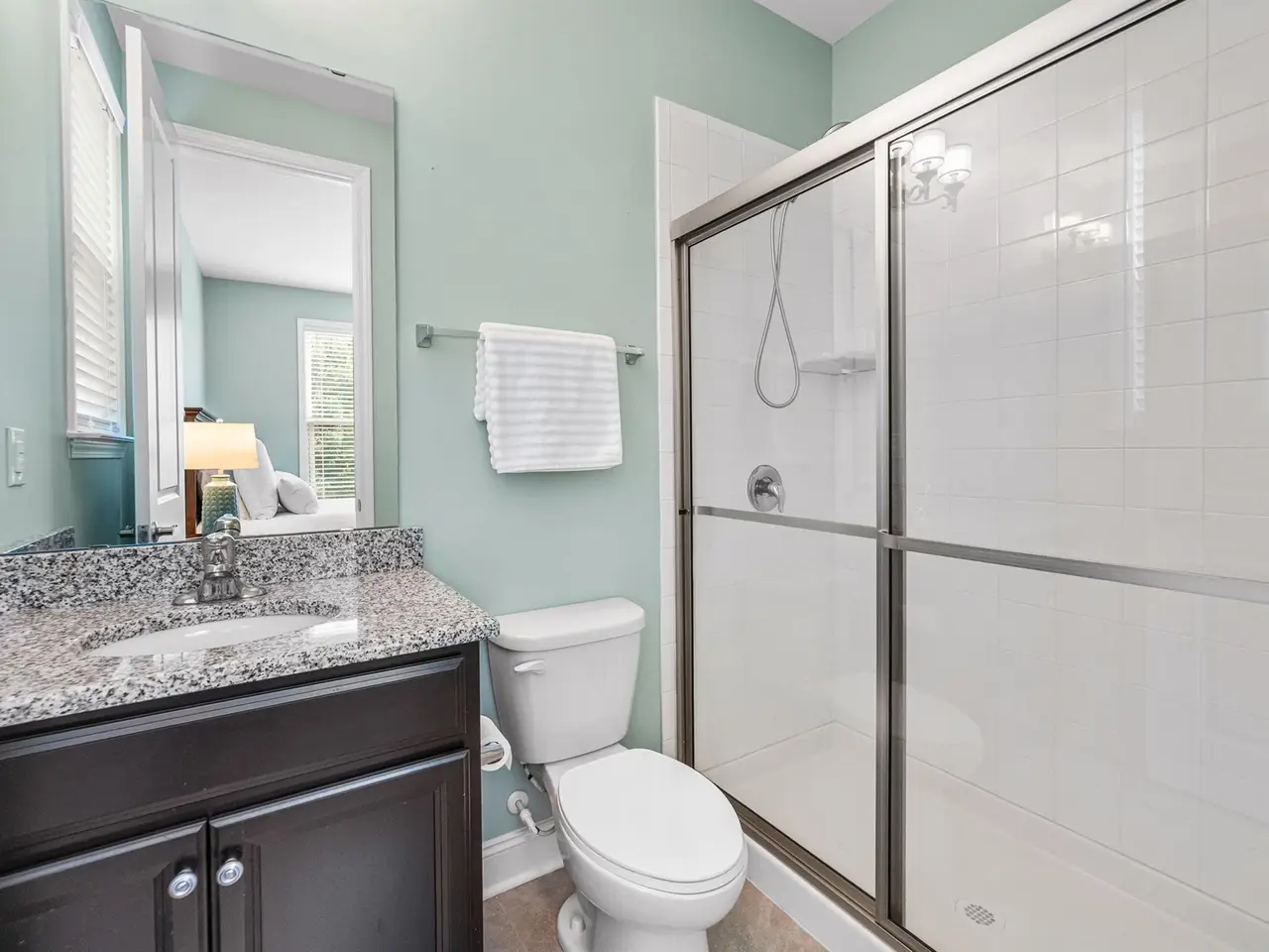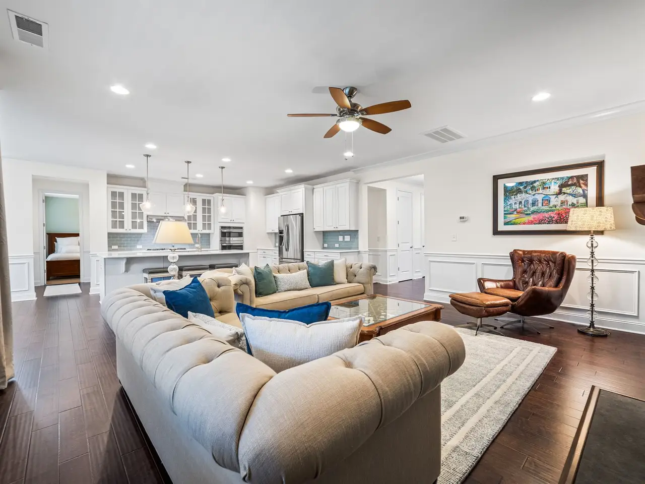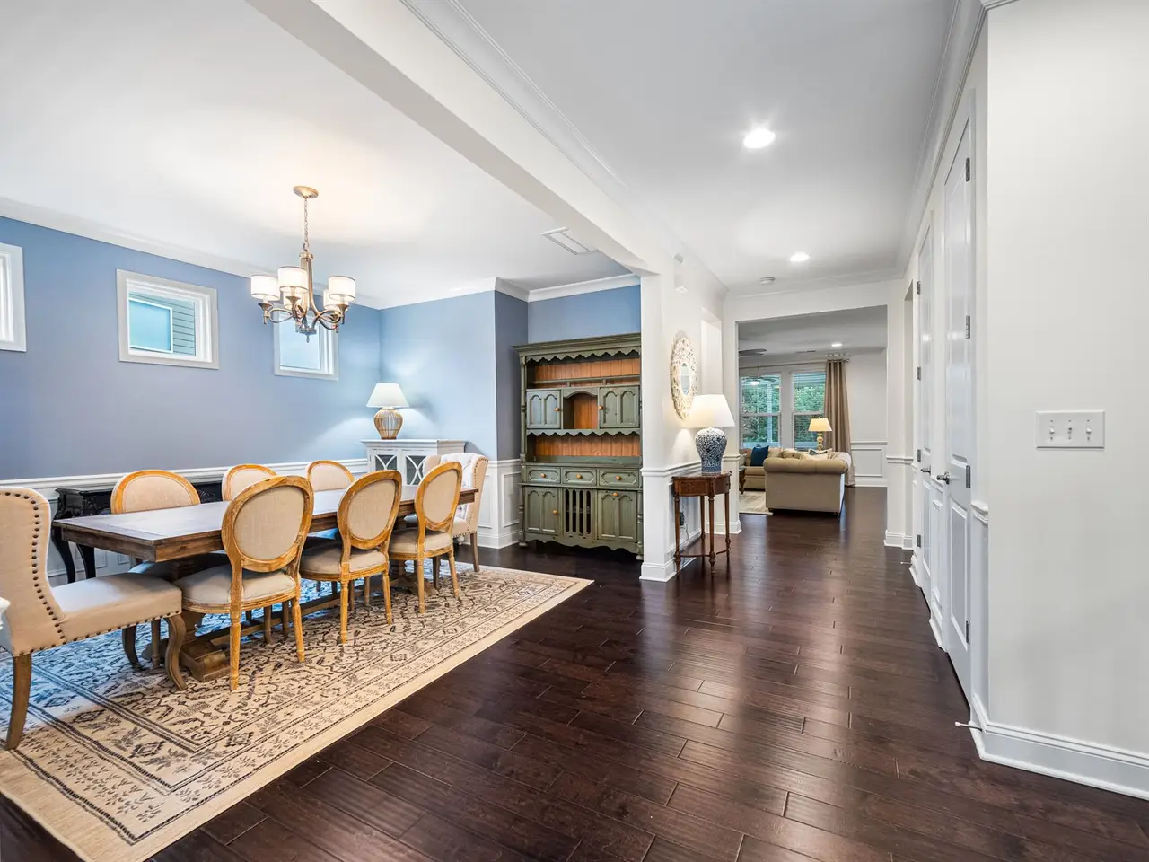 Gorgeous, meticulously maintained home in sought-after Cobblestone Manor! Premier lot backs to a serene common area with mature trees and sits directly across from the neighborhood pool. The open-concept layout offers a main-level guest suite, inviting great room, screened porch with patio access, dedicated office, drop zone, and a designer kitchen with oversized island, gas range, wall ovens, and walk-in pantry with custom glass door. High-end features include upgraded millwork, storm door, tankless water heater, in-wall pest system, extended front driveway and rear patio, custom fireplace with shiplap and mantel, fire pit, and sizable closets. Luxurious primary suite upstairs features dual walk-in closets, double vanities, and a soaking garden tub. Three additional bedrooms, including one with private en-suite, plus a spacious loft offer versatility. Exceptional outdoor living and refined interiors make this a rare opportunity in a prime location!