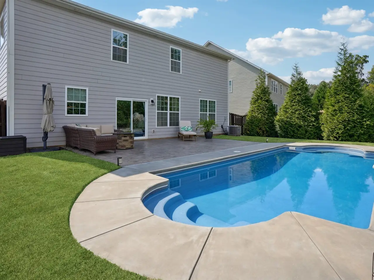 Welcome to Your Huntersville Oasis. Step inside this stunning home where everyday living feels like a retreat. From the moment you enter, you're greeted by soaring ceilings that create a dramatic sense of space and light. The formal dining room features an elegant coffered ceiling, setting the tone for stylish entertaining. The open great room flows seamlessly into a chef's kitchen loaded with cabinetry, gleaming granite countertops, stainless steel appliances, and rich wood flooring that ties it all together. A convenient drop zone helps keep things organized, and a full guest suite on the main level offers privacy and comfort for visitors. Upstairs, the luxurious primary suite is a private sanctuary with a spa-like bath and generous walk-in closet. Three additional spacious bedrooms and a huge loft provide flexibility for work, play, or relaxation. A rare three-car garage adds even more convenience and storage. Outside, your personal paradise awaits. Relax on the oversized patio or enjoy a dip in the sparkling heated sport pool with waterfall feature. The backyard is enclosed for maximum privacy. Located just minutes from Huntersville's vibrant shopping, dining, and entertainment, this home offers the perfect blend of luxury, comfort, and lifestyle.