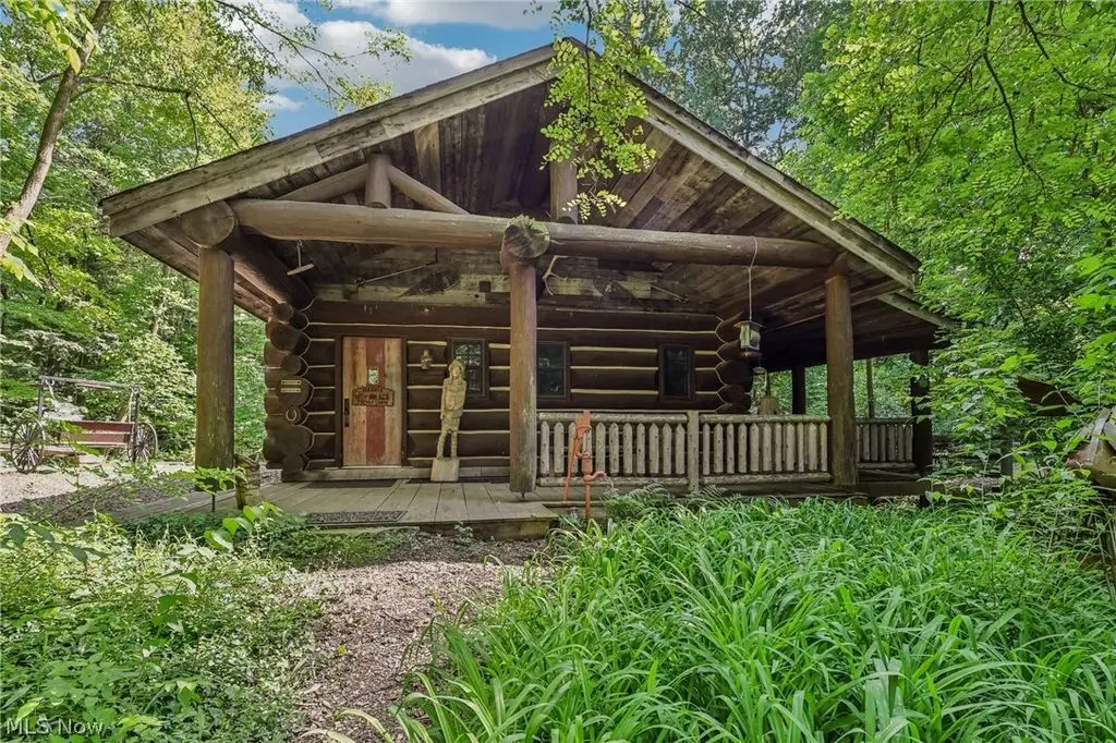 Nestled in the serene landscape of Hunting Valley, this exceptional property spans just over 5 acres and boasts striking architectural design that seamlessly blends natural elements like natural cedar and dry stack stone. The residence features soaring ceilings and walls of windows that frame breathtaking views of the rear pond, creating an ambiance of tranquility and connection to nature.The open and expansive floor plan is perfect for both everyday living and entertainment, highlighted by a first-floor primary suite offering his and her dressing rooms, a sitting room and direct access from the bath to a private stone terrace. Step outside from the bedroom to discover multiple outdoor spaces connecting to a large deck and stone terrace with an outdoor fireplace C/B?B= a true haven for relaxation and outdoor gatherings. A chef's dream kitchen awaits with a center island and informal dining area that opens to a delightful, screened porch, ideal for enjoying meals surrounded by the beauty of the outdoors. For those seeking additional charm and versatility, a short stroll down a path leads to an authentic log cabin featuring hand-hewn beams and a wraparound porch. Inside, the cabin exudes authentic character with a great room adorned by a sone fireplace, a galley kitchen, and a comfortable bedroom with an accompanying bath C/B?B= an idyllic retreat for guests or a perfect getaway space. This one-of-a-kind property harmoniously blends modern design sensibilities with the rust charm of a Frank Lloyd Wright -inspired aesthetic, offering a rare opportunity to experience sophisticated country living at its finest.
