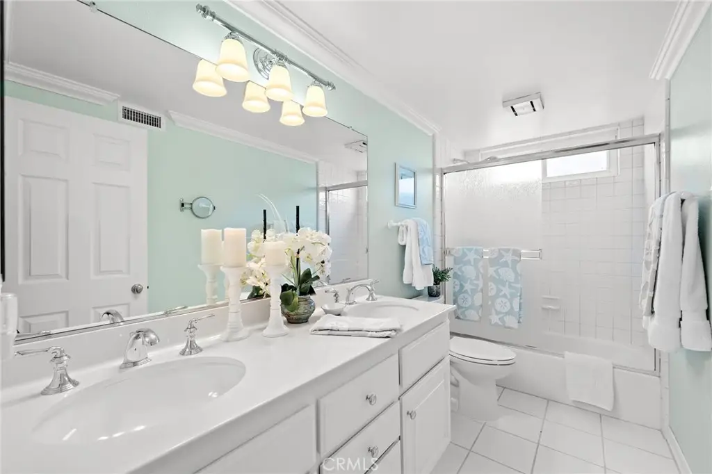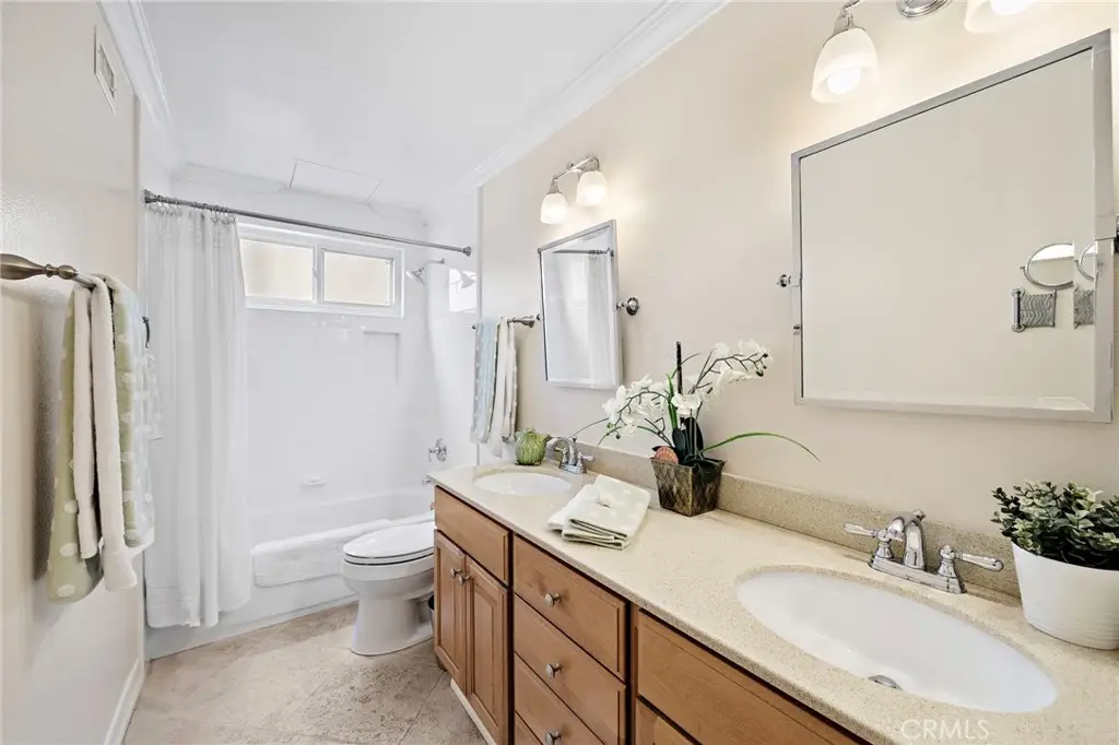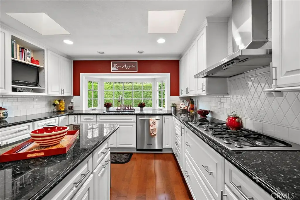 Located Just Moments From The Neighborhood Park And Bike Trail, This Stunning Residence Offers 5 Bedrooms, 3 Bathrooms, And Over 2,800 Sq. Ft. Of Thoughtfully Designed Open Concept Living Space -- Including A Primary Suite Conveniently Located On The Main Level. The Downstairs Showcases Custom Hardwood Flooring, Recessed Lighting, Crown Molding, and French Dual Pane Windows, French Doors, and Custom Silhouette Blinds. This Magnificent Estate-Style Home Boasts Gorgeous Curb Appeal with Brick Hardscape and Professional Landscaping. Double Entry Doors Open to a Formal Foyer, Elegant Formal Living Room with Marble Fireplace and Formal Dining Room which Flows Seamlessly into the Large Family Room with a Cozy Raised Hearth Fireplace, Custom Built-In Entertainment Center, and Breakfast Nook. The Gourmet Kitchen Has Been Professionally Expanded And Remodeled With Granite Countertops, Subway Tile Backsplash, Soft-Closing White Shaker Cabinetry, Stainless Steel Appliances, Skylights, And A Custom Island With Bar Seating. A Large Bay Window Overlooks The Garden, Flooding The Space With Natural Light. Also On The Main Floor Are Two Highly Desirable Guest Bedrooms And A Full Bath with Dual Sinks. Upstairs, You'll Find Two Oversized Bedrooms, One with Built-In Desk, and A Full Guest Bath with Dual Sinks. Additionally there is a Gigantic Walk-In Storage Closet which Could Almost be a Bonus Room. Additional Highlights Include Dual-Pane Windows Throughout, Central Air Conditioning And Heating, Copper Plumbing, Raised Panel Interior Doors, Mirrored Closets, And Direct Access To A Fully Finished Garage Complete With Abundant Storage, A Workbench, Pull-Down Attic Access, And Epoxy Flooring. Conveniently Located Near Beach, Shopping, Parks, And Award-Winning Schools, This Home Truly Reflects Pride Of Ownership.