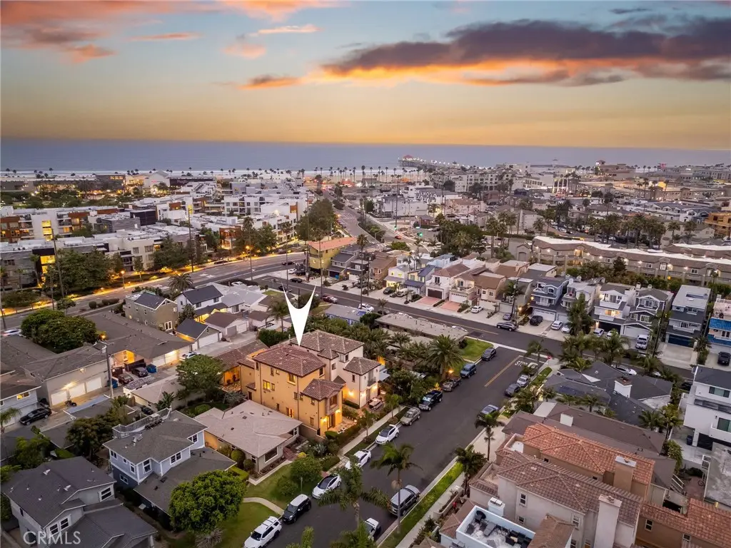 Welcome to the ultimate coastal retreat in the heart of Huntington Beach, where refined design meets relaxed beachside living. Only three blocks from the ocean, Pacific City, Main Street, and world-class resorts, this custom-built three-story home rests on a generous lot along one of downtown's most peaceful streets, offering the perfect blend of coastal convenience and serene seaside living. Crafted with timeless elegance and modern comfort, this 3,357 sq ft residence offers premium finishes, abundant natural light, and a seamless indoor-outdoor flow. Across three light-filled levels, you'll find soaring 10-foot ceilings, a designer kitchen, and inviting spaces that feel like your own private resort. Accordion-style bi-fold doors open your great room to a sun-drenched patio perfect for entertaining or soaking in the sea breeze. Returning from the beach? An outdoor shower is ready to rinse the sand away. The chef's kitchen is a true showstopper, featuring Alderwood cabinetry, Thermador appliances, leathered granite countertops, and an expansive walnut island ideal for gathering. Offers a DOWNSTAIRS BEDROOM. The primary suite is a dreamy retreat with a cozy fireplace, spa-worthy bath, massive walk-in closet, and a private balcony for morning coffee with a side of ocean breeze. The third level offers a full guest suite plus a massive bonus room with a wet bar, opening to a 225 sq ft rooftop deck with panoramic mountain, city, and sunset views. This home boasts four bedrooms, five bathrooms, multiple living areas, and rare 4-car parking, including a 2-car garage and two additional spaces behind the home. Additional highlights include a newly installed water softener, upgraded security system, and thoughtful details throughout. Whether hosting, relaxing, or strolling to the beach, this is coastal living reimagined. Luxury. Location. Lifestyle. This is more than a home--it's a statement.