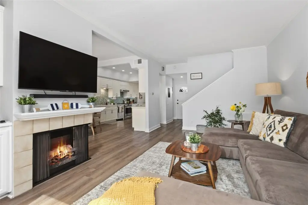 Price Improvement!!! LOCATION, LOCATION, LOCATION. Experience CA elegance with this stunning 3-bedroom, 2.5-bath townhome in the coveted Las Fuentes gated community of Huntington Harbour. Thoughtfully upgraded throughout, this home features soaring cathedral ceilings, designer carpet upstairs, and high-quality luxury vinyl flooring on the main level. The light-filled kitchen is a showstopper, showcasing quartz countertops, a striking aqua glass backsplash, stainless steel appliances and sink, and custom cabinetry. A spacious dining area makes family dinners and entertaining effortless, while the inviting living room--with its cozy fireplace--opens to a sunny, oversized patio adjacent to the sparkling community pool, hot tub, and sauna. Upstairs, you'll find three bedrooms, an updated bathroom, and a convenient laundry area. Two bedrooms share a Jack-and-Jill balcony, vaulted ceilings, large closets, and views of the mountains. The expansive primary suite boasts a retreat, private balcony for morning coffee or evening relaxation, a large closet, and a spa-inspired bathroom with an inviting shower, dual sinks, and stone countertops. From the opposite side of the home, enjoy snow-capped mountain views in winter and Disneyland fireworks in the summer. Additional highlights include a driveway plus an attached two-car garage with direct access, along with a resort-style community featuring mature landscaping, fountains, and wide-open green spaces. Just a quarter mile from Davenport Beach, you'll love the easy harbor access point for paddle boarding and other water activities. Enjoy all that Huntington Beach has to offer--close to the Bolsa Chica Wetlands, Huntington Harbour, beaches, scenic trails, Trader Joe's, popular restaurants, and easy freeway access. Live every day like you're on vacation in this beautiful Las Fuentes home!