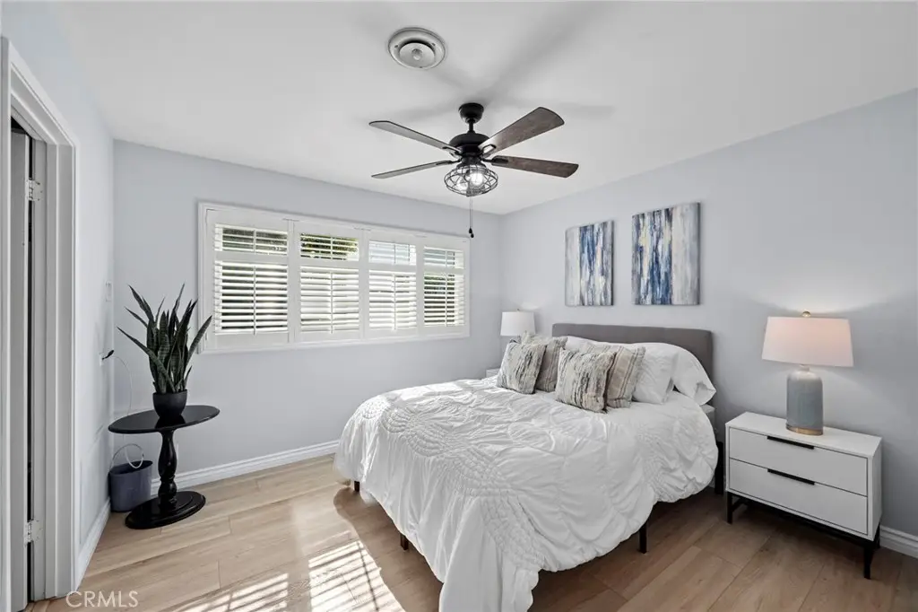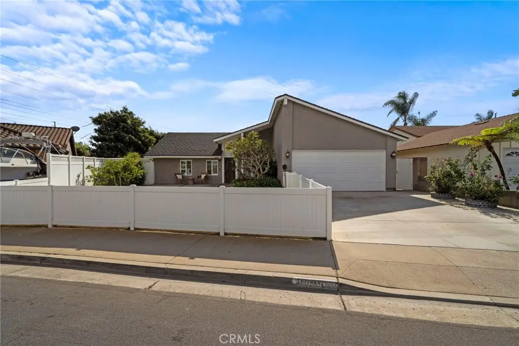 Absolutely charming and beautifully upgraded single-story home just 1.7 miles from the beach--so close you can feel the cool ocean breezes and enjoy that vacation feeling all year long! This home showcases an extra-large front lawn enclosed with a white vinyl fence for safe play, plus a welcoming front porch that sets the tone for what's inside. Step through the door and prepare to be wowed by the modern luxury upgrades that have transformed this home, including walls opened to create a spacious open-concept great room with cathedral ceilings, recessed lighting, dual pane windows, plantation shutters, and elegant travertine-style tile flooring with decorative inlay. A granite breakfast counter connects the remodeled chef's kitchen to the living room for effortless entertaining, while the adjoining dining area flows seamlessly between both spaces. The kitchen is a showpiece with granite countertops, stainless steel appliances, and rich dark wood custom cabinetry featuring a lazy susan, spice cupboards, hidden trash cupboard, glass display panels, and a built-in microwave niche. Beveled-edge sliding glass doors open to the wrap-around backyard with covered patio, garden areas, lush lawn, block wall fencing, and an extra-wide paver side yard with RV potential. Additional upgrades include central A/C, all-new PEX re-piping in 2025 (transferable warranty), all-new electrical and panel in 2012, new roof in 2018, high baseboards, some raised-panel doors, and remodeled bathrooms. The hall bath features a custom vanity with granite countertop and a jetted tub/shower combo with designer tile surround and frameless glass enclosure. The spacious primary suite offers wood laminate flooring, a large walk-in closet, and an ensuite bathroom with a walk-in shower, while the two additional bedrooms include another with its own walk-in closet. Ideally located just steps to the bike trail to the beach and close to award-winning schools (Eader, Sowers, Edison) this home truly embodies the perfect blend of coastal charm, modern comfort, and timeless style. You'll fall in love the moment you step inside!