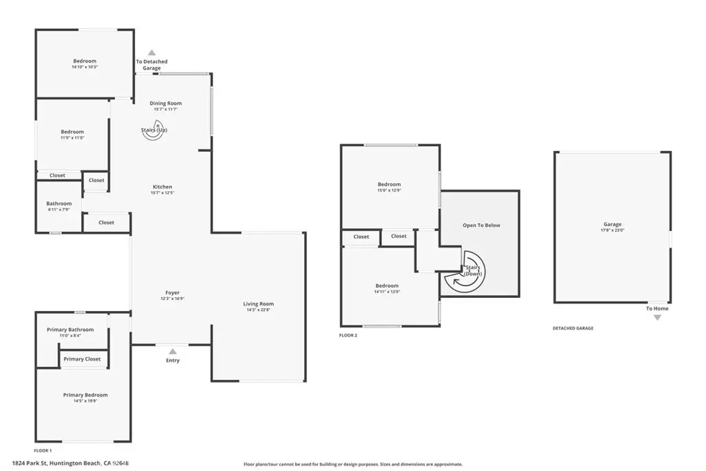 Welcome to 1824 Park St,a nicely remodeled mid-century modern home on a quiet street just off Main St.If you're looking for Palm Springs meets the beach,you just found it!Nestled in a desirable pocket of Huntington Beach's Lake Park neighborhood,this home offers a serene feel & local vibes,while keeping you close to the city's best amenities & traditions like the 4th of July parade & fireworks,just not in your backyard!Curb appeal starts w/stacked stone accents & a manicured front yard w/grass & paver walkways,creating a welcoming entry.Approximately 1 mile from world famous white sand beaches of "Surf City,"this refreshed home offers 5 bedrooms (3 down, 2 up),2 baths & a 2-car detached garage.Entering,you're greeted by an open floor plan with new laminate flooring,recessed lighting,a dramatic suspended fireplace & clear sightlines to the kitchen,dining area & natural light throughout.The efficient layout flows into a kitchen overlooking the family room,w/ granite counters,flat panel cabinets & stainless appliances including a 4-burner gas cooktop.For formal entertaining,there's a dining area off the kitchen,perfect for special events & holiday gatherings.A full bath off the living area & multiple sliders lead to the private front patio & backyard.Outside you'll find tropical landscaping,grass for kids & pets,large patio & walkways w/ pavers,plus a built-in BBQ w/ granite counter space,stacked stone facade,sink & beverage fridge,making this an ideal space for outdoor cooking,dining & year-round entertaining.A water feature adds to the tranquility.Back inside,there are 3 bedrooms on the first level,all w/ sliders to private spaces.2 share a full hallway bath,while the owner's suite enjoys an upgraded bath w/ step-in shower.Upstairs are 2 generously sized bedrooms,perfect for older kids,office or guests.Other highlights include new flooring,paint,baseboards,scraped ceilings,recessed lights,landscaped yards w/ sprinklers,central heat,washer/dryer hookups.Only steps away,Worthy Park offers space to walk,play w/ kids & pets,or just enjoy the open air.Close to top schools including Dwyer Middle & Huntington Beach High,plus world-class beaches,dining, entertainment & shops at Main St & Pacific City.Also nearby are South Coast Plaza,Costco,HB Central Park,Library & Senior Center,HB Sports Complex,Equestrian Center,Mile Square Park & Golf Course,OC Fairgrounds & more.Easy access to freeways & PCH.With many recent improvements,enjoy California living at its finest!