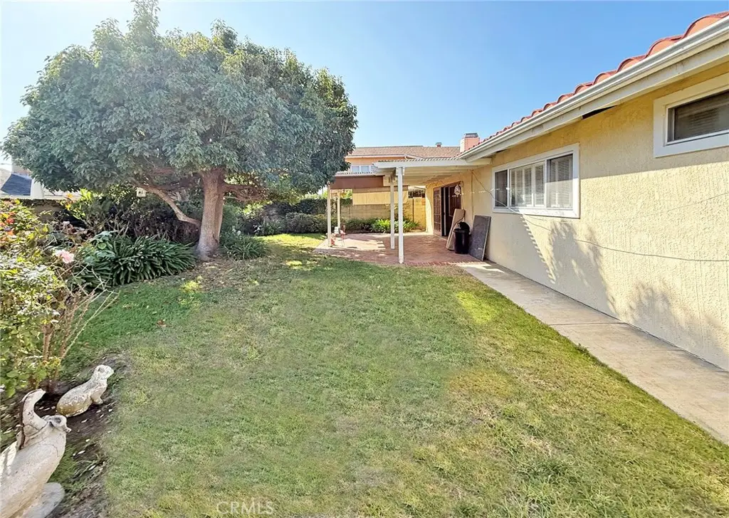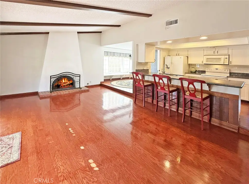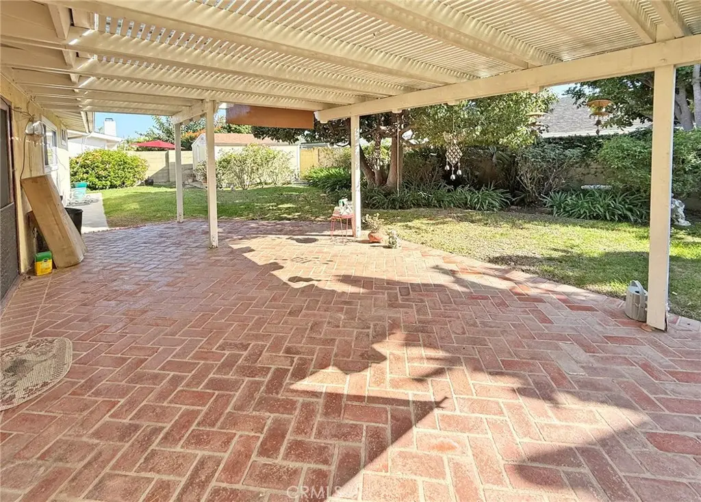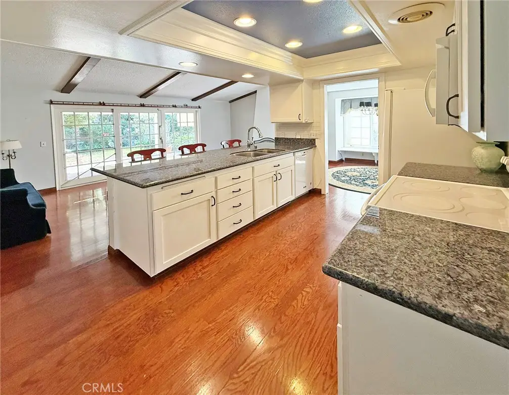 Welcome to this highly desirable 4-bedroom, 2-bath single-story home with over 1,600 sq. ft., located on a fabulous cul-de-sac street! The home features beautiful hardwood floors throughout the living room, dining room, kitchen, and family room. The remodeled kitchen boasts all-white shaker cabinetry, granite countertops, tile backsplash, white appliances, a raised ceiling with crown molding, recessed lighting, and a spacious breakfast bar with seating--all opening to the family room with fireplace, cathedral ceilings, and a French slider that leads to the private backyard with covered patio, lawn, gardens, a shed, and an extra wide side yard. Additional highlights include newer central A/C and furnace, tile roof over the main house, three guest bedrooms, a guest bath with tub/shower combo, and a spacious primary suite with a walk-in cedar-lined closet, upgraded dual-sink vanity, and walk-in shower. With just a few cosmetic updates, this home will be a perfect 10!