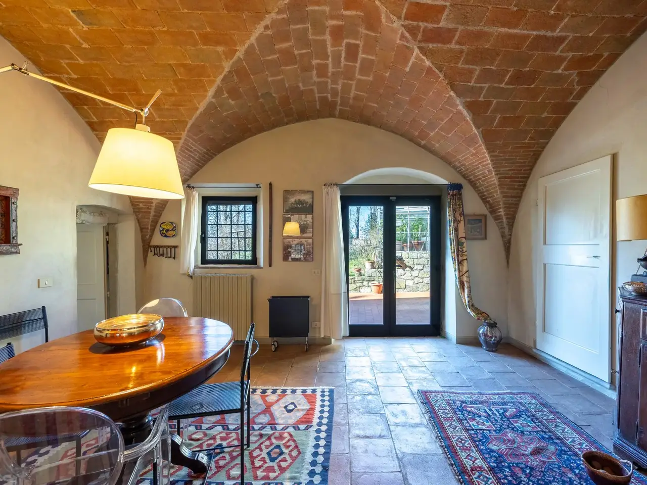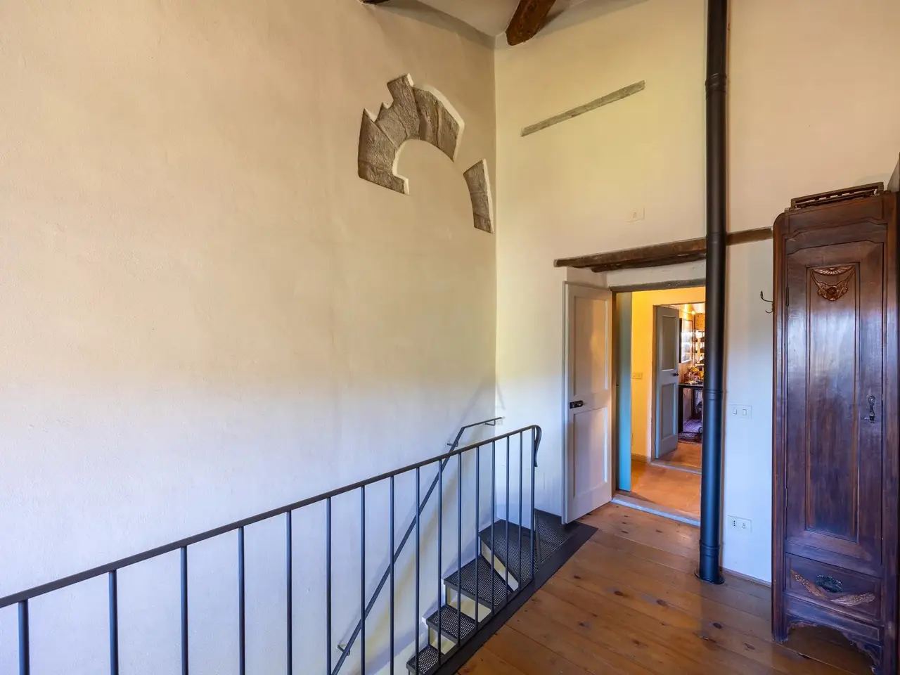 The property is located in the hamlet of “Tigliano” in the municipality of Pontassieve, which has been part of the Fattoria di Grignano for many centuries.It originated as a tower house in the 12th century. Subsequent enlargements resulted in the “scapicozzatura” of the tower, and before being used as a farmhouse, it was used for religious purposes, as specific finishes, in the present living room, suggest.Tigliano is a delightful hamlet where peace and quiet is assured.The property, regular in shape and free on four sides, was renovated in the 2000s by the current owners and continuously improved in subsequent years.It is arranged on two levels. On the ground floor we find a large living room with an important working fireplace, ceiling with exposed beams and “handmade” terracotta floors. Communicating with the living room is the beautiful eat-in kitchen and dining room. The kitchen is characterized by the beautiful Carrara marble details with which the solid wood countertop was made unique with the sink, cooktop and tabletop. The brick ribbed ceiling characterizes the dining room. Both rooms have direct access to the large outdoor slab with a terracotta floor that extends the living area during summer periods. Adjacent to the dining room is a large room used as a pantry. Also on the same floor a second living room that can be used as a study/bedroom. Two bathrooms. A stone staircase leads down to the charming cellar with brick vaults.The upper floor consists of a large living room/library at the living room with a fireplace below, four bedrooms and two bathrooms.Thanks to the presence of two connecting stairwells, an independent portion can be obtained from the consistency of the property.The property is characterized by ceilings ranging between 3.20 m and 3.50 m, open spaces, and many openings to the outside, features not easily found in farmhouses. The stone portals on the ground floor are valuable.On the basement floor a functional technical room.In addition to the terracotta slab mentioned above, a lovely garden completes the property.The hamlet and the property are located in a position from which, as far as the eye can see, no settlements such as factories, highways, railways. The landscape is, therefore, made up of woods and estates cultivated with olive trees and vines. Clearly visible are the Consuma Pass and the forest of Vallombrosa with the bell tower of the Abbey.The area enjoys a favourable climate, both because of its protected position from the north and its height above sea level (400m).It is 16km from Florence, and there is a public bus service to Florence, with a stop 150m from the property.At the Sieci train station (8 km away) 4 trains per hour guarantee a connection with Florence (Campo Marte station in 11 minutes, S.M.Novella station in 16/20 minutes).