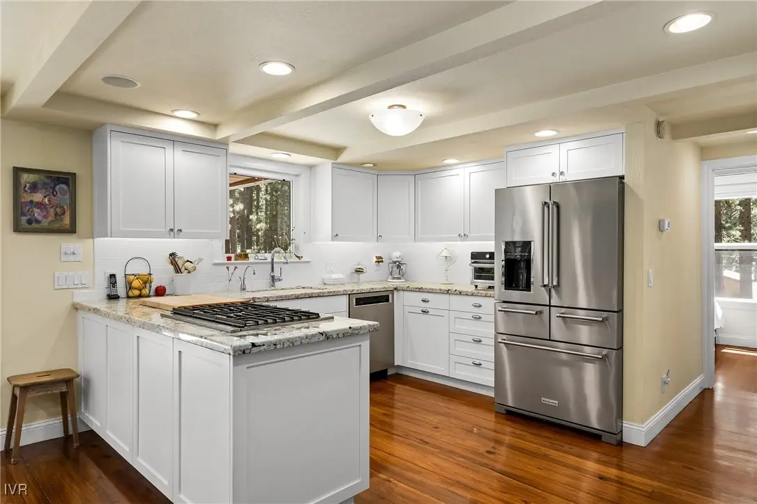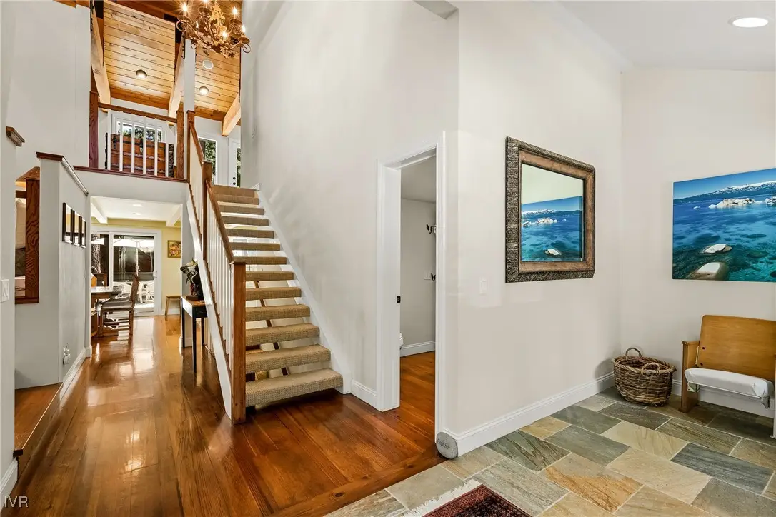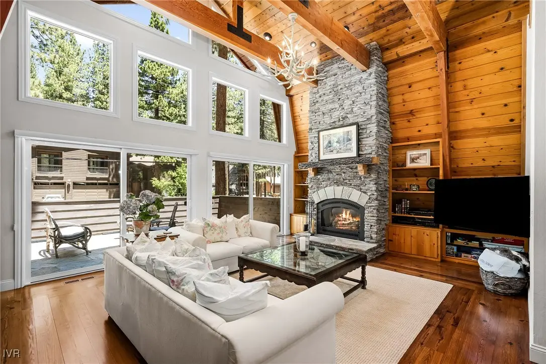 This stunning mountain home offers an ideal blend of luxury and comfort. Situated on a landscaped, level lot, featuring gourmet kitchen with granite counters. Welcoming living room with gas fireplace provides warmth and relaxation, a spacious recreation room opens to a patio with a firepit, ideal for outdoor gatherings year-round. The expansive backyard includes a large grass area, perfect for family activities and enjoying the serene mountain surroundings. High vaulted ceilings and marble floors in the primary bathroom add elegance. Features three full bathrooms, located on separate levels, along with an office offering deck access and a gym. Finished garage with epoxy-coated flooring and paver driveway adds functionality and beauty. Conveniently located near IVGID beaches and the Hyatt, with easy access to local amenities while offering a peaceful retreat in the heart of the mountains. The listing agent is related to the seller, and the seller is a NV broker.