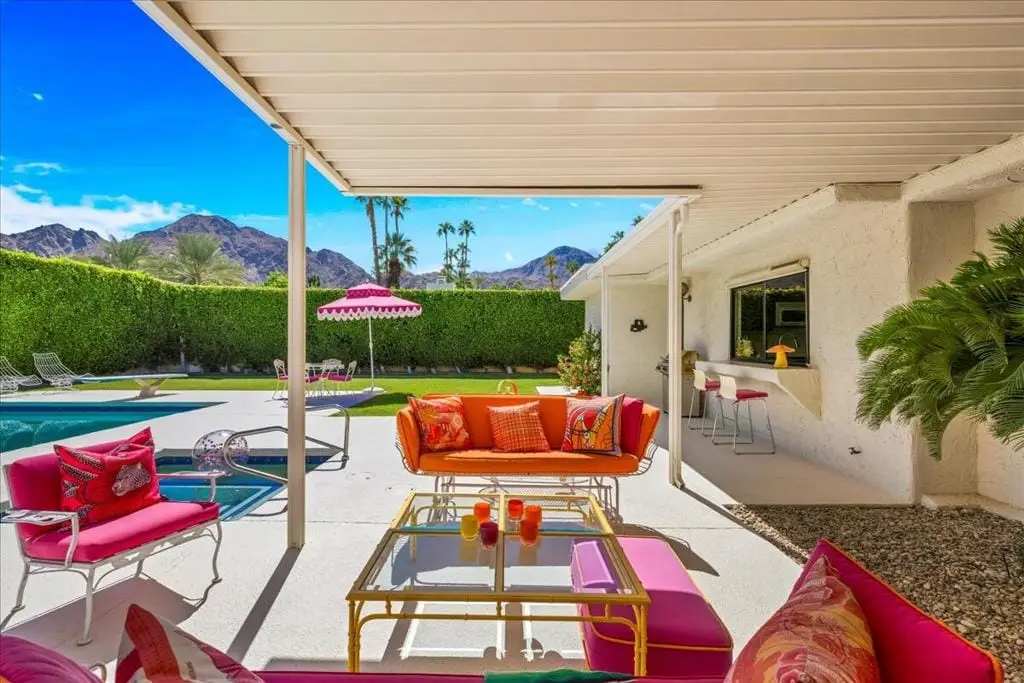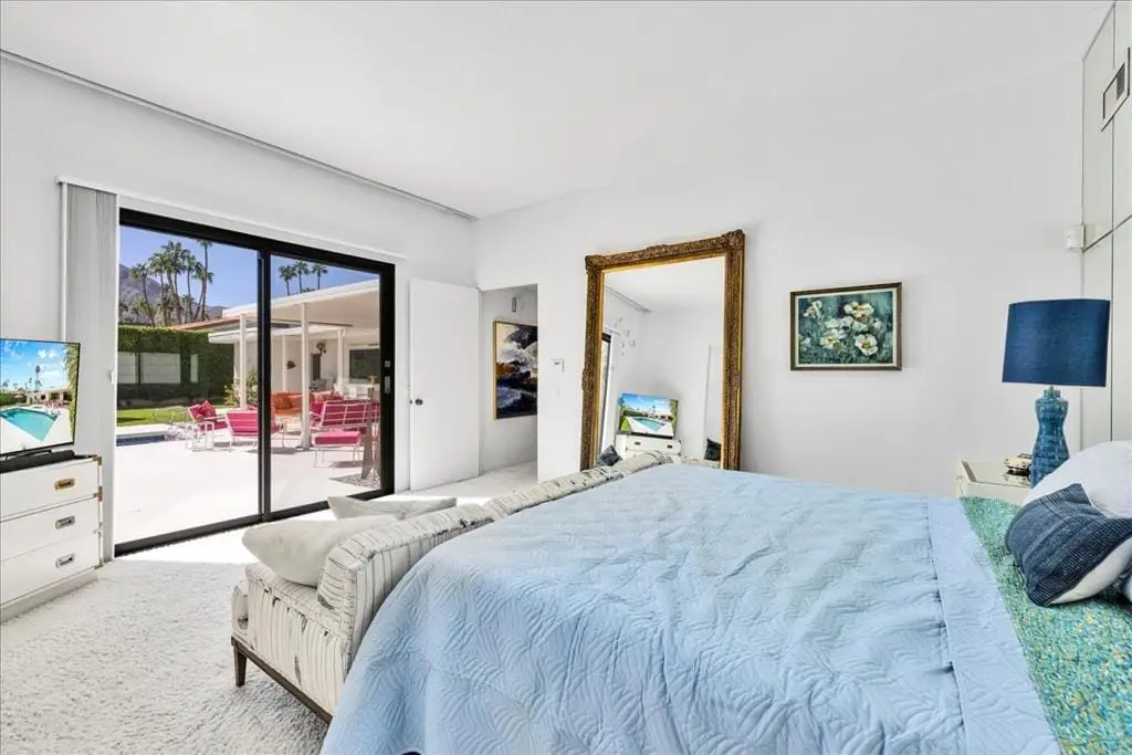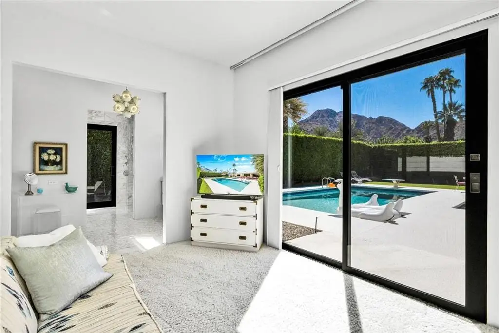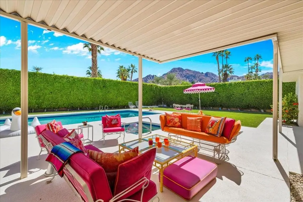 Discover refined desert living in this stunning 4-bedroom, 3-bath residence, perfectly positioned within the highly coveted enclave east of Eldorado in south Indian Wells, outside of any HOA. With dramatic mountain views and an enviable location, this home combines timeless elegance with the sophistication of today's modern luxury lifestyle, designed and built by Vicki McDermott, who is renowned for her gracious 1970s modernist homes. From the moment you enter, soaring ceilings set the tone. The sunken living room is chic and comfortable - great for entertaining or simply lounging after a game of tennis. The kitchen is updated with high-end appliances and modern drawer hardware, while retaining the charm of the original cabinetry facing. The primary suite is a serene retreat, offering direct access to the poolside patio, a spacious walk-in closet, and a spa-inspired bath with soaking tub and walk-in shower. You will wake up to spectacular mountain views every day. Three additional bedrooms provide ample space for guests, a private office, or a stylish media lounge - each features large closets which can fit king-size beds and still accommodate lounge seating or desks.Step outside to your private resort oasis, where a sparkling pool, spa and outdoor shower are framed by lush landscaping and high hedges for the utmost in privacy. The covered patio gives you ample room for al fresco dining. The seamless indoor-outdoor flow embodies the essence of desert luxury living.Additional highlights include a 3-car garage - store your golf cart or a fun vintage car in the 3rd space. Storage abounds, with thoughtfully designed cabinetry throughout the home. Extensive list of updates and upgrades available upon request.As an Indian Wells resident, you'll enjoy exclusive privileges, including golf and spa discounts at world-renowned resorts, adding to the unmatched lifestyle this home affords.The city of Indian Wells also allows rentals of 29 nights or more year-around and allows for a 7-night minimum, one week preceding and ending three days after conclusion of the annual BNP Paribas tennis tournament. Rarely available, this McDermott-built residence represents an exceptional opportunity to own in one of Indian Wells' most distinguished communities. Make an appointment to see it today!
