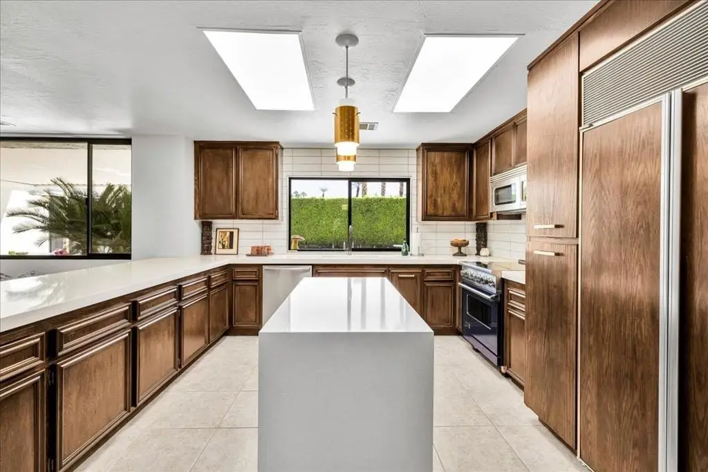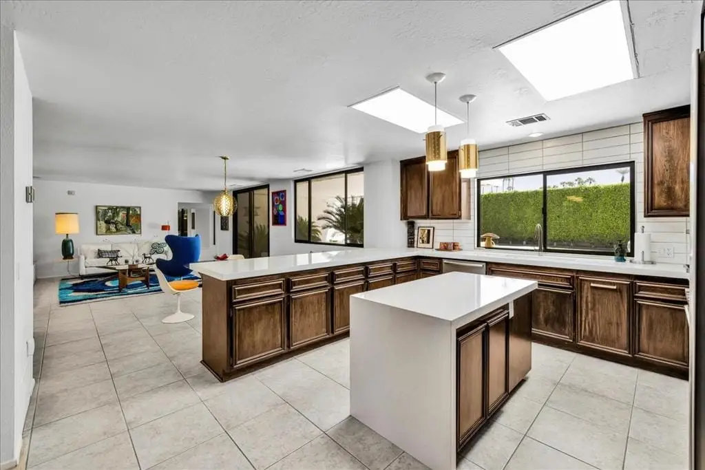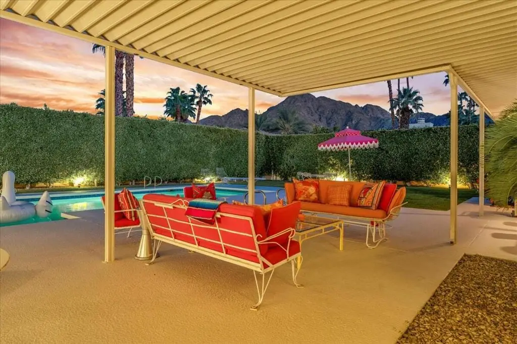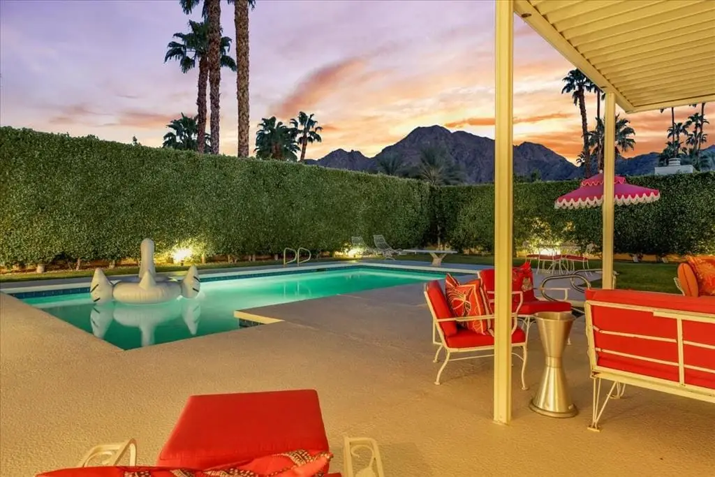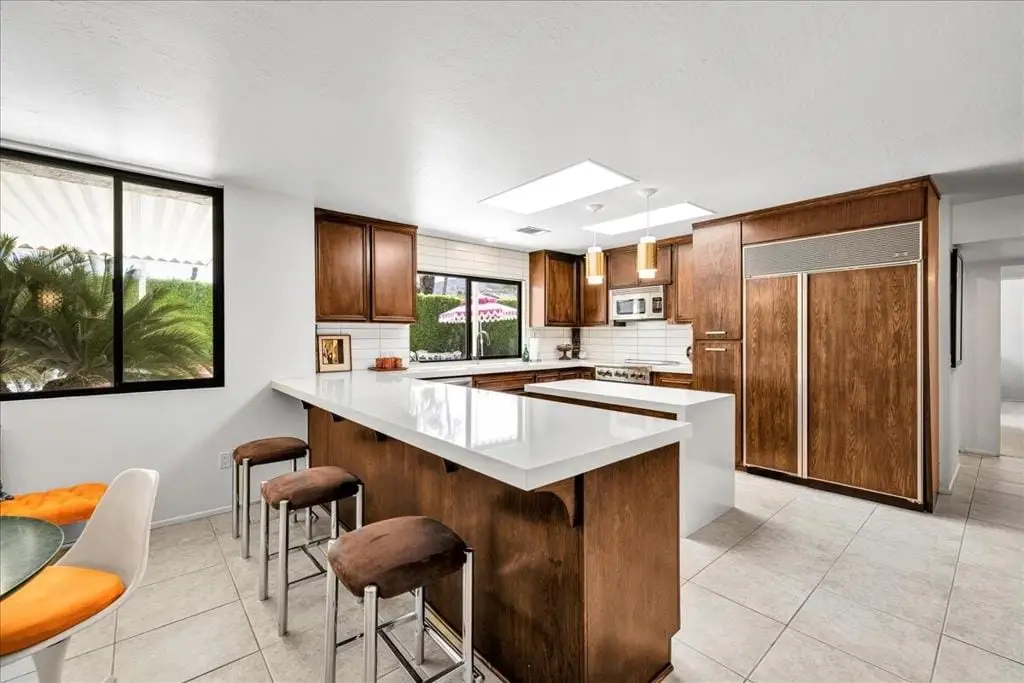 Discover refined desert living in this stunning 4-bedroom, 3-bath residence, perfectly positioned within the highly coveted enclave east of Eldorado in south Indian Wells, outside of any HOA. With dramatic mountain views and an enviable location, this home combines timeless elegance with the sophistication of today's modern luxury lifestyle, designed and built by Vicki McDermott, who is renowned for her gracious 1970s modernist homes. From the moment you enter, soaring ceilings set the tone. The sunken living room is chic and comfortable - great for entertaining or simply lounging after a game of tennis. The kitchen is updated with high-end appliances and modern drawer hardware, while retaining the charm of the original cabinetry facing. The primary suite is a serene retreat, offering direct access to the poolside patio, a spacious walk-in closet, and a spa-inspired bath with soaking tub and walk-in shower. You will wake up to spectacular mountain views every day. Three additional bedrooms provide ample space for guests, a private office, or a stylish media lounge - each features large closets which can fit king-size beds and still accommodate lounge seating or desks.Step outside to your private resort oasis, where a sparkling pool, spa and outdoor shower are framed by lush landscaping and high hedges for the utmost in privacy. The covered patio gives you ample room for al fresco dining. The seamless indoor-outdoor flow embodies the essence of desert luxury living.Additional highlights include a 3-car garage - store your golf cart or a fun vintage car in the 3rd space. Storage abounds, with thoughtfully designed cabinetry throughout the home. Extensive list of updates and upgrades available upon request.As an Indian Wells resident, you'll enjoy exclusive privileges, including golf and spa discounts at world-renowned resorts, adding to the unmatched lifestyle this home affords.The city of Indian Wells also allows rentals of 29 nights or more year-around and allows for a 7-night minimum, one week preceding and ending three days after conclusion of the annual BNP Paribas tennis tournament. Rarely available, this McDermott-built residence represents an exceptional opportunity to own in one of Indian Wells' most distinguished communities. Make an appointment to see it today!