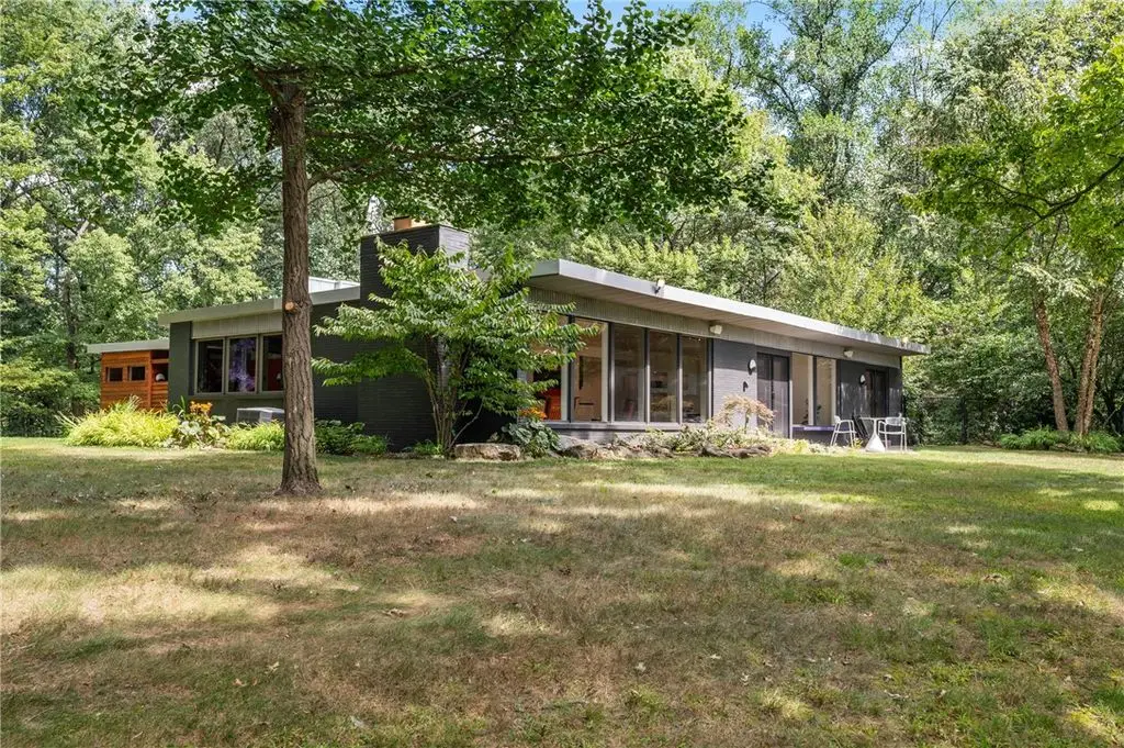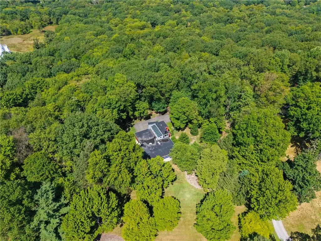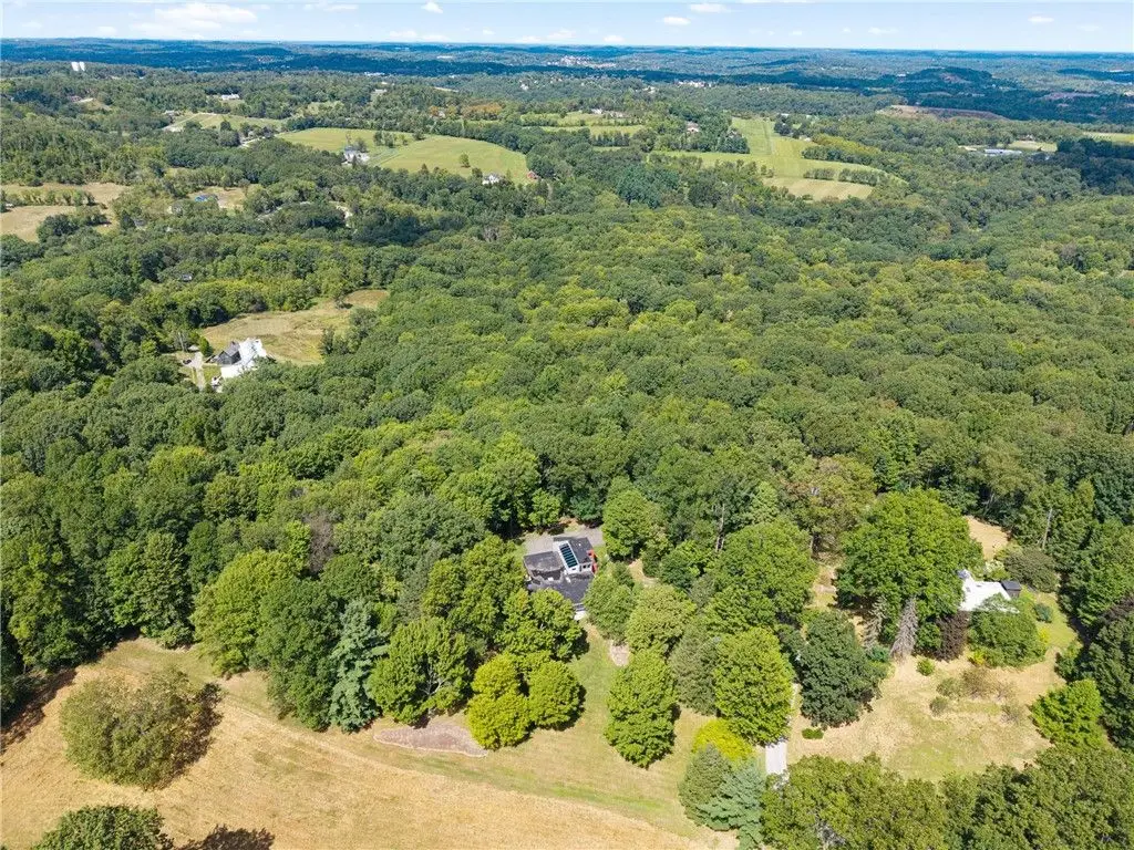 Secluded 17-acre retreat bordering Hartwood Acres Park with direct trail access and spectacular views! This unique property blends timeless charm with modern upgrades, including natural gas, city water, whole-house filtration, new septic and water lines, back-up generator, and dual HVAC systems. Custom cherry floors, built-in cabinetry, automatic blinds, and a whole-house audio system add warmth and functionality. Enjoy a professionally installed sauna, outdoor shower, fenced dog pen, and tranquil water features. The second-floor studio with full plumbing offers flexible living space - ideal for a guest suite or home office. With room to build a barn, this property is perfect for equestrians who dream of riding directly into Hartwood Acres. Whether you're seeking peace, creativity, or adventure, this move-in-ready home offers a lifestyle of comfort, privacy, and possibility. Access via a quiet private road. Split across 10 and 7 acre parcels.