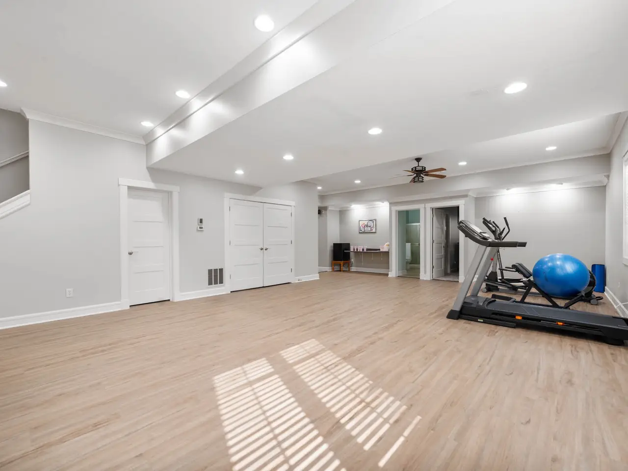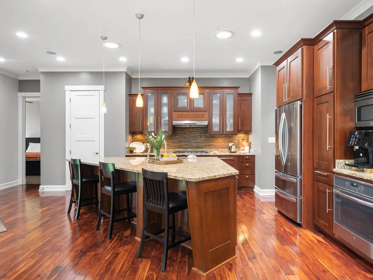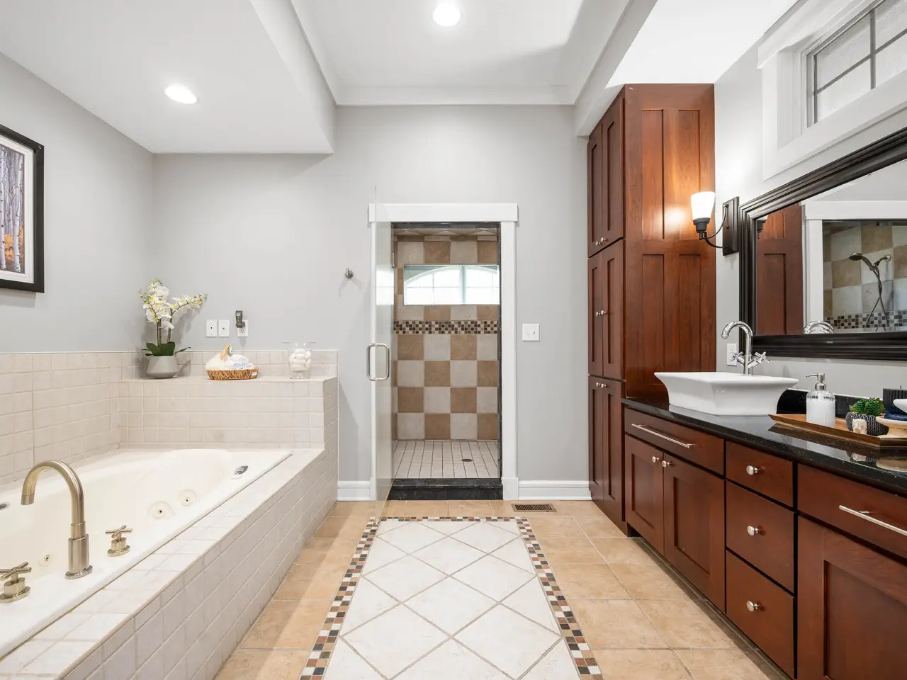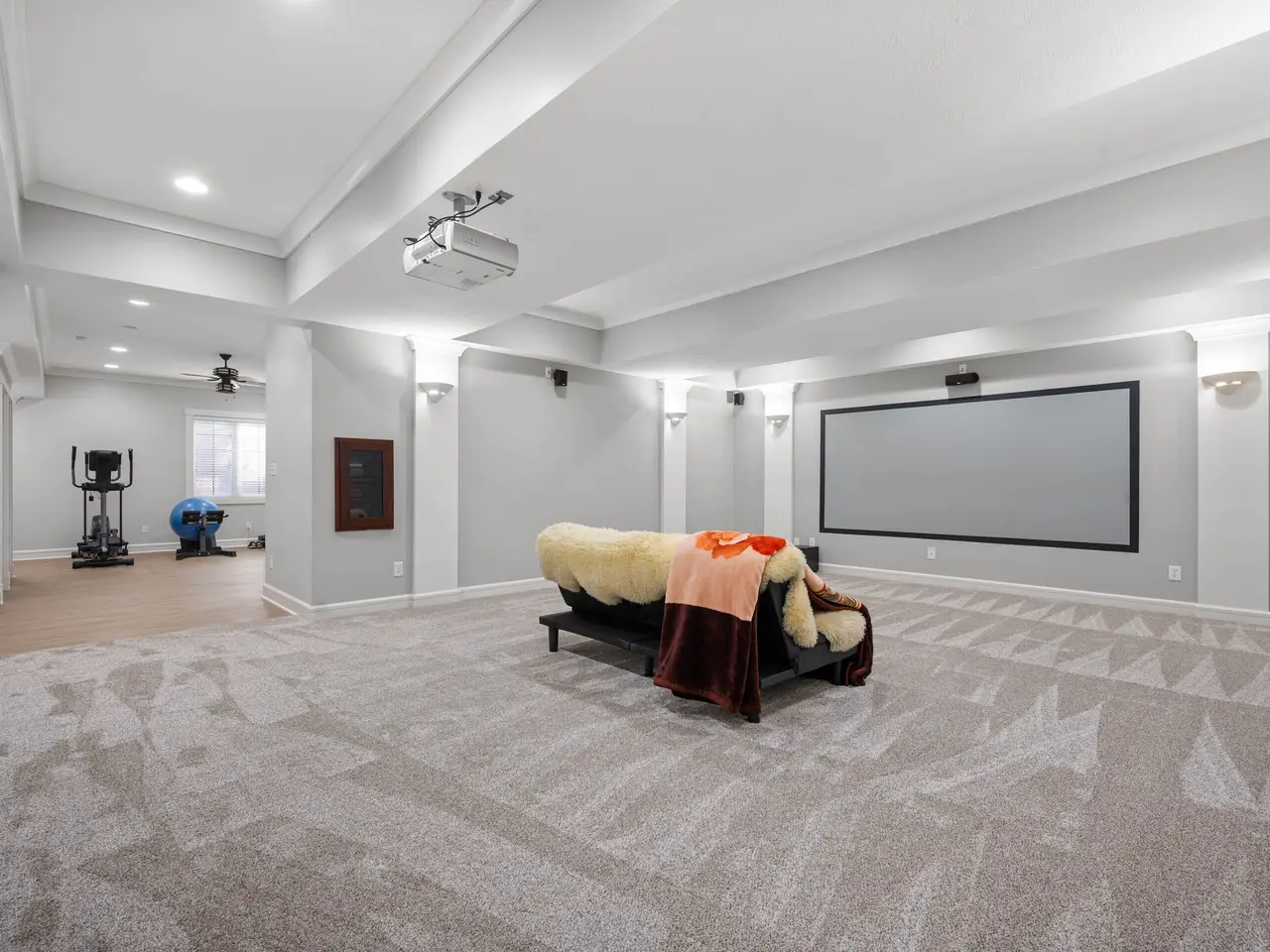 Welcome to a beautifully crafted custom-built, 1 owner ranch home that exudes warmth & elegance. This spacious 5-bedroom, 4.5-bath property is designed with an open floor plan that seamlessly connects the living spaces, making it perfect for entertaining or relaxing w/ family. High ceilings throughout, including in the basement, add to the feeling of grandeur, while recessed & tray ceilings bring a touch of sophistication. The heart of the home is the gourmet kitchen, showcasing exquisite Amish-made custom cabinetry, premium granite countertops, expansive island w/ integrated storage, & a meticulously designed layout that exudes elegance & flow. New gas cooktop, new refrigerator, new oven, & a 600 CFM exhaust fan ensure that the kitchen is both beautiful & functional. Brazilian cherry wood plank flooring graces the living room, dining area, office, & kitchen, while natural slate adds elegance to the foyer & hallways. All of the bedrooms, including basement bedroom, come w/ custom closets, offering plenty of storage space. Master suite includes a luxurious bathroom w/ a steamer for a spa-like experience. 3-season enclosed patio, accessible from the living room, kitchen, & master bedroom, provides a perfect spot to enjoy the outdoors while overlooking the huge backyard, which is ideal for creating a recreational area or giving large pets room to roam. The basement offers even more living space, complete w/ a theater room & plenty of natural light streaming through oversized window wells. Additional features include aluminum-framed entry doors & windows for low maintenance, a triple-lock safety mechanism for extra security, crown molding throughout the home, & a big garage w/ multiple shelves for storage.
