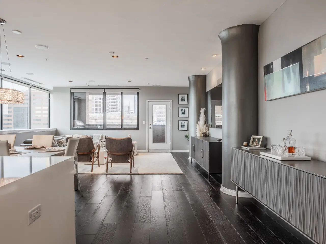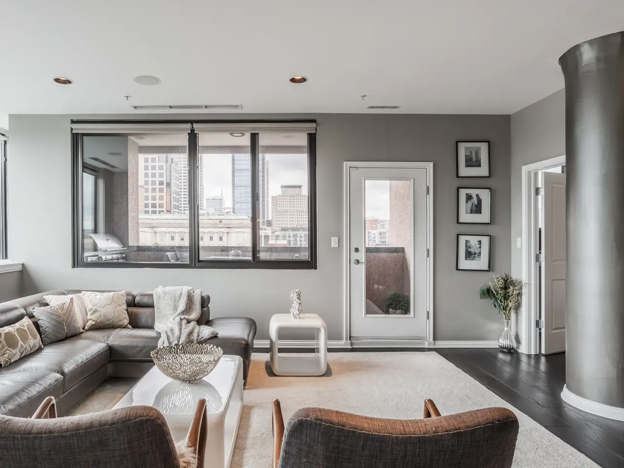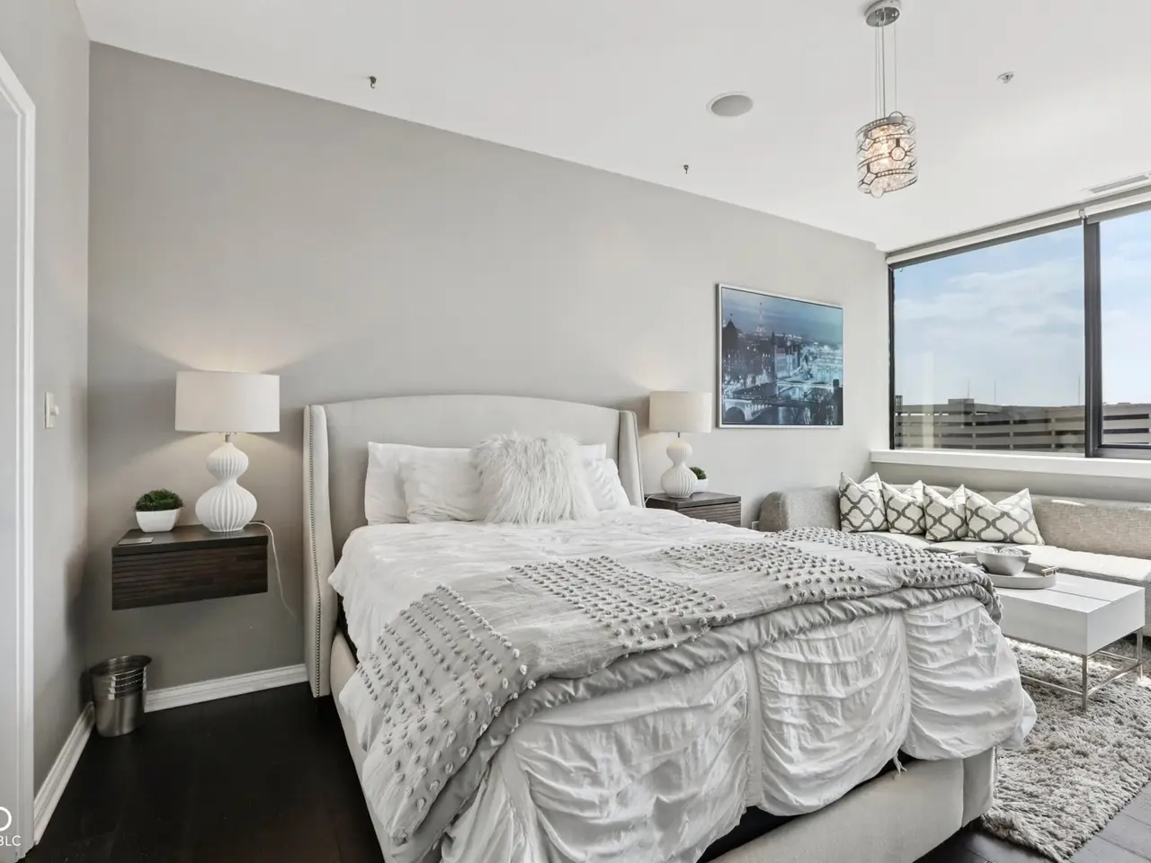This fully updated fifth-floor condo offers luxurious single-level living in the heart of downtown. Featuring 2 bedrooms, an office, and 2 full baths, the split floor plan occupies the southwest corner of the building, offering panoramic views from the new IU Health Downtown Hospital to Eli Lilly & Company. Engineered hardwood floors guide you from the chef's kitchen, equipped with Sub-Zero, Wolf & Cove appliances, into an open dining and living area, perfect for relaxing or entertaining. The spacious primary suite includes a large bedroom and a spa-like bathroom with heated tile floors and Kohler Anthem digital shower controls. Located adjacent to historic Lockerbie Square, Lockerbie Terrace offers maintenance-free living with a rooftop deck and on-site gym. Two deeded parking spaces (1 indoor, 1 outdoor) are included, and you're just steps from Mass Ave, Whole Foods, Needler's, Hot Room Yoga, Commissary, and more. Welcome home to Lockerbie Terrace 52!